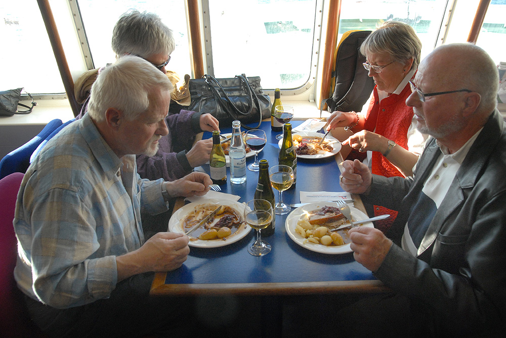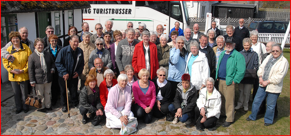 | Torsdag den 6. maj blev en uforglemmelig dag for deltagerne på turen til Læsø. 54 morgenfriske mårslettere mødtes ved Sognehuset kl. 04:30, og så gik turen med stor moderne bus fra Malling Turistbusser til Frederikshavn og videre med færgen mod Læsø, hvor der ombord ventede en tiltrængt morgenmadsbuffet. Efter 1½ times sejlads uden den mindste vuggen, var vi i Vesterø Havn, hvor den lokale guide Erik Kristensen steg på og kørte med os rundt til mange af de specielle seværdigheder, der er på Læsø, alt imens vi fik fortalt historier og anekdoter om øen og dens befolkning. Først til Vesterø Søndre Kirke med kalkmalerier, Saltsyderiet, hvor det hvide guld, læsøsaltet, udvindes og til Museumsgården med det karakteristiske tangtag. Efter en rigtig læsøfrokost på den idylliske restaurant Lærkely, hvor der, i det skønne forårsvejr, også blev tid til at strække benene, gik turen ud til Læsøs østligste punkt, Danzigmand, hvor der blev ledt efter rav på stranden neden for klitterne. Efter et stop - og shopping - på Østerby marina og fiskerihavn, gik turen til Uldstuen med mange (og kostbare) kollektioner, før turen atter gik tilbage til Vesterø Havn. Og så ventede 1½ times sejltid med en rigtig dansk middag: flæskesteg med tilbehør og islagkage til dessert. Vel ankommet til Frederikshavn gik turen sydpå; vi sang med på mårsletsangen og spillede motorvejsbingo , hvor numrene er erstattet af bilmærker, og hvor vi om morgenen kunne nyde solopgangen i øst omkring Hobro, så vi nu noget nær samme sted solen forsvinde i vest som en stor rød kugle i horisonten. Dagen havde været begunstiget af usædvnligt godt vejr, og alle var enige om, at det havde været en stor begivenhedsrig oplevelse. Der kommer senere flere billeder her på siden. Det var så Hyggeklubbens sidste arrangement i foråret. Nyt program for efteråret kommer så snart det foreligger her på siden og i Mårslet Bladet Tekst og foto: Jørgen Lauritsen ©2010