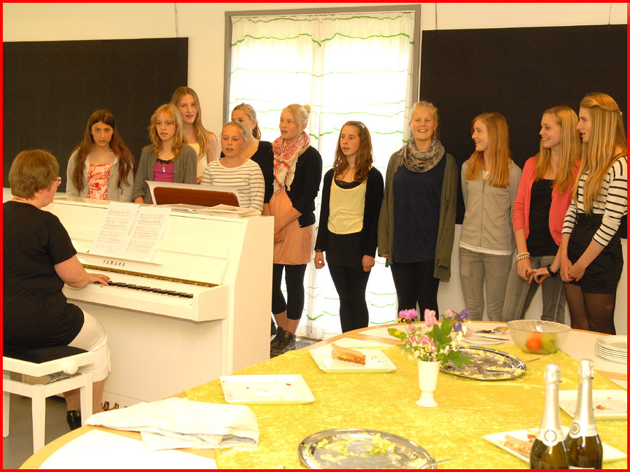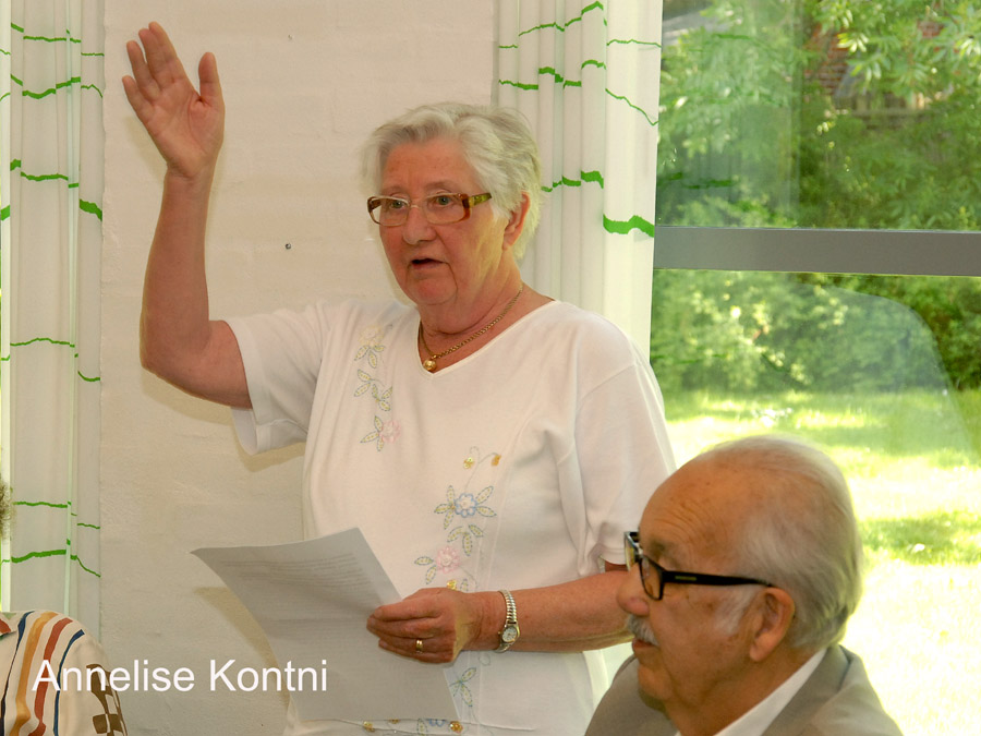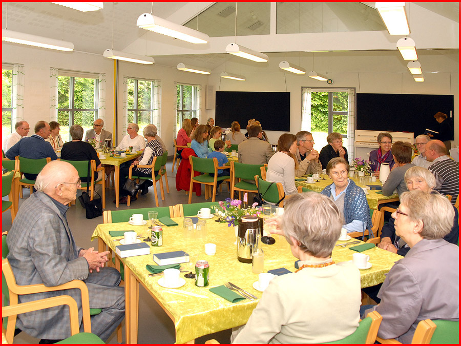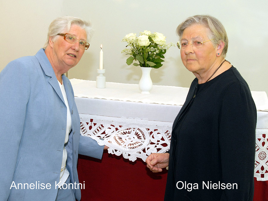 Fejringen af 100-året for tilblivelsen den gamle alterdug, fandt sted ved en let frokost efter gudstjenesten søndag den 13. juni 2010 i Sognehuset i Mårslet. Alterdugen har lidt en omtumlet tilværelse, og den tidligere præstefrue, Annelise Kontni, fortalte hvordan hun i 1977 havde fundet et afklippet fragment i et rum bag alteret, og herefter rekonstrueret dugen udfra de rester der var tilbage, så den idag ser ud, som da den var ny. Det er Olga Nielsen, der står for vedligeholdelsen, og vi hørte om, hvordan en helt speciel og meget skånsom behandling er absolut nødvendig, for at kunne bevare dette klonodie for eftertiden, og til sidst kunne vor lokale historiker, Hans Møller, fortælle om baronessen, Sofie Gyldenkrone, på Vilhelmsborg, der for 100 år siden havde frembragt dette unikke kunstværk i 1910. Efter frokosten underholdt Mårslet Kirkes Kor under ledelse af Pia Labohn. (Foto Jørgen Lauritsen)