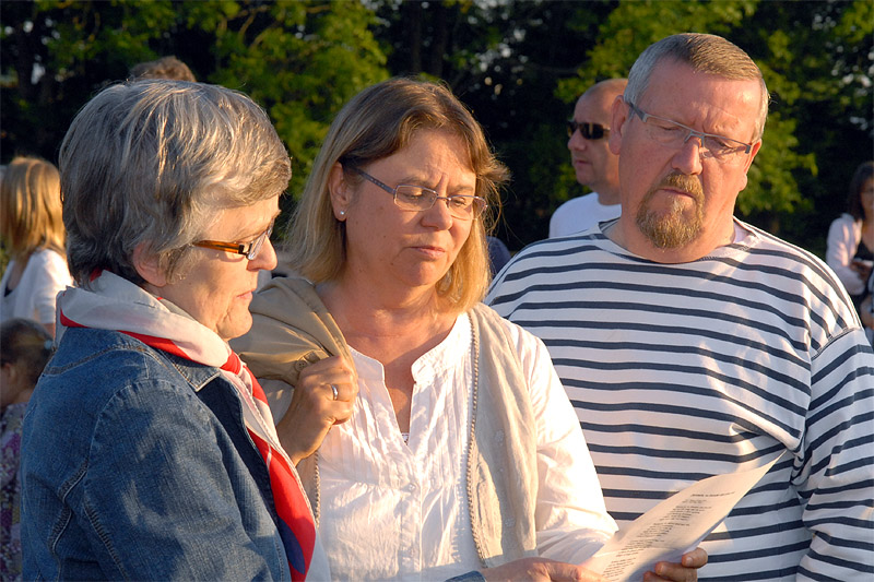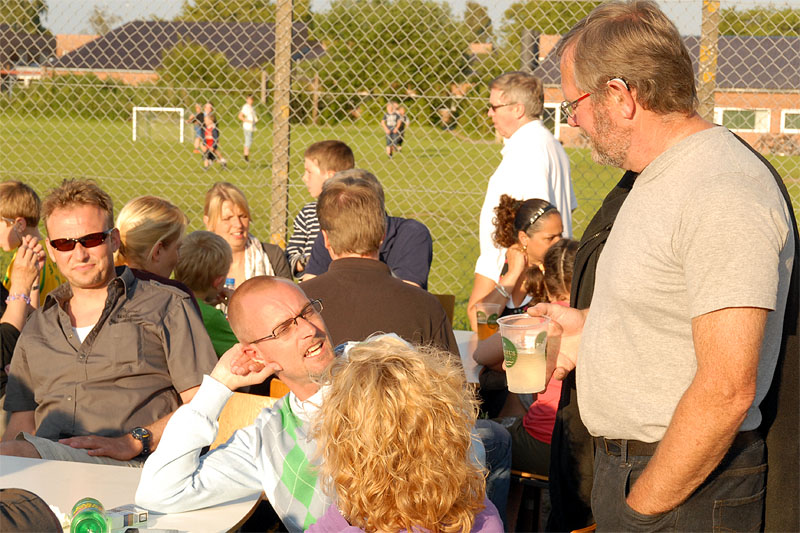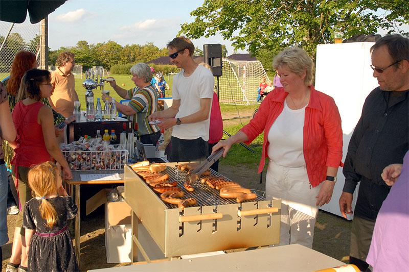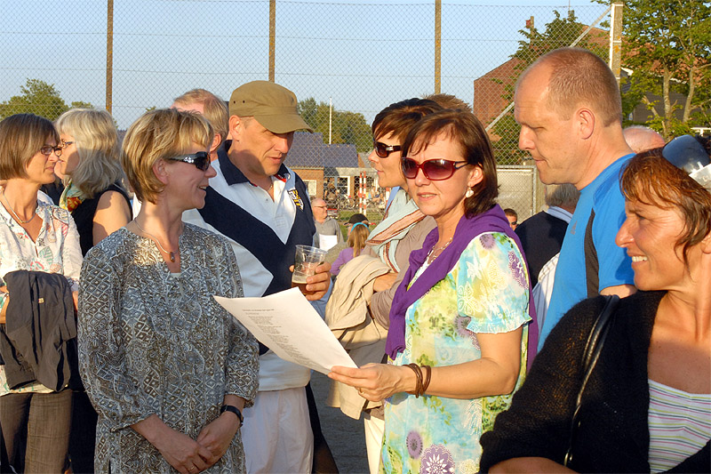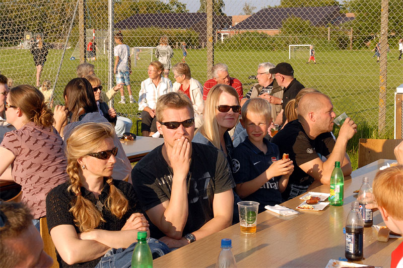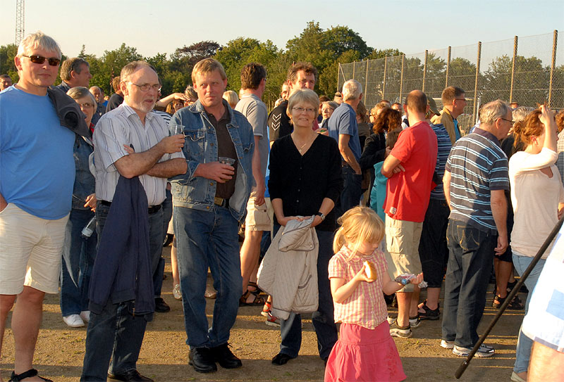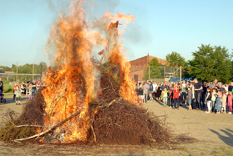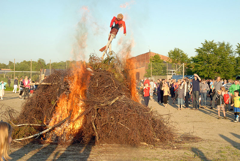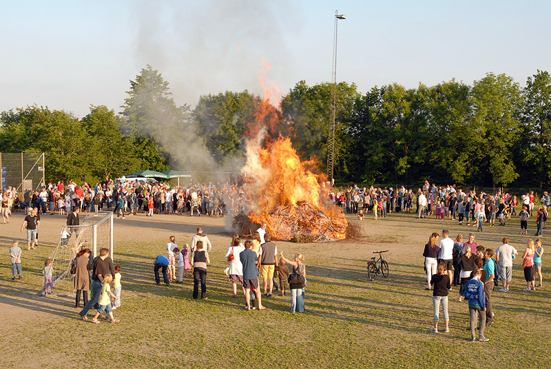 | Sct. Hans aften var begunstiget af usædvanligt godt vejr, der trods VM i fodbold havde lokket mange til boldbanerne ved hallen. Kurt Kirkedal Laursen bød velkommen og båltalen blev holdt af Fællesrådets nye formand, Jens Thomsen. Bålet blev tændt, heksen sendt afsted og midsommervisen sunget, styret af Pia Voxtorp. En sjælden og flot aften i Mårslet. foto: ©2009 Jørgen Lauritsen