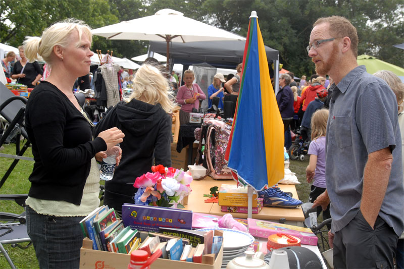 | Det store børnemarked lørdag eftermiddag blev afviklet stort set uden regn fra de truende sorte skyer, og ind i mellem fik vi da også solen at se. foto: ©2010 Jørgen Lauritsen