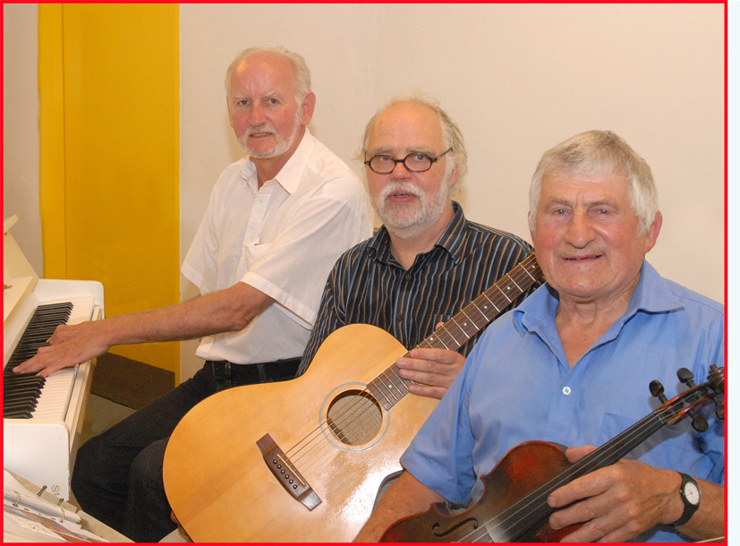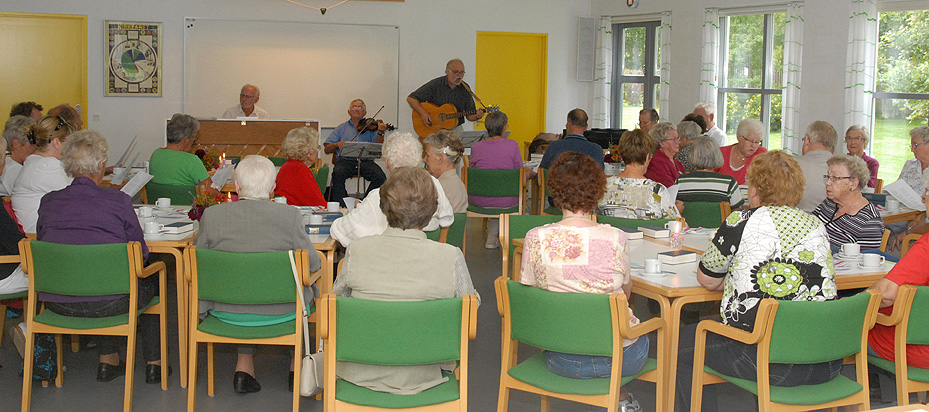 De tre glade spillemænd, Carl Erik Byskov på klaver, Torben Gang Rasmussen på guitar og Jens Jørgen Jensen på violin, diverterede med danske og svenske spillemandstoner, og der blev lejlighed til at synge med på kendte og iørefaldende melodier. Og som sædvanlig var der i pausen et overdådigt kaffebord med lækker hjemmebag. To muntre og fornøjelige timer. (Foto: Jørgen Lauritsen)