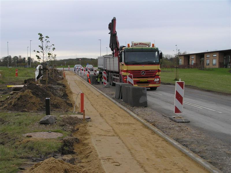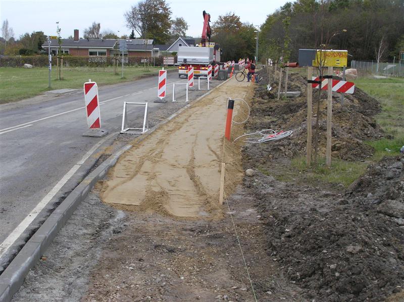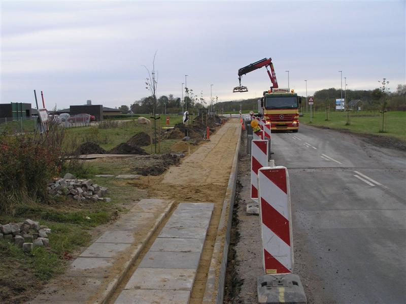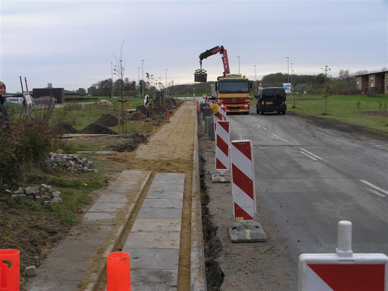 Nu er der gang i etableringen af det nye fortorv langs Tandervej til den nye rundkørsel