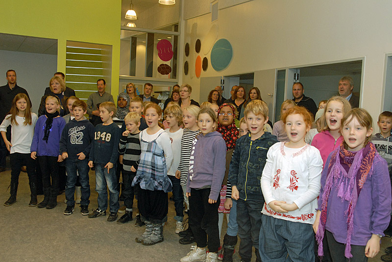 | Efter en lang periode med byggeaktivitet er den nye afdeling af Mårslet Skole nu endelig færdig. Indvielsen blev foretaget den 28. oktober af rådmand Jacob Bundsgaard Johansen, og der var taler af skoleleder Bodil Hvid, skolebestyrelsesformand Erling Sørensen og projektleder Bo Christian Lagerberg. 3. klasserne havde indstuderet en indvielsessang, og der var "kagehuse" til eleverne, der, efter den officielle del, straks tog de nye klasseværelser i brug. foto: ©2010 Jørgen Lauritsen