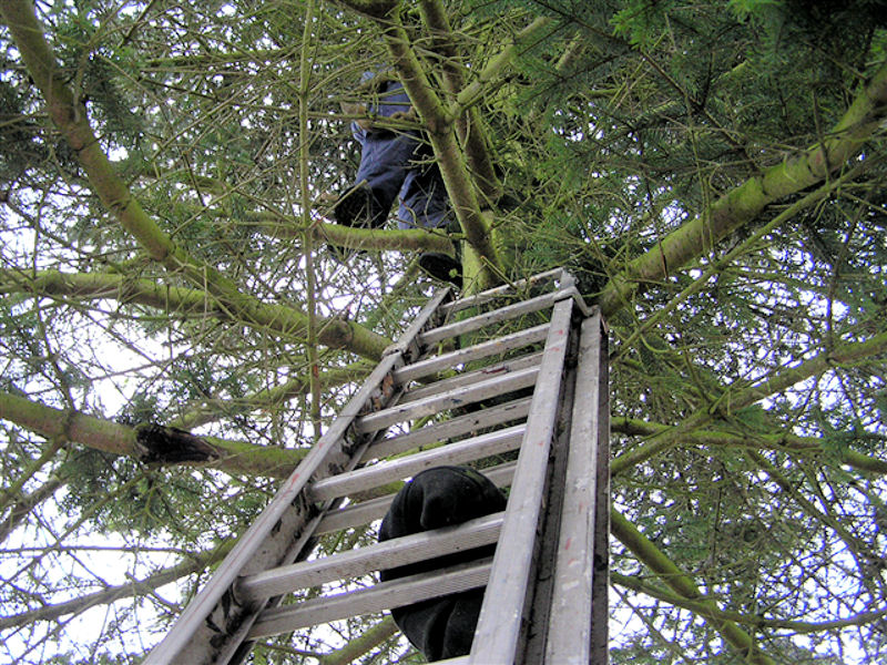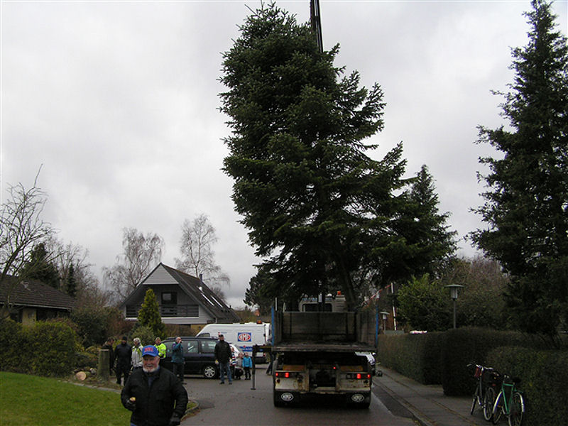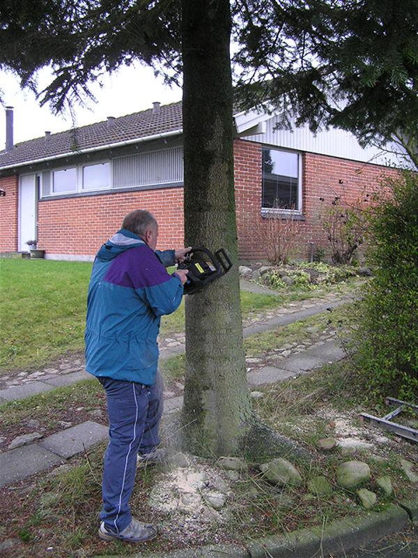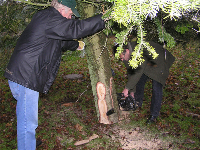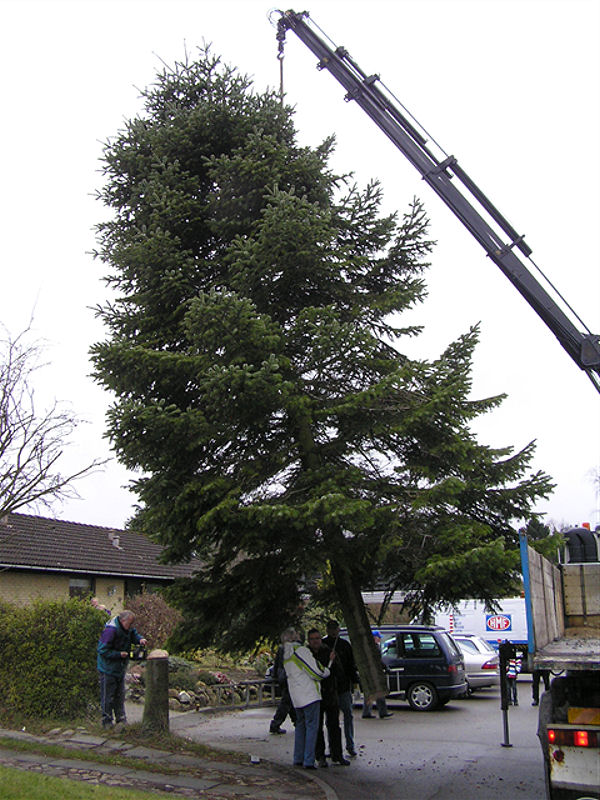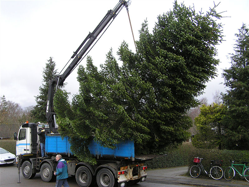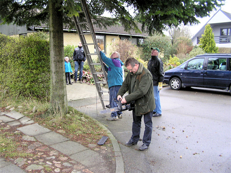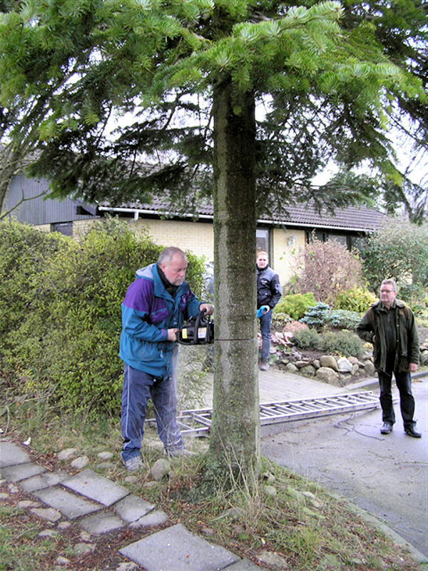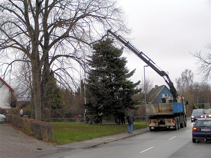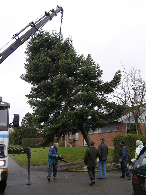 | Fældningen og opsætningen af årets juletræ blev klaret på 40 minutter. Træet er sponseret af Lisbeth og Peter Wejdemann, Gyldenkronesvej i Mårslet. foto: ©2010 Jesper Andersen