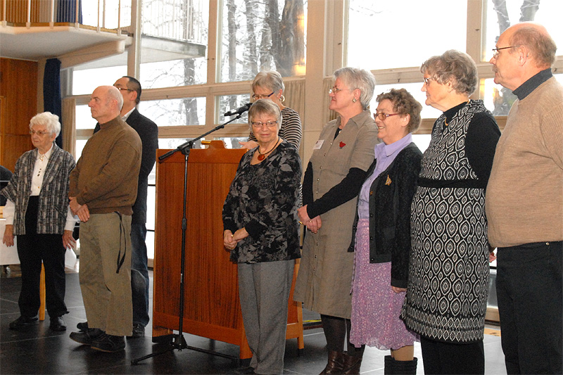 | Frivillighedsprisen uddeles hvert år til en særlig ildsjæl, der har ydet en bemærkelsesværdig indsats for ældre borgene i Århus Kommune. Hanne Torp, der er brugerrådsformand på Lokalcenter Kildevang, var sammen med 9 andre ildsjæle indstillet til at modtage prisen ved et arrangement på Århus Rådhus om eftermiddagen den 8. december, og adskillige fra Mårslet var mødt op i Rådhushallen for at overvære udfaldet.. Initiativprisen blev overrakt af formanden for Frivilligrådet Knud-Erik Sabroe og gik til Svend Nielsen fra Skæring. Begge priser består af en udvalgt gave til vinderen, samt 10.000 kr.til den forening eller projekt vinderen har tilknytning til. foto: ©2010 Jørgen Lauritsen