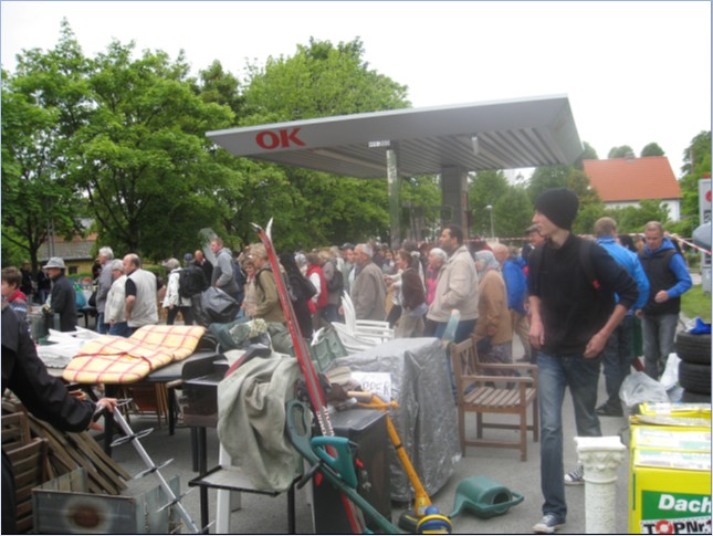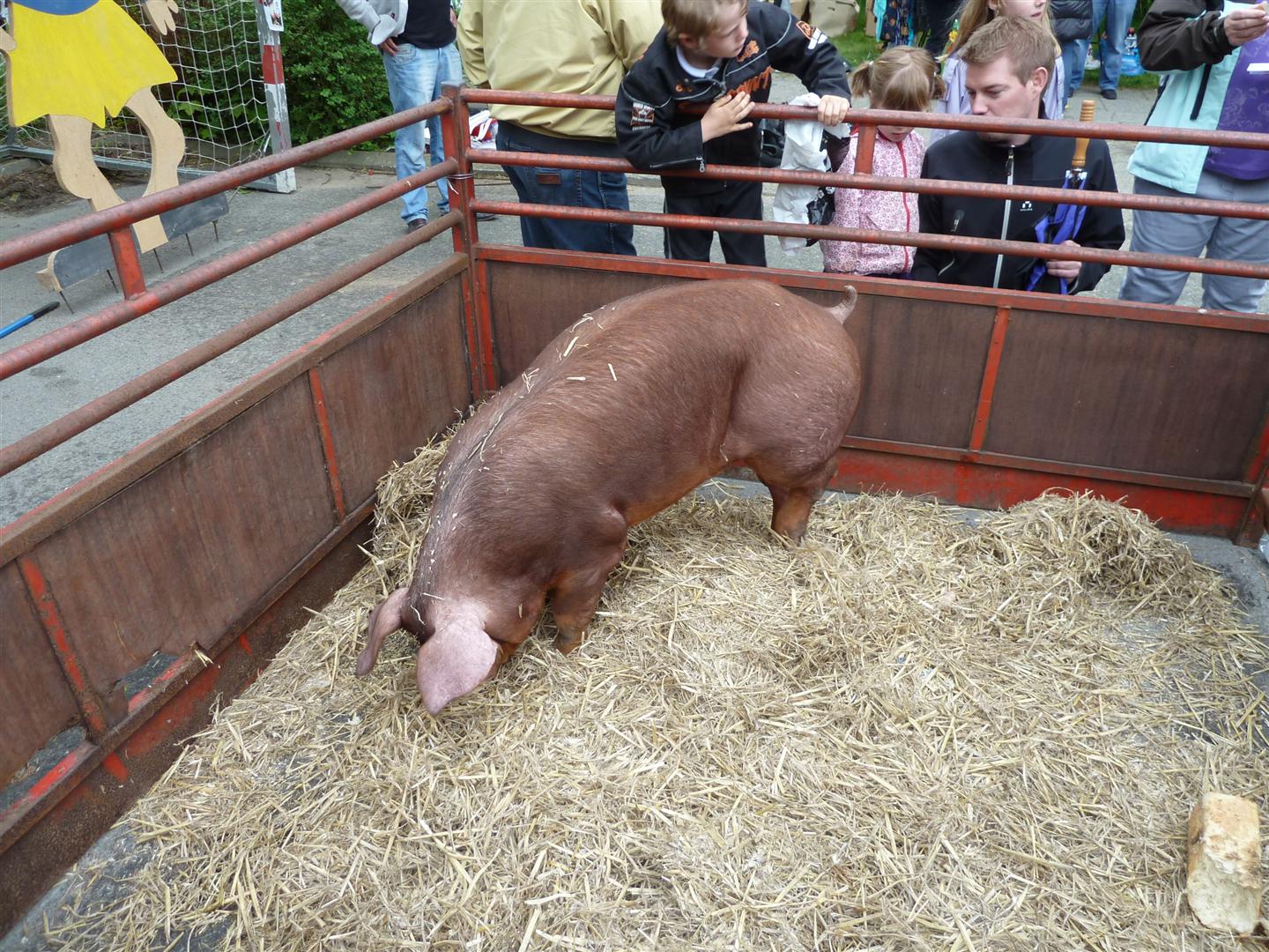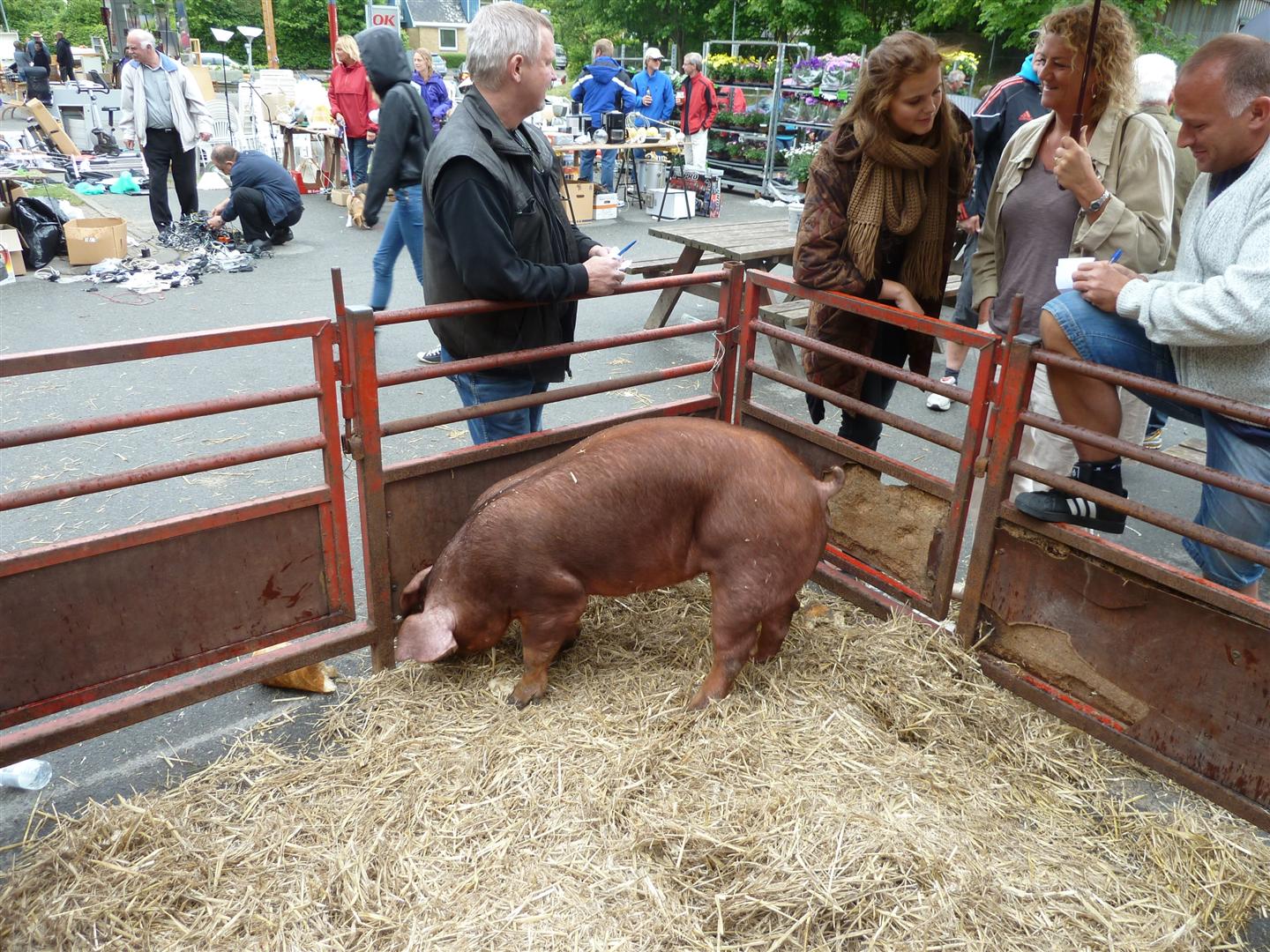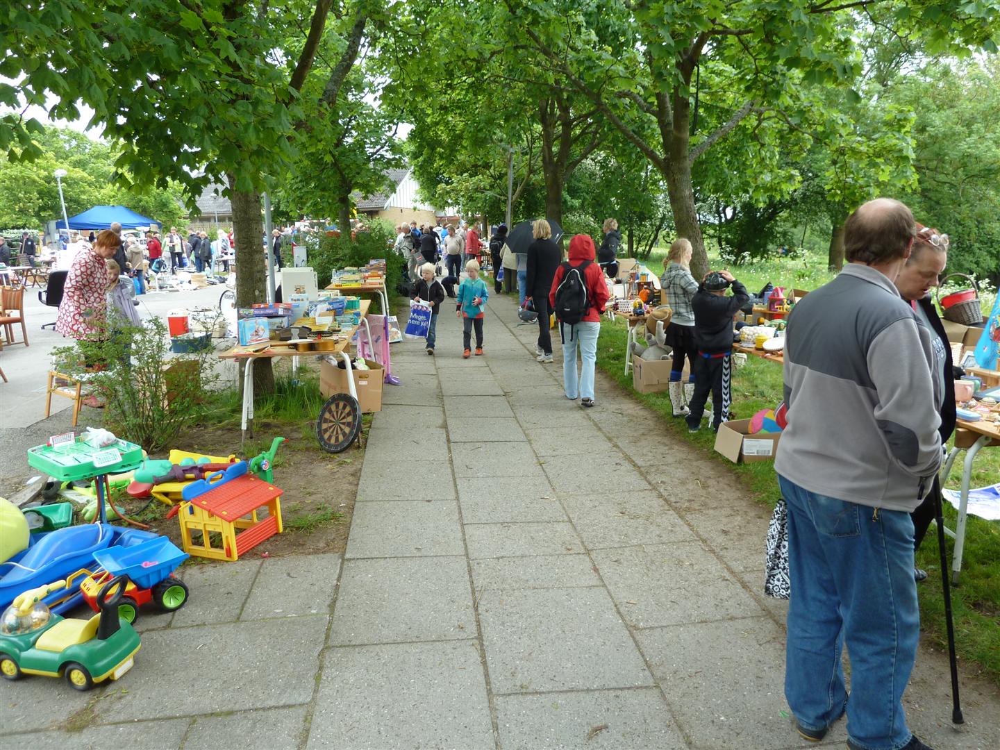 | MAN TAGER FØLGENDE INGREDIENSER: * Masser af godt humør. * Lopper fra borgene i 8320 området. * En lade til opbevaring af lopper. * Masser af glade købere en lørdag. * 30 indsamlere en tirsdag aften fra kl. 18 til 22. ' 30 morgenfriske folk lørdag morgen kl. 5 til at flytte lopper. * En gård til morgenmadsspisning. * 40 gode sælgere lørdag fra kl. 10 til 15. * 15 til at rydde op og læsse ikke solgte lopper på biler og i containere. * En knivspids levende gris. * Sommerblomster med rund hånd. * 8 biler og traktorer. * En del strøm. * 8 gule skilte og 10 plakater rundt i byen. * 60 rundstykker, 40 kebab og 6 pizza + diverse væske. * 50 kg. Grillpølser. * 300 vafler. * 5 fustager øl samt en stænk sodavand eller vand. + diverse andre ingredienser som bare skal være der. * Støtte og sponsering fra de lokale handlende. * 10 trætte optællere af penge. Det hele blandes sammen på byens P-plads og så skal der bages i 5 timer, gerne ved 15 20 grader og helst tørvejr. Pas på! det kan brænde på, især trafikken i midtbyen. Når kages skal laves skal man tage højde for at det kræver en KÆMPE indsats og masser af hårdt arbejde og glade folk - med det er arbejdet værd. RESULTAT: EN DEJLIG KAGE TIL TMG HÅNDBOLD PÅ ca 55.000 KR TAK til alle for stort og småt. Hilsen Jacob, Mads og Flemming Grisen vejede 98 kg. foto: ©2011 Niels Jesper Andersen