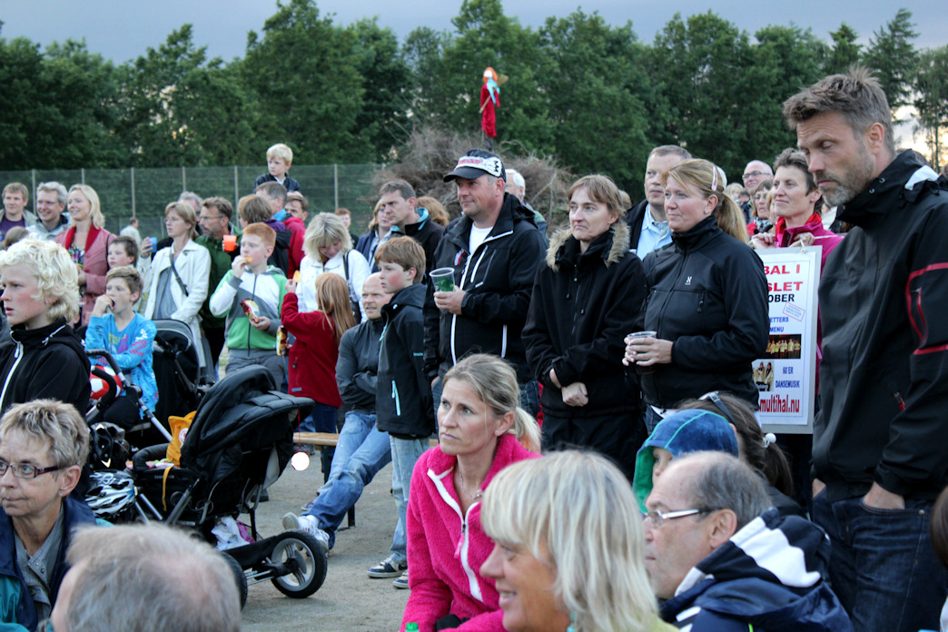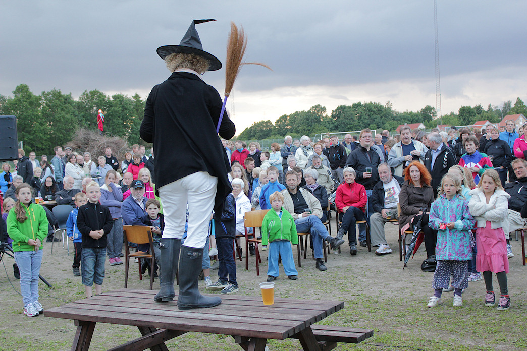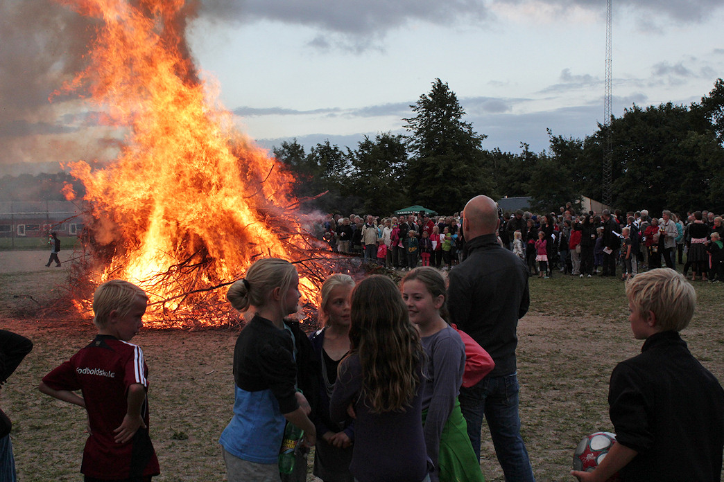 | Hundredvis af mårslettere satte hinanden stævne ved Sct. Hans bålet ved boldbanerne. Her nød de muntre revynumre ved 105 gr. Blandet, en heksetale ved Ann-Sofie Oxenvad, Kåre Sørensens gave på 980 kr. til Mårslet MultiHal fra Run & Walk motionsløbet 2010 og et flammende bål. foto: ©2011 Steen Bille