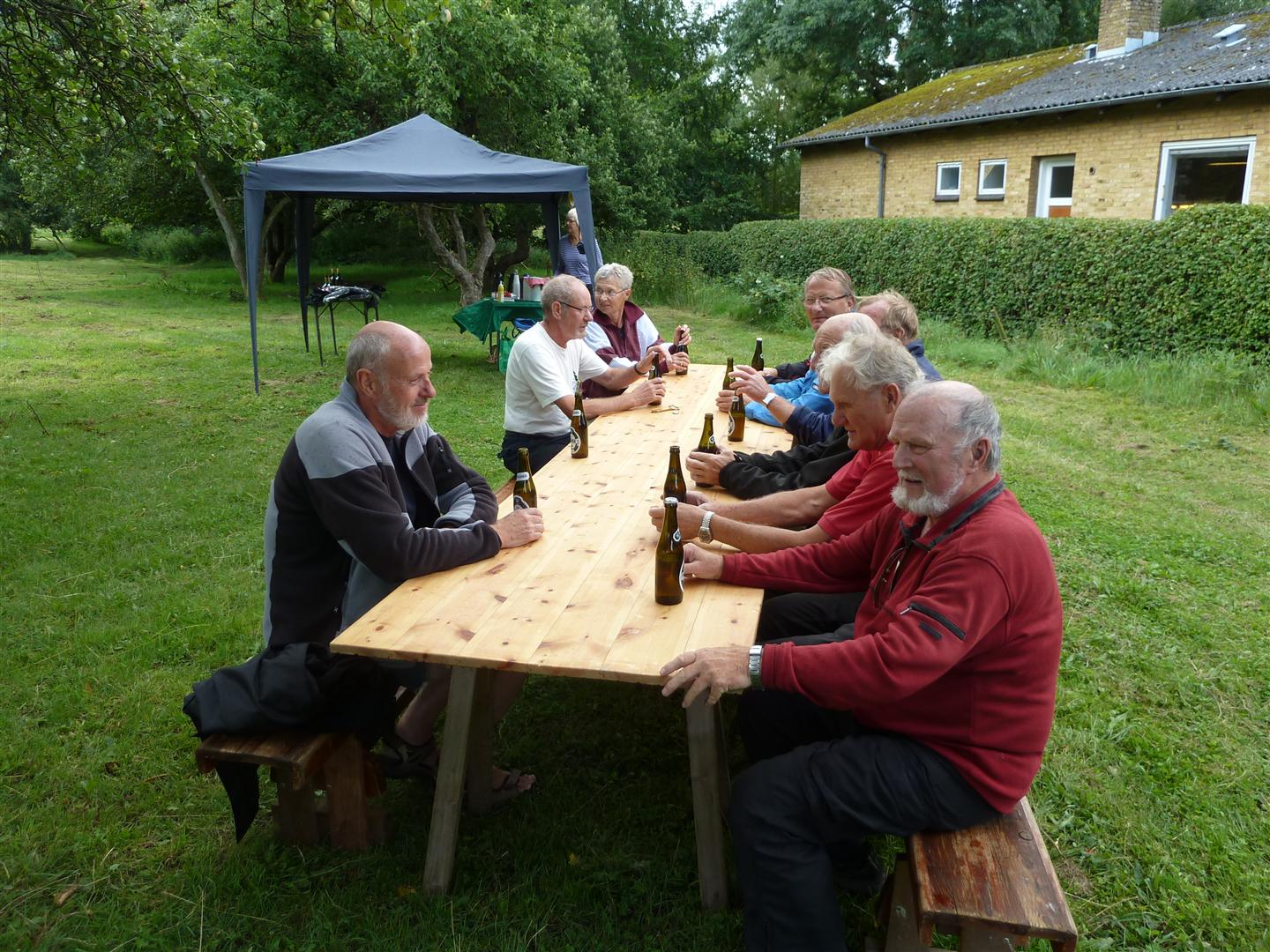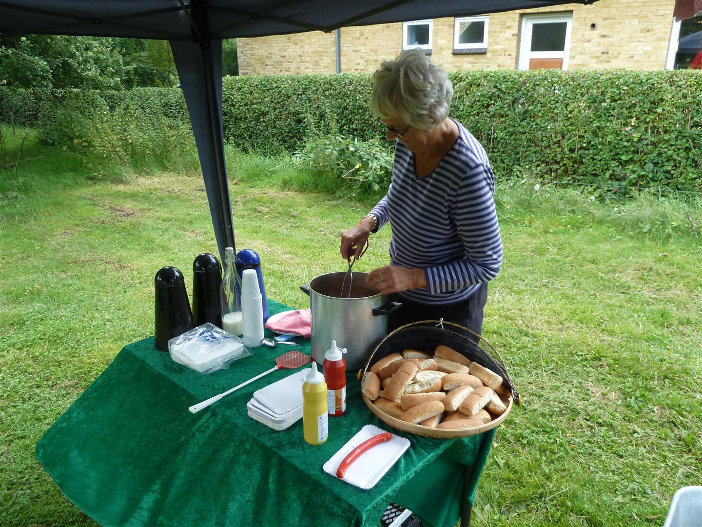 | Der var 22 som deltog i Tyvstarten i forbindelse med Mårslet Festuge. I Hørret blev vi overrasket af en kraftig tordenbyge og måtte søge ly under nogle træer. Tilbage i Bomgårdshaven skinnede solen og hvepsene kom frem -- de ville også have pølser. foto: ©2011 Niels Jesper Andersen