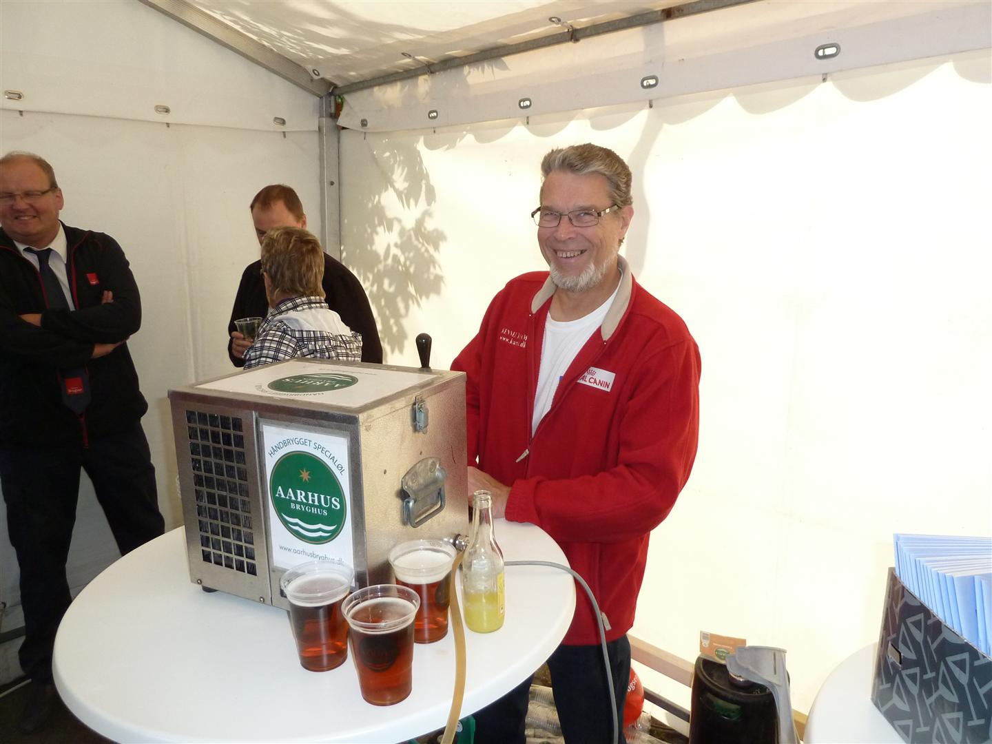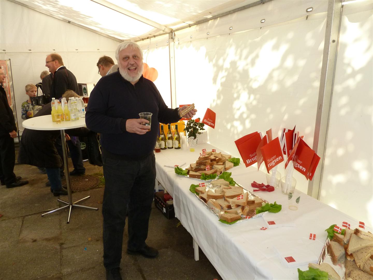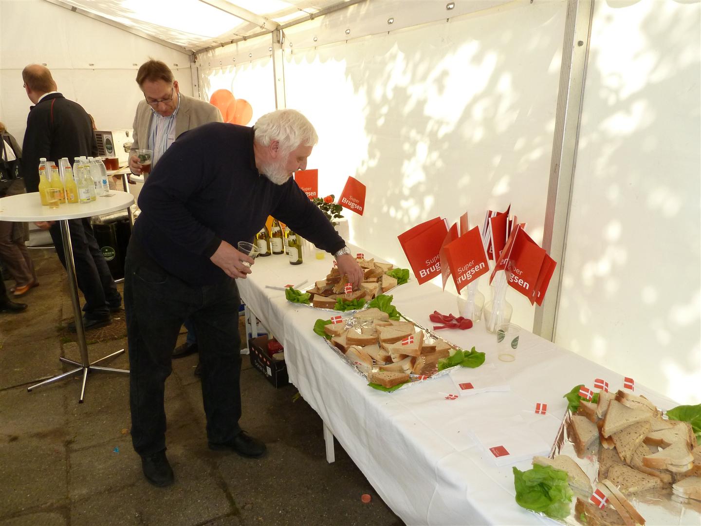 | Der blev skænket jubilæumsøl fra Aarhus Bryghus og der var sandwiches til de sultne. Inde i butikken kunne man smage på Mårslet Brændevinslaugs 125 års Jubilæumsdram. foto: ©2011 Niels Jesper Andersen