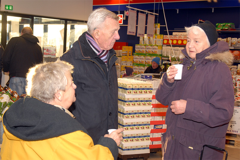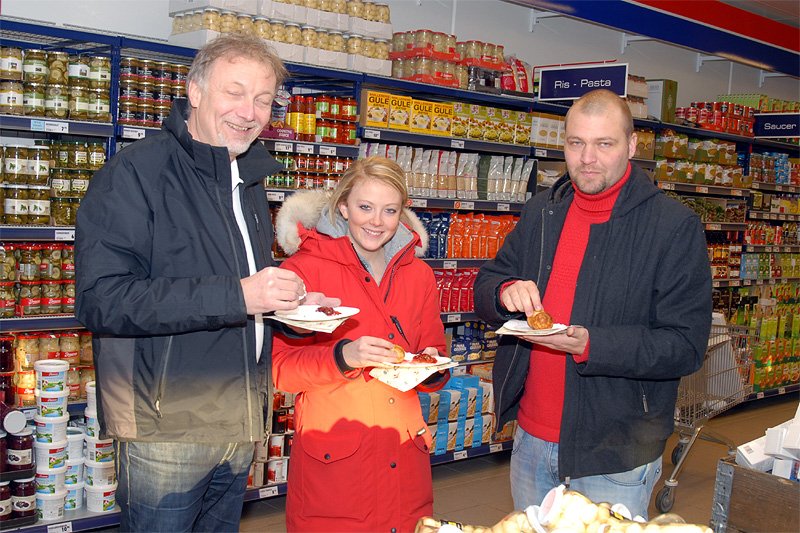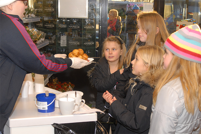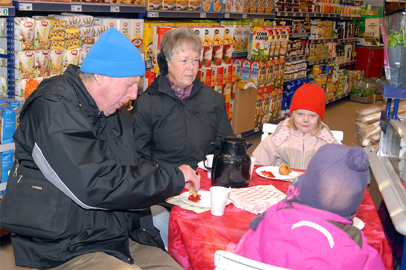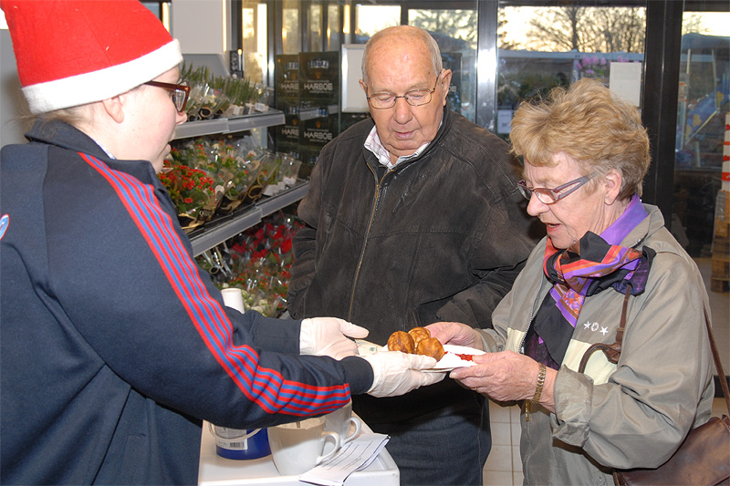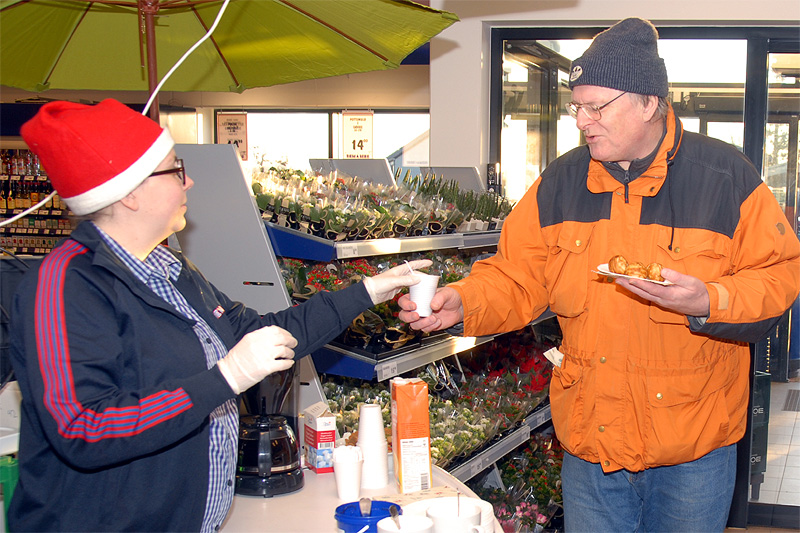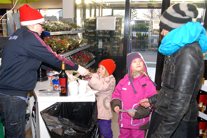 | Det var sidste lørdag før jul, og Rema 1000 bød igen i år på glögg og æbleskiver til alle, og for børnene havde Christian Møller tilrettelagt en spændende skattejagt rundt imellem varerne, der til sidst udløste en præmie ved kassen. foto: ©Jørgen Lauritsen