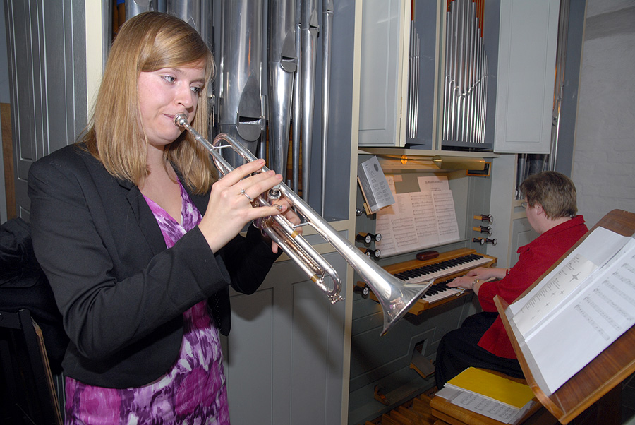 Mette Rasmussen på trompet og Pia Labohn ved orgelet