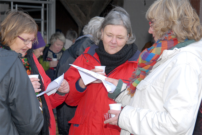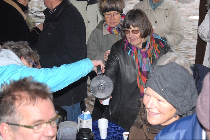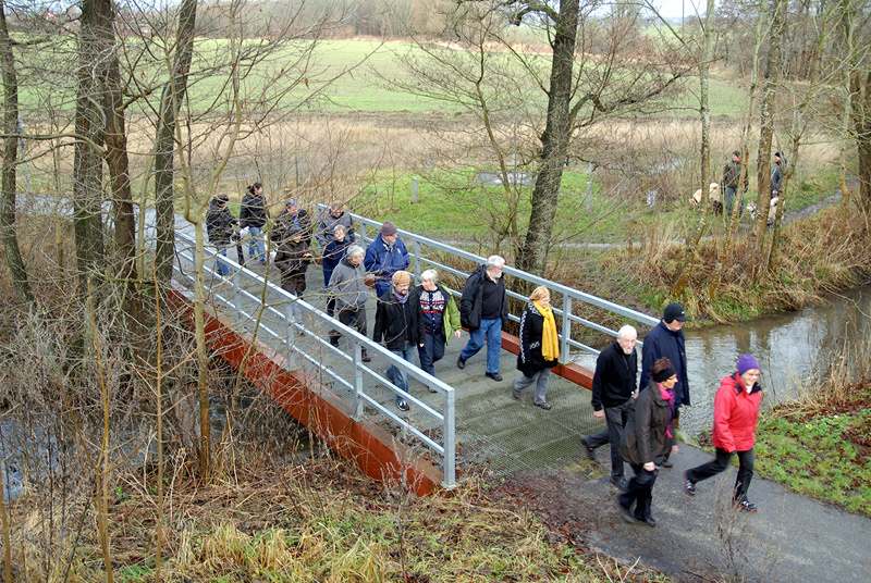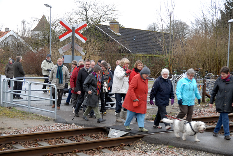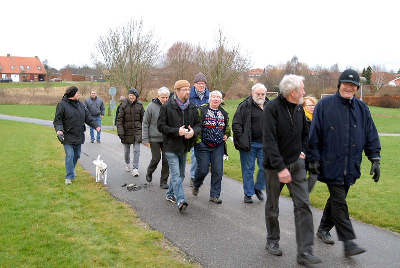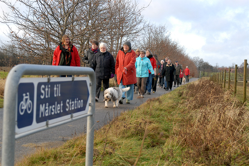 | Et af de faste indslag i Mårslet nytårsdag nytårsluntningen. Det er Juletræslauget, der er initiativtager til denne travetur, der går fra OK-tanken til Vilhelmsborg, hvor der venter en kop kaffe og en lille én til at varme sig på. Vejret var perfekt: 9° varme og solen tittede en gang imellem gennem skyerne. Efter en munter fællessang luntede de omkring 55 deltagere gennem skoven ud til Langballevej og ad den nye sti tilbage til Mårslet. foto: ©2012 Jørgen Lauritsen