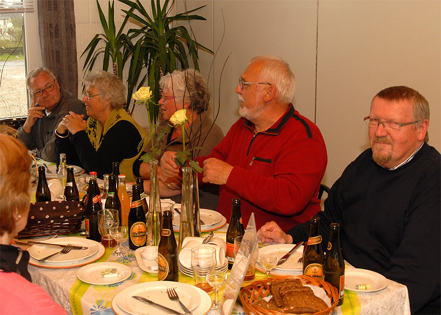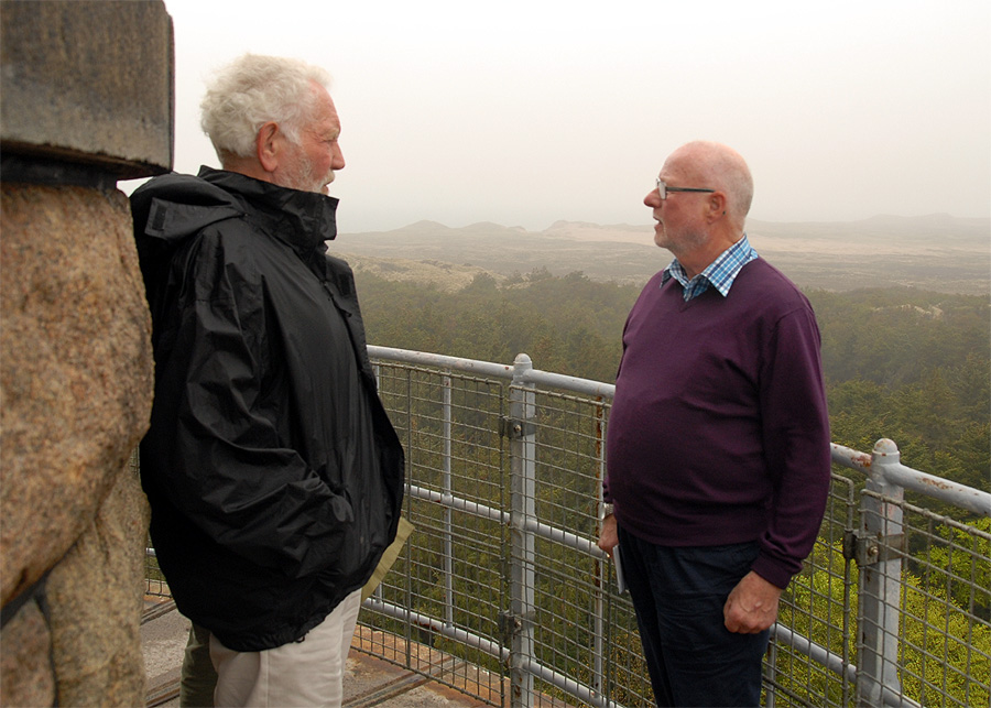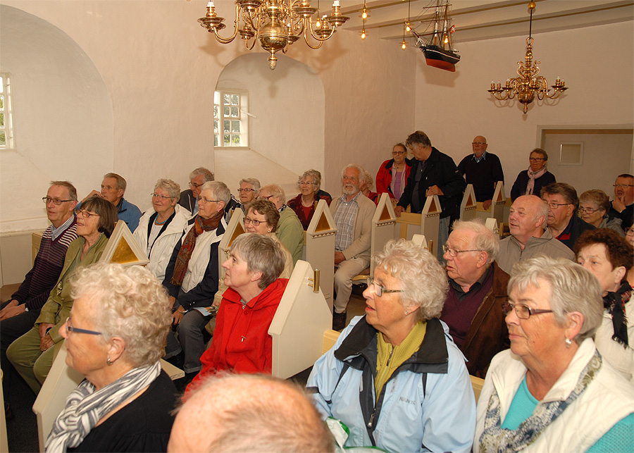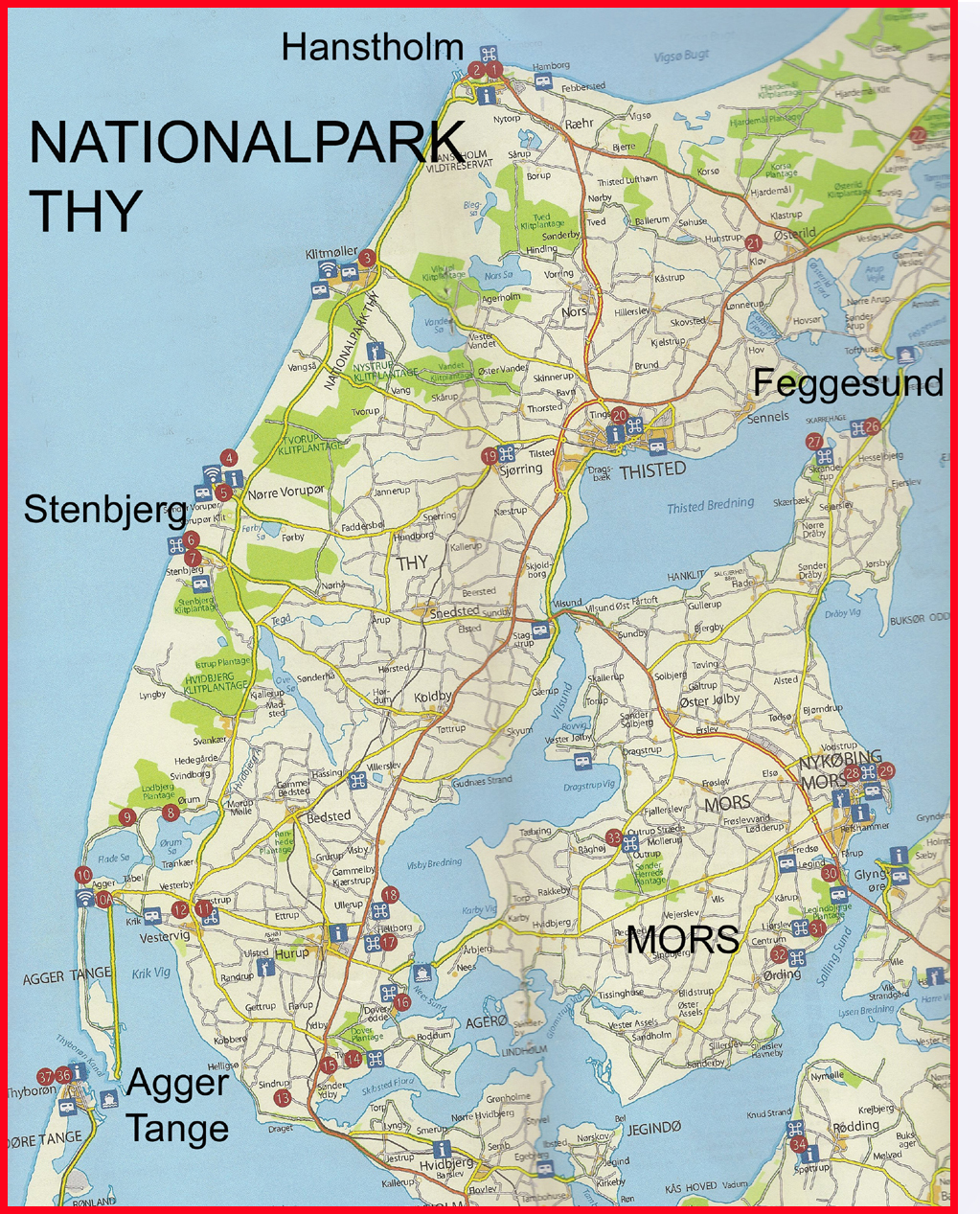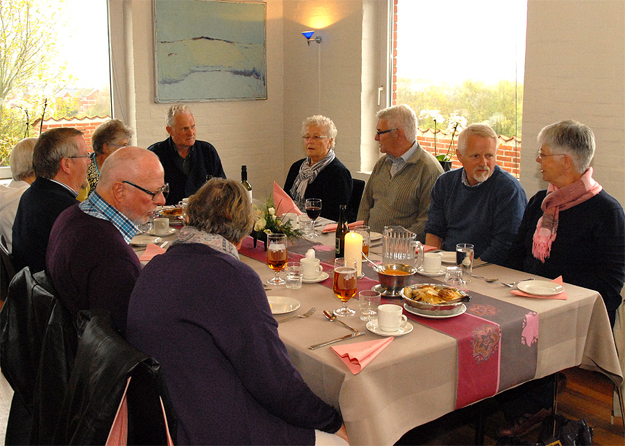 Mårslet Hyggeklubs traditionsrige og sidste arrangement før sommerferien var en heldagsudflugt, der gik op til det nordvestligste hjørne af Danmark til Nationalpark Thy. På grund af ombygningen ved Sognehuset startede turen allerede kl. 6:30 fra kirkens parkeringsplads på Hørretvej. Vi kørte med stor moderne turistbus fra Malling Turistbusser til Hobro og videre over Skive til Mors. Under turen blev der serveret kaffe og rundstykker. Fra det nordligste punkt på Mors, ved Feggeklit, sejlede vi de få minutter over Feggesund til Thy og fortsatte til Hanstholm, hvor vores guide steg på. Så gik turen gennem det særprægede landskab, Nationalpark Thy, der strækker sig fra Hanstholm i nord til Agger i syd, og på Stenbjerg Kro, var der dækket op til frokost. Efter en lille tur til landingspladsen og museet på stranden kørte vi videre mod syd til Agger Tange , sejlede over Thyborøn Kanal til Harboøre og mod Lemvig, hvor vi først besøgte Hornfabrikken i Bøvlingbjerg, før vi kørte til Nørre Vinkel Hotel i Lemvig, hvor der var dækket op til middag. Hotellet er oprindelig en gammel storgård fra 1841, der gennem årene er blevet restaureret og udbygget sidst i 1989, og hele tiden med skyldig hensyntagen til de oprindelige rammer og smukke omgivelser. Og efter en lang dag gik turen så tilbage til Mårslet. - Klik 2 gange på kortet og se det i stor størrelse! .Klik på billederne og se dem i stor størrelse. Foto: Jørgen Lauritsen