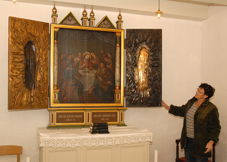 Graveren viser her den smukke altertavle.