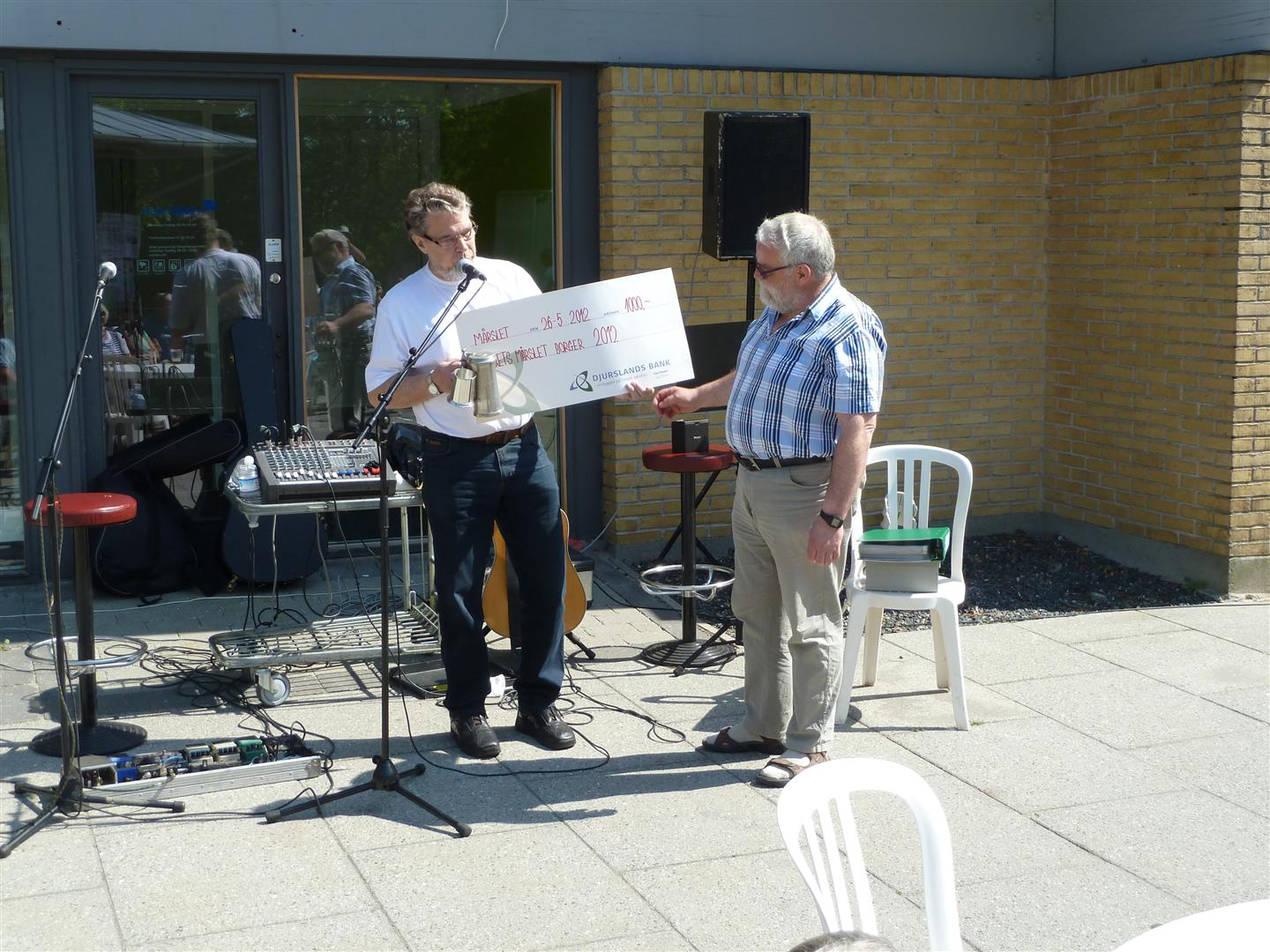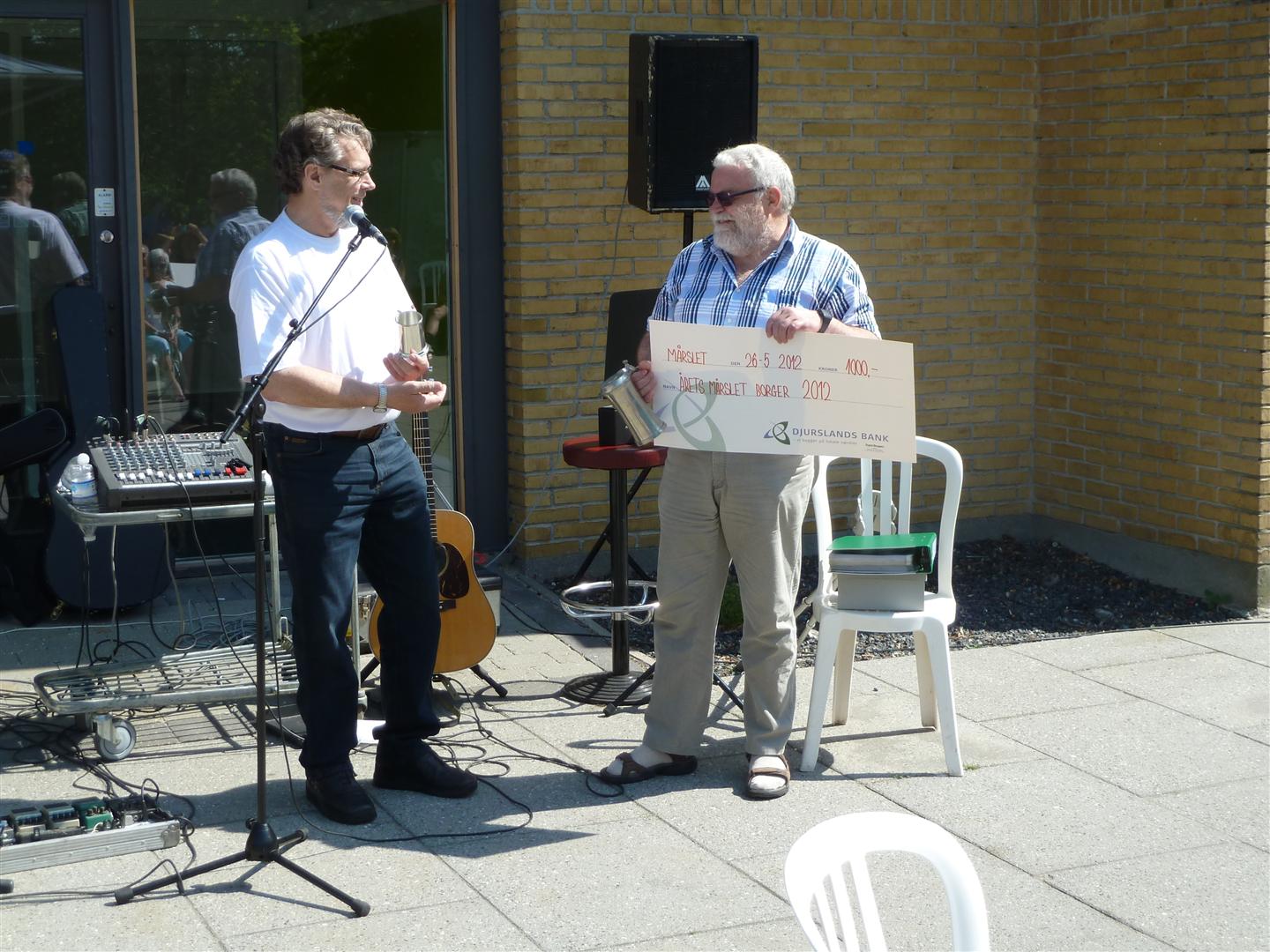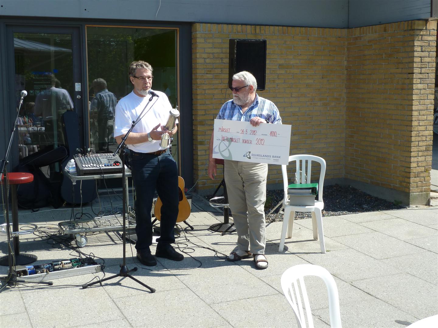 | SuperBrugsen Mårslet vil gerne sige TAK til alle deltagere ved det "traditionelle Pinselørdag arrangement" på Byens Torv - Fra morgenstunde var der friskbrygget Kaffe/The & Rundstykker plus en lille skarp til halsen efterfulgt af musik fra "Byens 2 friske musikanter Ole og Jens" og en dejlig frisk tappet sommer øl "Blondie" fra Aarhus Bryghus. Formiddagens højdepunkt som alle spændt ventede på, var uddeling af prisen Årets Mårslet Borger 2012. Til at stå for uddeling af årets pris, havde SuperBrugsen forespurgt sidste års vinder Steen Bille, om han havde lyst til at overrække prisen til årets vinder Kurt Kirkedal Laursen. Tak til alle for en dejlig solskinsrig Pinselørdag på Byen Torv. Med venlig hilsen SuperBrugsen Mårslet. Se omtalen her under. 26/05 2012 foto: ©2012 Niels Jesper Andersen og Poul Granslev Kurt Kirkedal Laursen blev kåret som Årets Mårsletter 2012 ved den traditionelle fejring på butikstorvet. Han har været en frivillig ildsjæl i mere end 20 år, først som fodboldformand, siden som hovedformand for byens idrætsforening TMG igennem de seneste seks år og senest som formand for styregruppen bag Projekt MultiHal. Han er desuden aktiv i gruppen bag Sct. Hansfesten på grusbanerne og frivillig ordstyrer på mange foreningers generalforsamlinger. (Steen Bille)