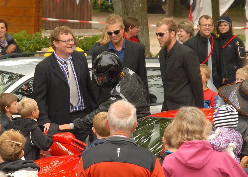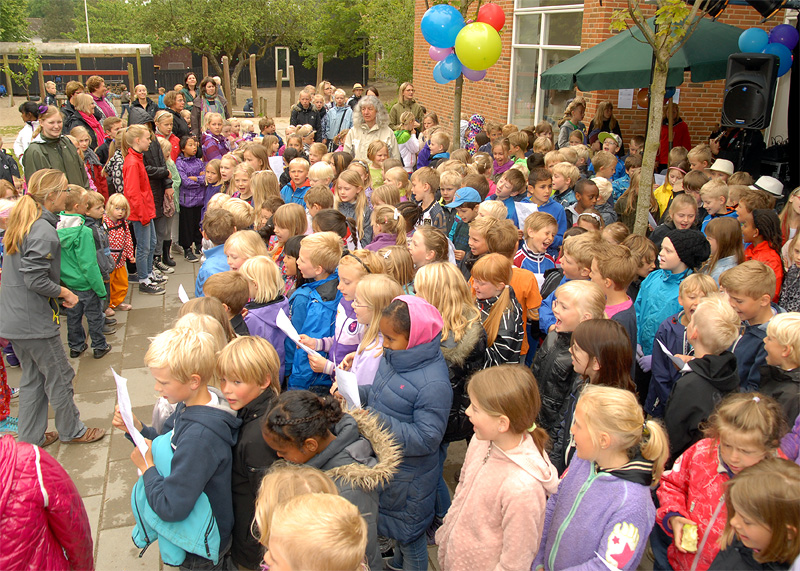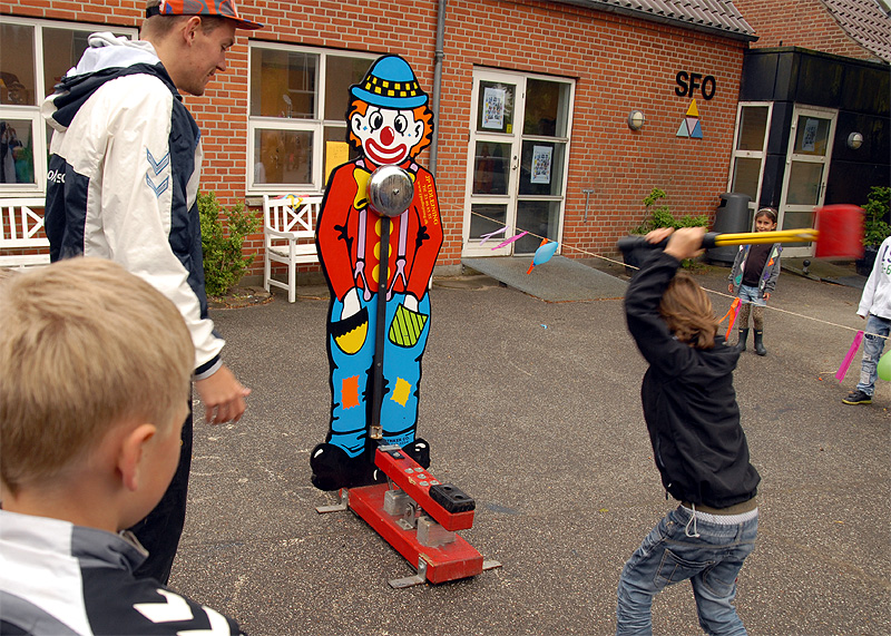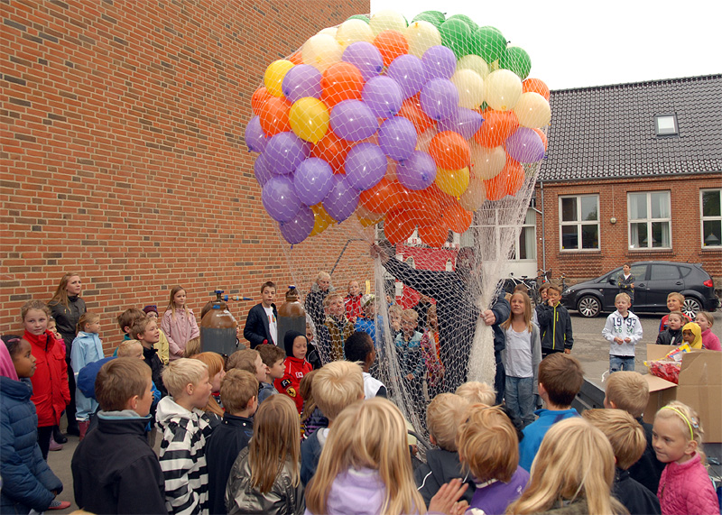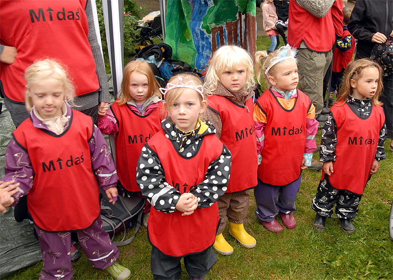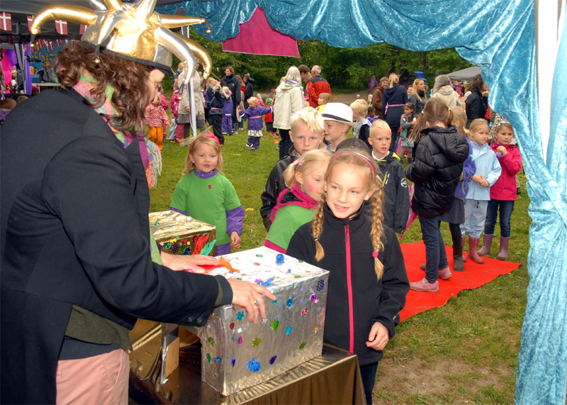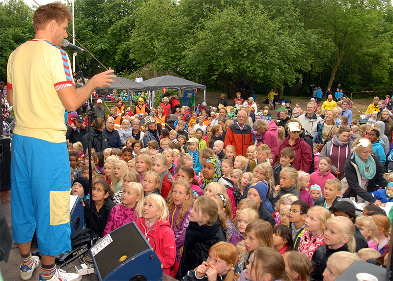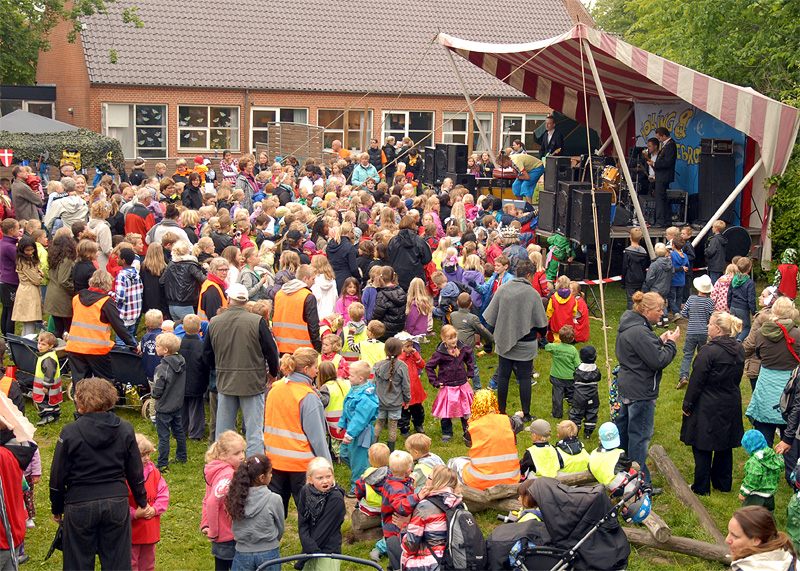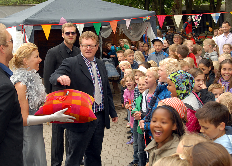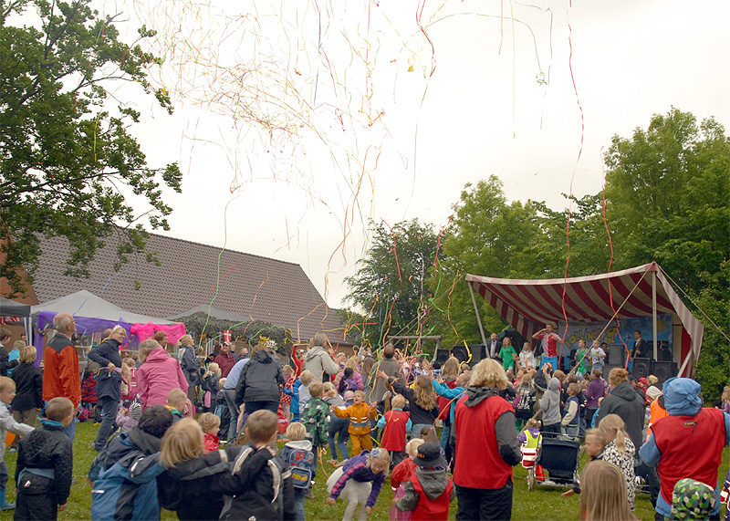 | Den årlige børnefestival i Mårslet fandt sted torsdag den 7. og fredag den 8. juni. Festivalen startede i år i skolegården og blev åbnet med manér af "Hans kongelige højhed" Jørgen Bertelsen, der ankom i en rød Ferrari ledsaget af to bodyguards. Efter ballonopsendelse blev snoren til festivalpladsen klippet over, og så var der ellers underholdning for de mange børn fra skole og børneinstitutioner af Lillebror, der havde fået støtte af Fætterorkestret. Konfettikanonerne markered bodernes åbning, og der var herefter en livlig aktivitet resten af eftermiddagen, der - i modsætning til fredagen - stort set blev forskånet for regn. foto: ©Jørgen Lauritsen