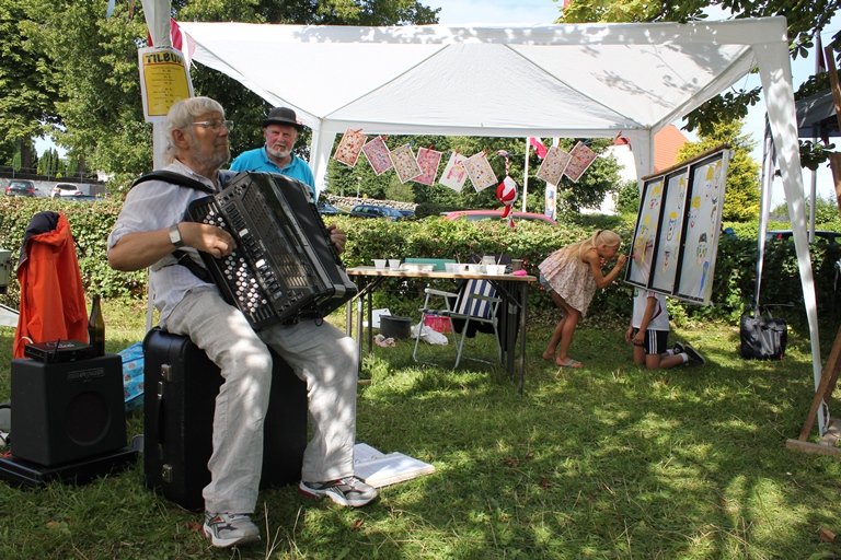 | Bomgaardshaven var fyldt med en børn og voksne, der bidrog til at skabe en fantastisk hyggelig stemning trods den stegende hede sol. Harmonikamusik, herresnak, maleworkshop, småsnak over bordene i boderne og væddemål om hønseskidning var bare nogle af de glimt, som igen bød på en af byfestens årlige højdepunkter. foto: ©2012 Steen Bille