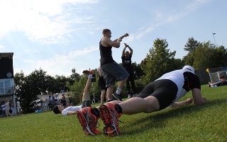 | MaxPuls hed det, søndagsarrangementet i byfesten. Act eller crossfit træning på plænen, action trails for mindre og større børn, petanque, åbent hus i motionscentret og udendørs zumba samlede alle aldre til to timers aktiv motion. Bag det stod TMG's afdelinger basketball, gymnastik, motion og volleyball. foto: ©2012 Steen Bille