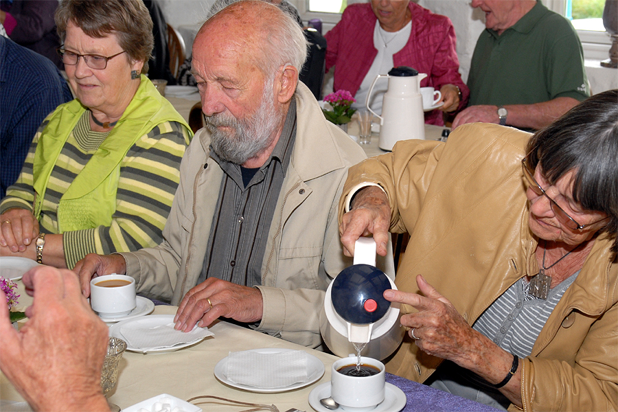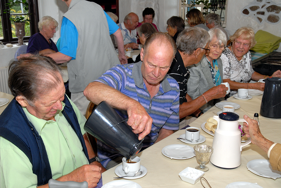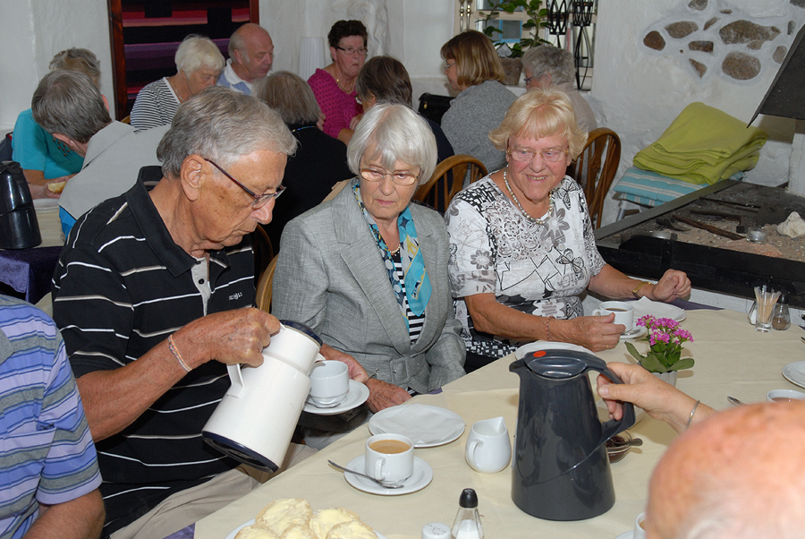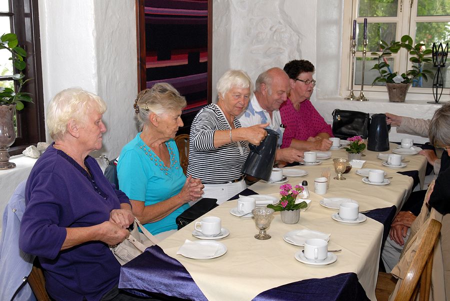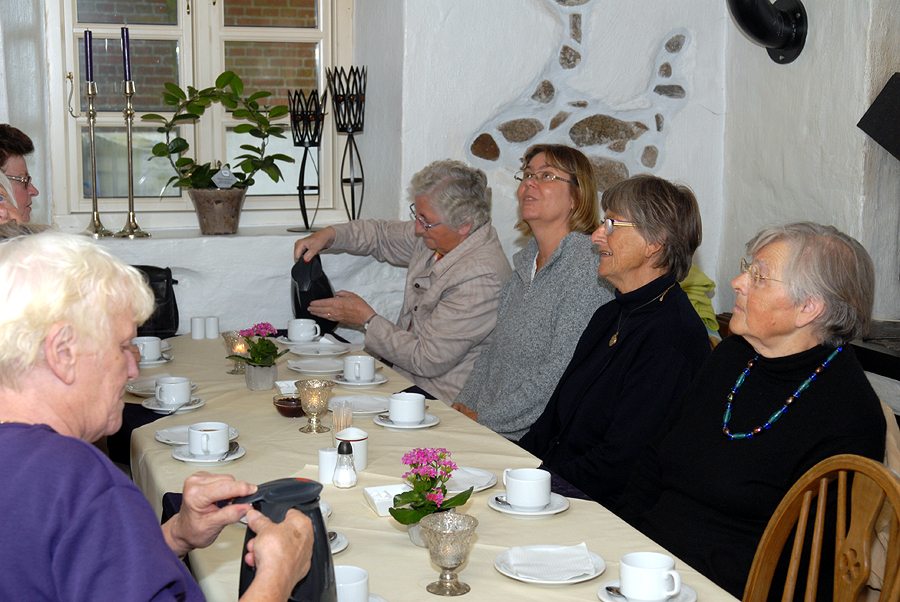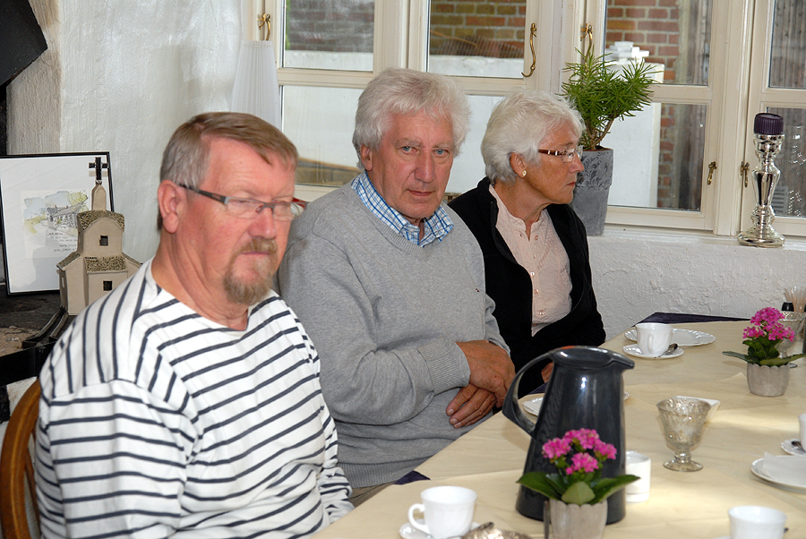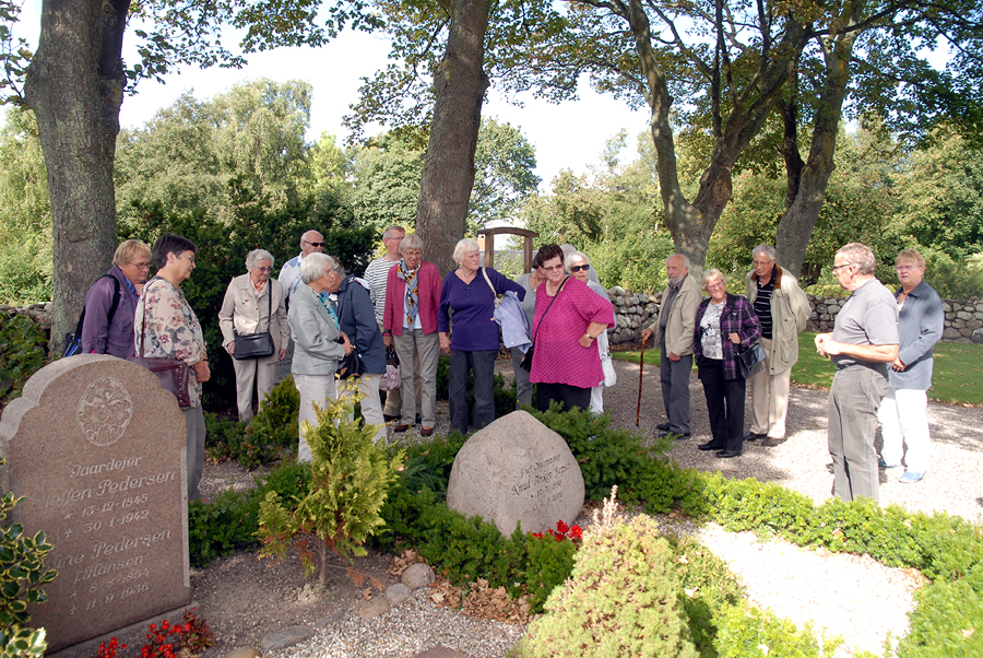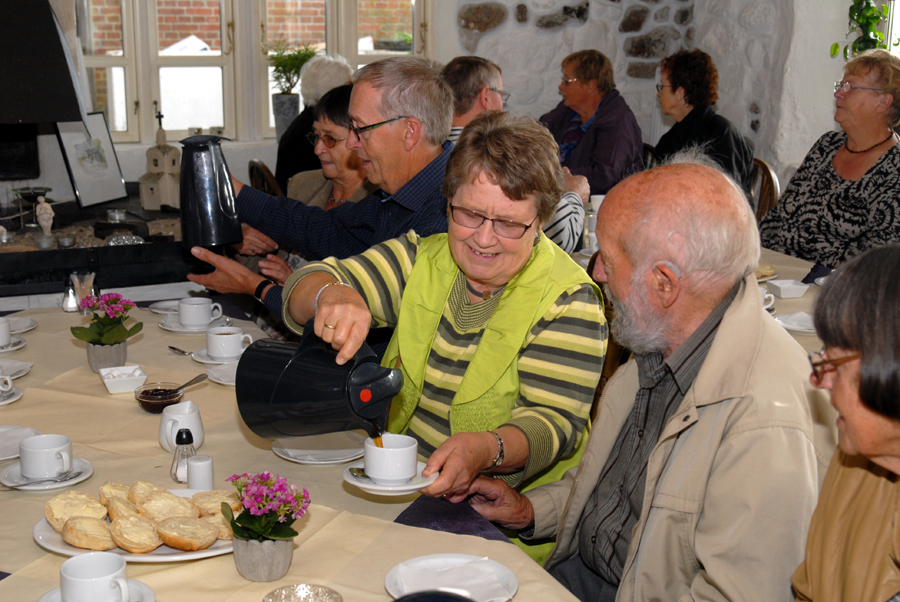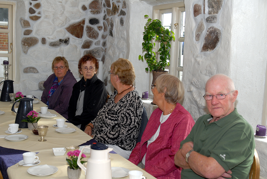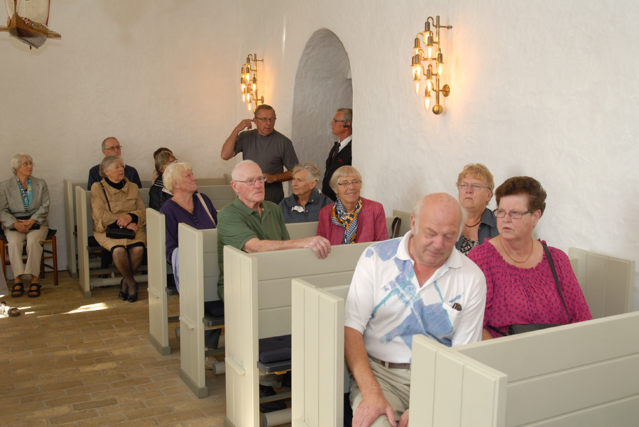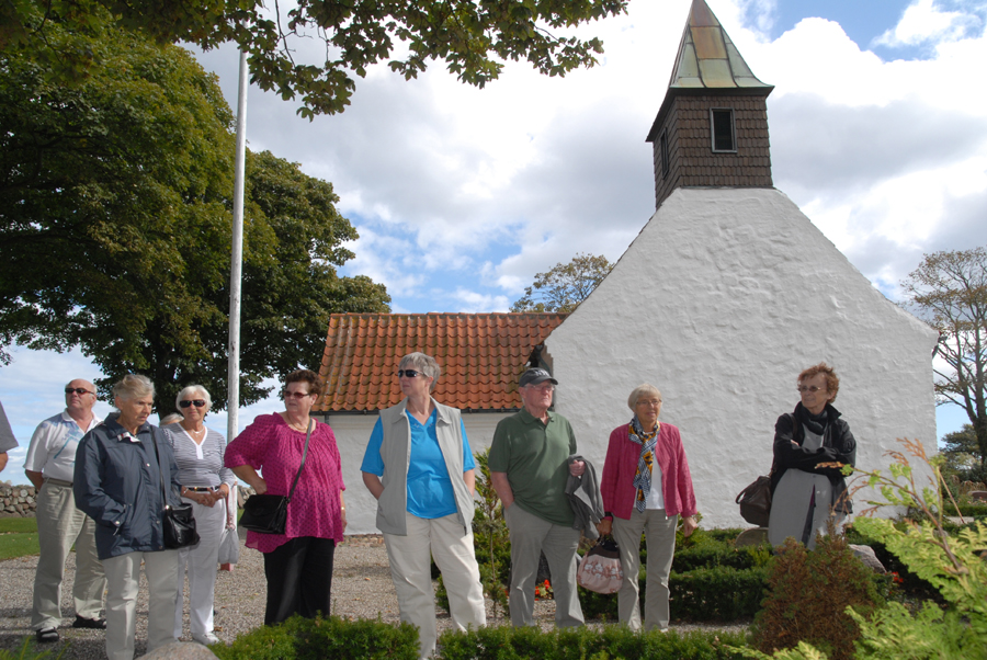 | Den traditionelle løvfaldstur, der normalt finder sted i oktober, blev i år, pga. Sognehusets ombygning, til en sensommertur, der gik til den lille ø, Hjarnø, i Horsens fjord. Med en helt ny bus fra Malling Turistbusser, der kun lige akkurat kunne være på færgen, og Gustav Simonsen med en sikker hånd på rattet, blev vi kørt rundt på øen med vor guide, Carl Holmbjerg, og en fik lille rundvisning i bl.a. kirken, før der blev budt på kaffe og lækkerier i Den gamle Smedje. Alle 30 deltagere var enige om, at Hyggeklubben rigtig levede op til sit navn på denne smukke septembereftermiddag. foto: ©Jørgen Lauritsen