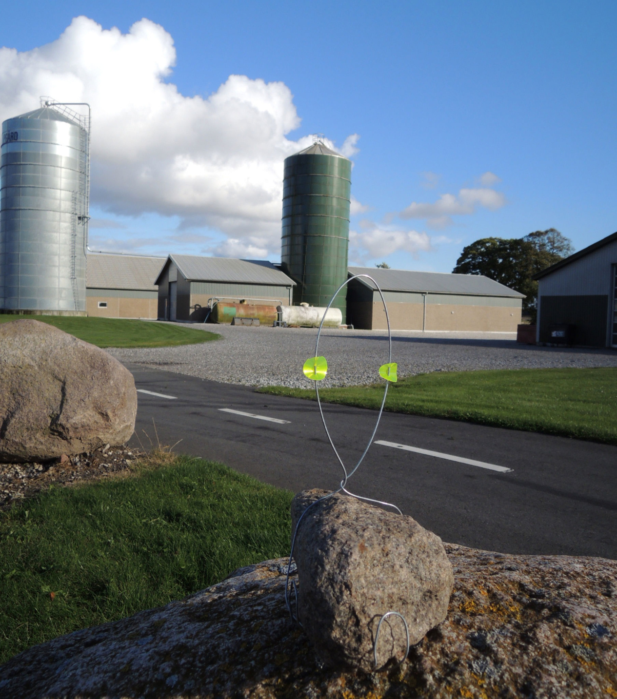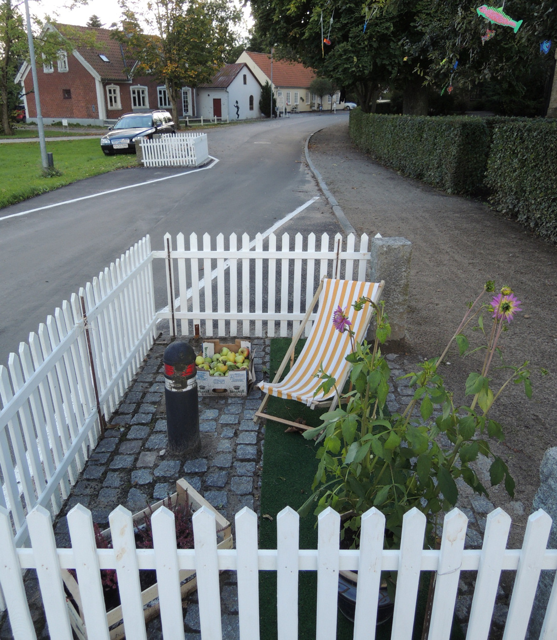 | Streetart i Testrup. Ked-af-det pige, lysende gule øjne på en sten, en zebra på åben mark, en terrasse med liggestol, kurv med æbler ved en af chikanerne, en gorilla i ajlebeholderen, en lyserød undervandsbåd i søen, en rastamand på en hvid gavl og et pink pyntet byskilt. Det er street art af smukkeste karakter i Testrup, en øjenåbner mens jeg kører forbi, ler højt og bare må stoppe for at kigge nærmere på værkerne. Med et stort smil og ekstra varme indeni. Mon ikke eleverne på Testrup Højskole har leget lidt? 22/09 2012 foto: ©2012 Steen Bille