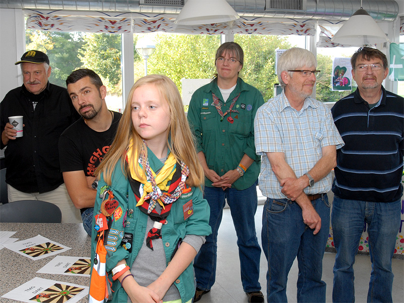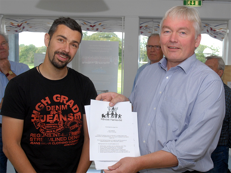 | 13 af foreningerne i 8320-området mødte op og fortalte om dem selv, da HalHuset søndag lagde lokaler til Foreningernes Dag. Et halvt hundrede besøgende havde nogle hyggelige timer, samtidig med de lærte de lokale foreninger nærmere at kende. Under arrangementet blev der også givet økonomiske skulderklap til to nye forenings-initiativer. Læs mere i artiklen herunder om 'Støtte til to foreninger'. foto: ©2012 Jørgen Lauritsen Støtte til to foreninger 24/9/2012 Der blev uddelt kontant støtte til to friske initiativer i Mårslet da HalHuset søndag lagde lokaler til Foreningernes Dag. Fællesrådet gav 1100 kr. til Mårslet Skoles Venner til fremstilling af T-shirts og plakater som skal gøre foreningen mere synlig. Gennem større synlighed håber skolevennerne på at få flere medlemmer. Dermed kan foreningen øge støtten til aktiviteter på skolen, som ligger ud over den sædvanlige undervisning. Desuden gav Fællesrådet støtte til opstart af en dartklub som afdeling under TMG. Søren Smerup, som har taget initiativet til dartklubben, fik tilsagn om støtte til 33 procent af etableringsudgifterne, dog maksimalt 3000 kr. Efter et afbud var 13 foreninger repræsenteret ved arrangementet i HalHuset. Omkring et halvt hundrede mennesker havde nogle hyggelige timer hvor de lærte foreningslivet i Mårslet nærmere at kende. I sin tale ved prisuddelingen fortalte Fællesrådets formand John Engelbrechtsen at ideen til arrangementet opstod på det åbne visionsseminar på Testrup Højskole i 2010. Formålet med dagen var at øge kendskabet til de lokale foreninger og sætte fokus på foreningslivets bidrag til at 8320-området er et attraktivt sted at bo.
