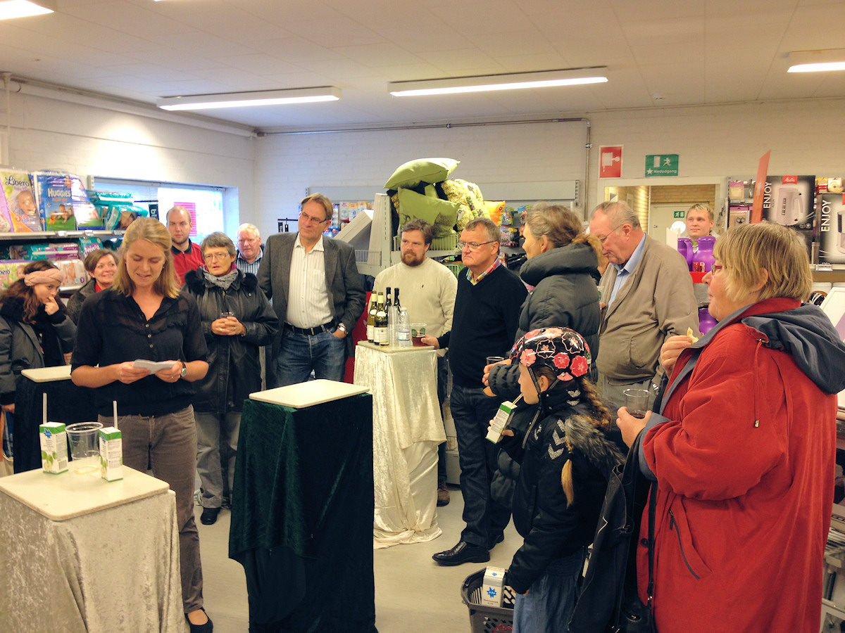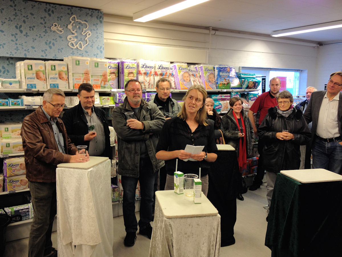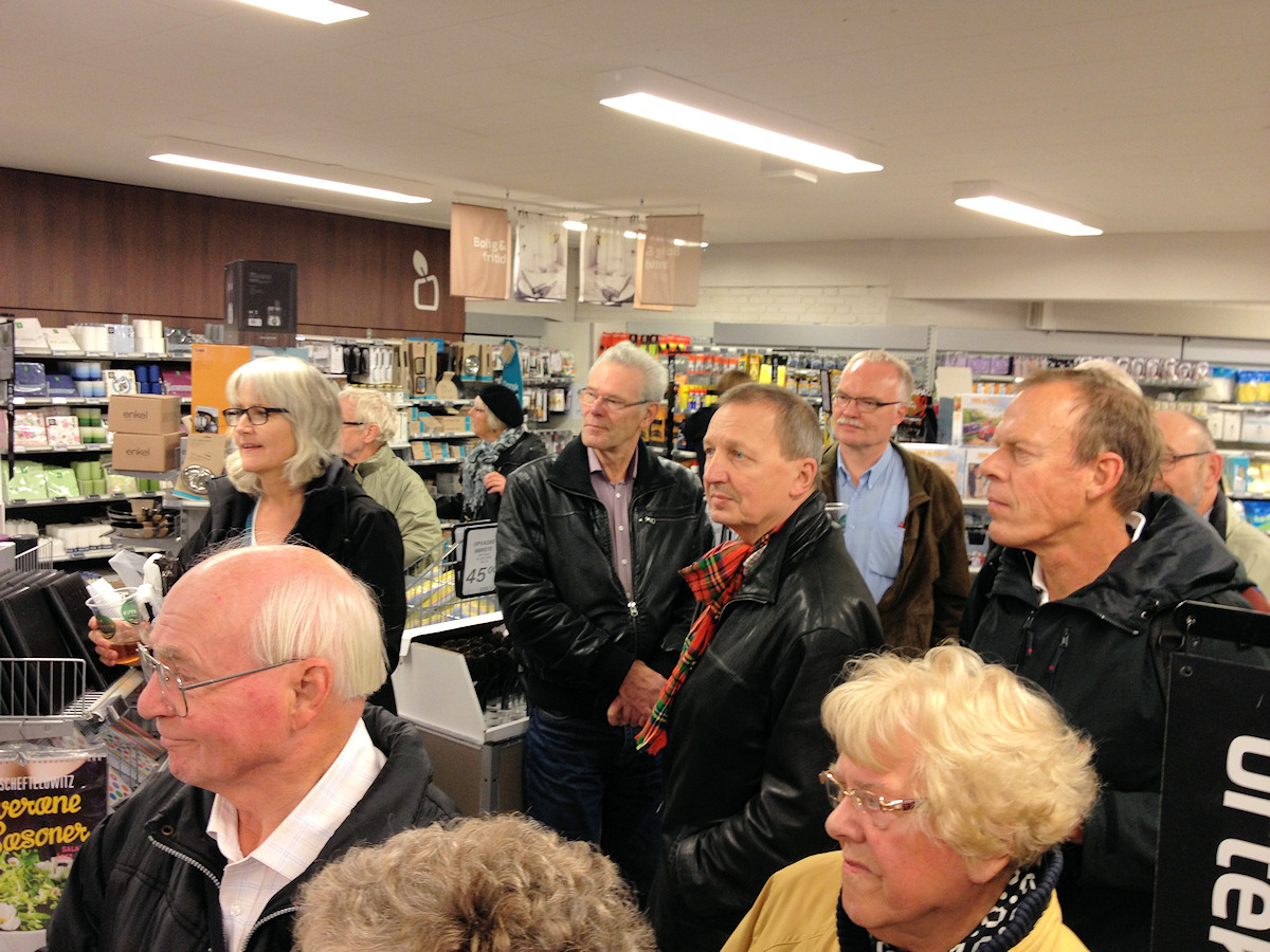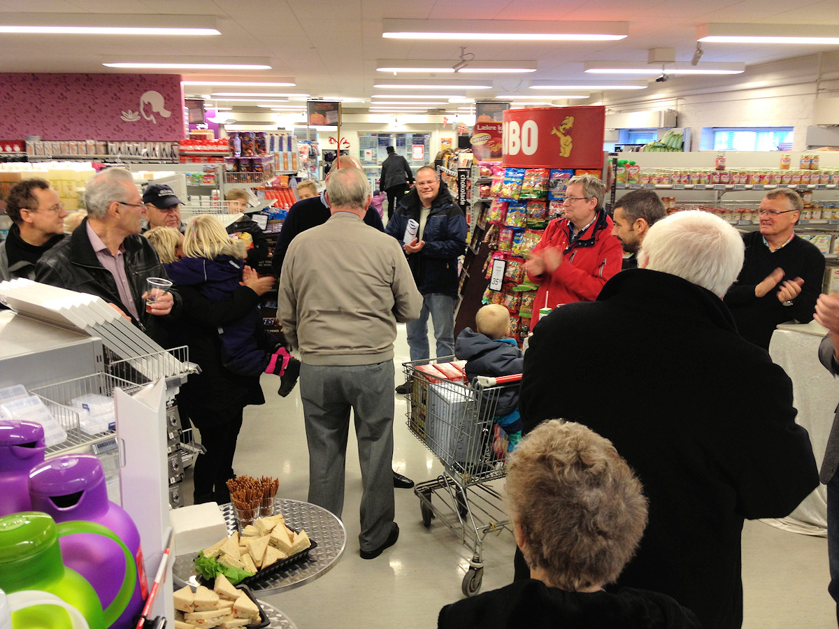 | Fredag den 26. oktober kl. 16:00 inviterede bestyrelsen for SuperBrugsen, Mårslet, til afskedsreception for uddeler Jesper Nielsen, der har søgt nye udfordringer, og rigtig mange mødte frem for at takke Jesper for det arbejde, han har lagt i at gøre SuperBrugsen i Mårslet til det, den er i dag. Som én af talerne udtrykte det: "Det svarer jo nærmest til at sælge sand i Sahara." Det sidste billede i serien viser Jesper sammen de formænd, der har været i SuperBrugsen, igennem de 16 år hvor han har været Brugsens uddeler. Det er fra venstre mod højre: Bent Bauning - Lars Berggreen Rasmussen - Ulla Reintoft Henriksen - og nuværende Anne-Mette Bay Bjørn. 27/10 2012 foto: ©2012 Kirsten & Poul Granslev