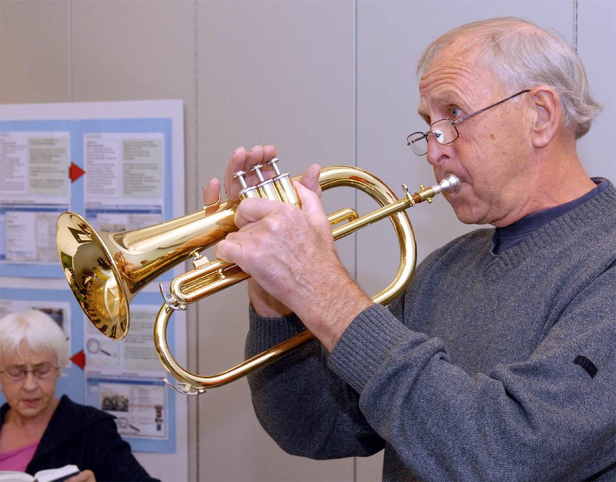 Gemalen Svend Uth akkompagnerede sangene fra Højskolesangbogen med sit flygelhorns bløde tone.
