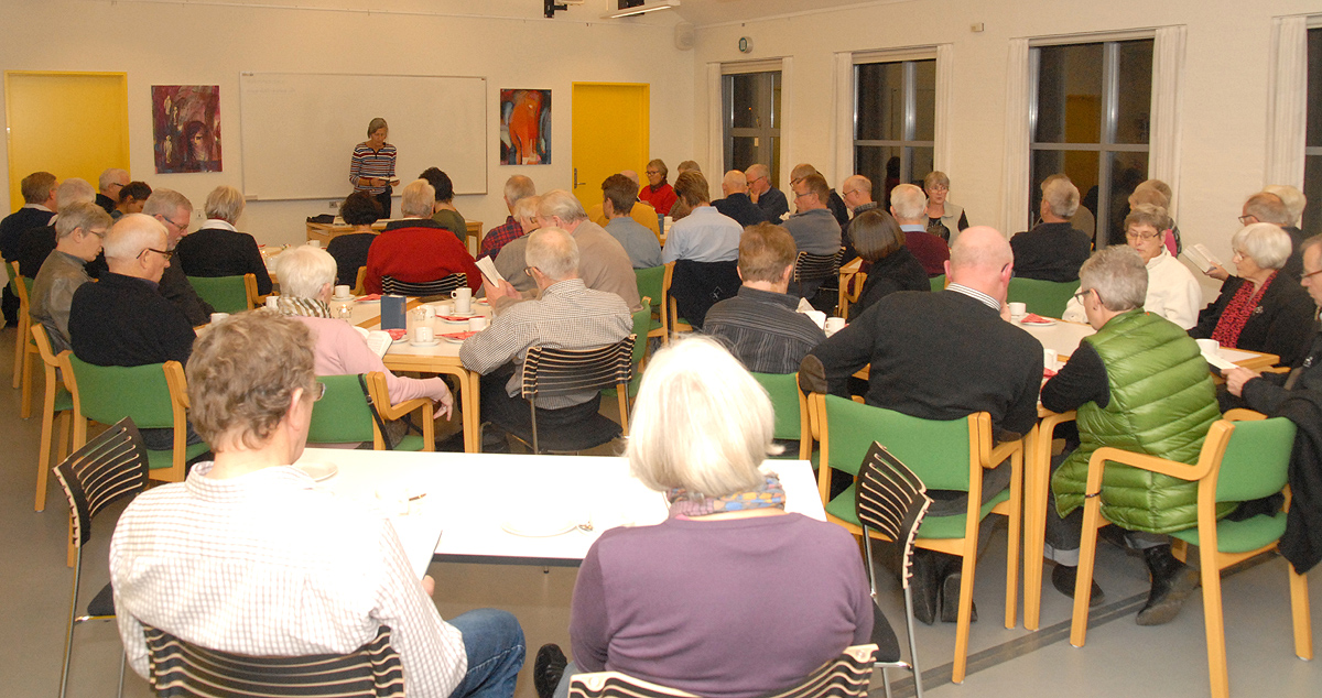 Lokalhistorisk Forening havde inviteret Tove Uth til at fortælle om sin far, modstandsmand og nedkastningschef for Jylland under Anden Verdenskrig, og salen var med omkring 60 tilhørere stuvende fuld.