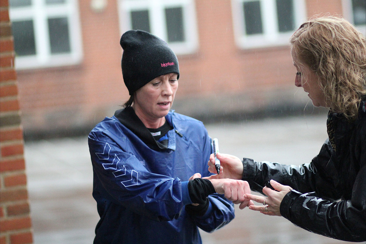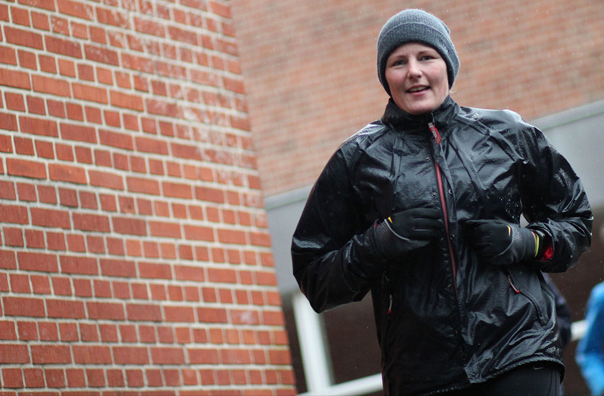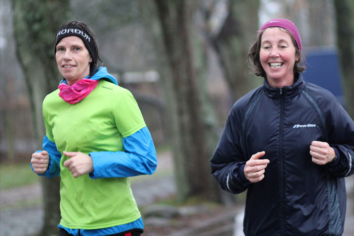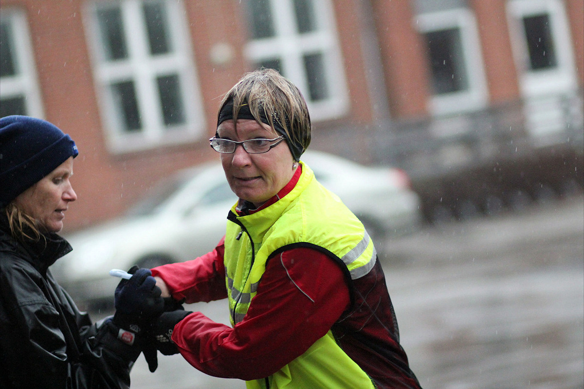 | 15 af efterårets 50 løbemotionister i TMG motions løbeskole holdt humøret højt og gejsten gæv, da de trodsede søndagens møgregn til et sløjfeløb på skolens område. Med det sluttede de efterårets 12 ugers løbeskole med en løbetur hjulpet af løbetrænerne, cacao og Monas hjemmebagte boller i HalHuset. Løbeskolen starter igen i tre grupper til april. (bille) foto: ©2012 Steen Nielsen
