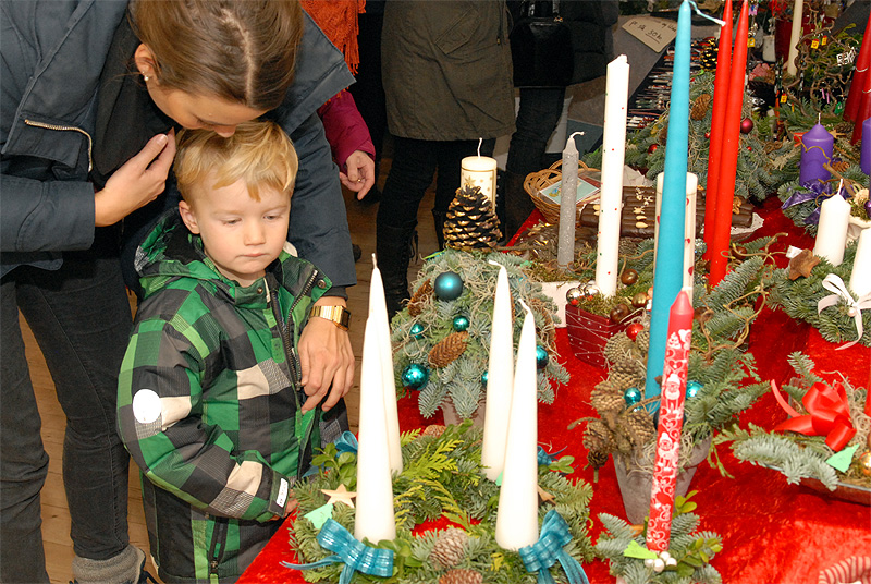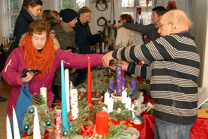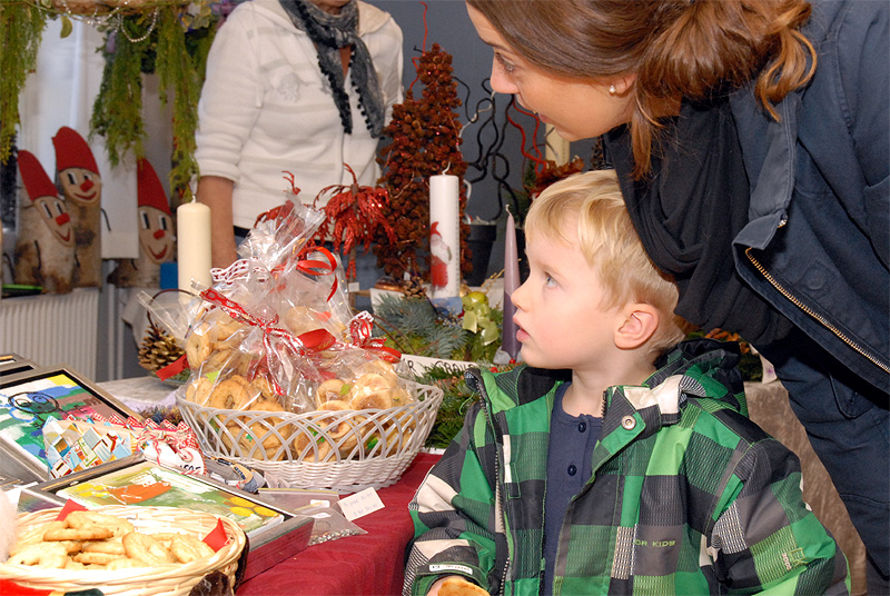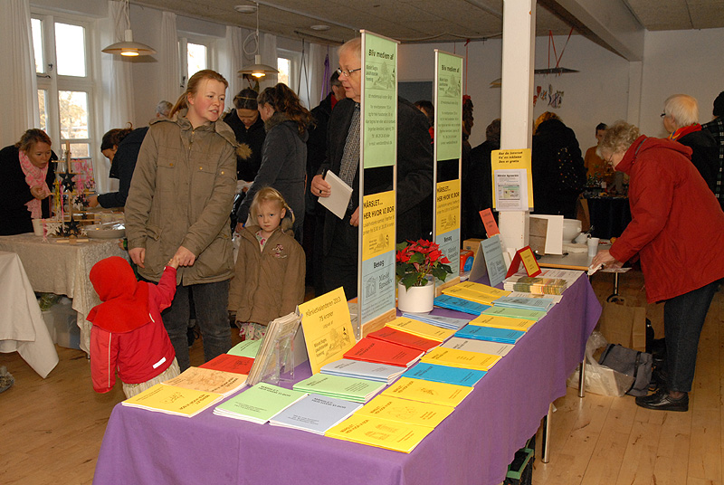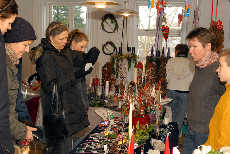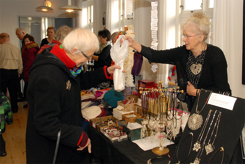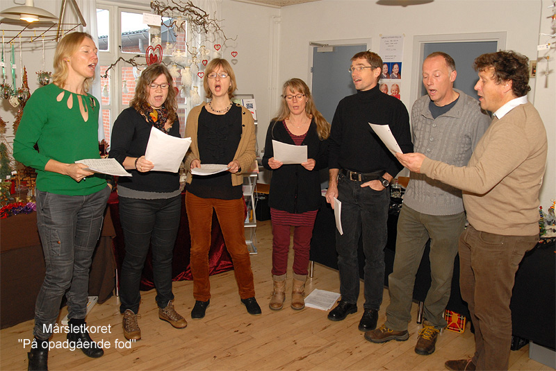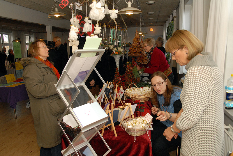 | Det årlige julemarked i Borgerhuset var godt besøgt både lørdag og søndag. Og de mange besøgende kunne glæde sig over et rigt varieret udbud i de traditionelle artikler, der hører julen til. Lørdag blev - traditionen tro - juletræet tændt af årets mårsletborger, der i år var Kurt Kirkedal Laursen. Ole Nørslov underholdt med banjomusen og juletræslaugets Kaj Christensen udtrak vinderen af julesnapsen på nr. 284, hvorefter julemanden delte slikposer ud til de mange børn. Arrangementet sluttede i kirken, hvor julen blev sunget ind. foto: ©Jørgen Lauritsen