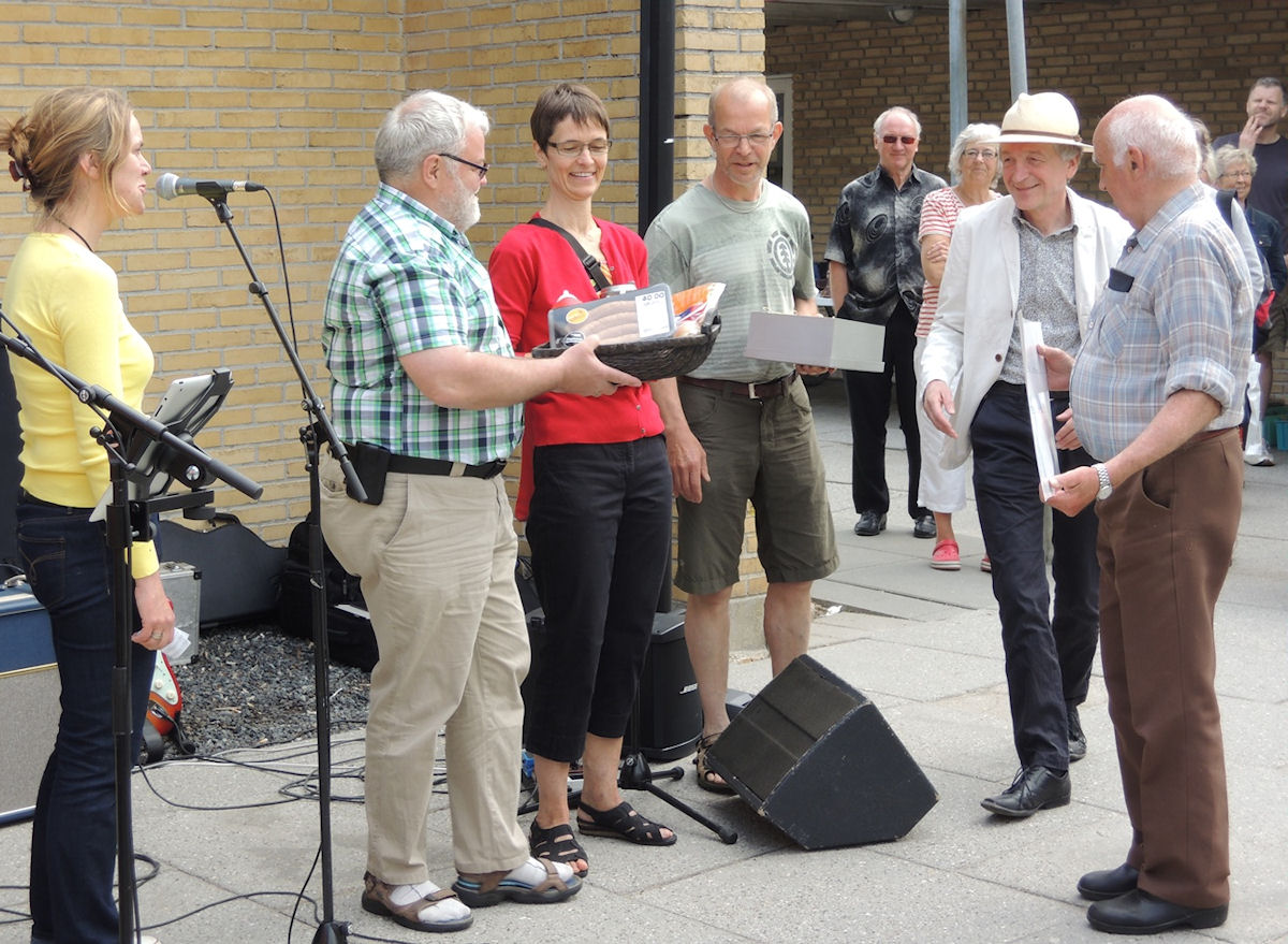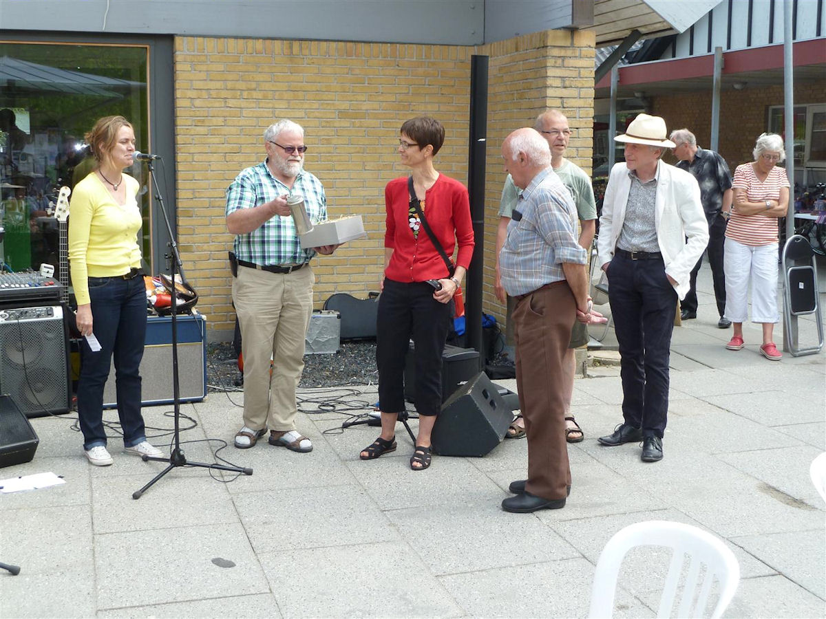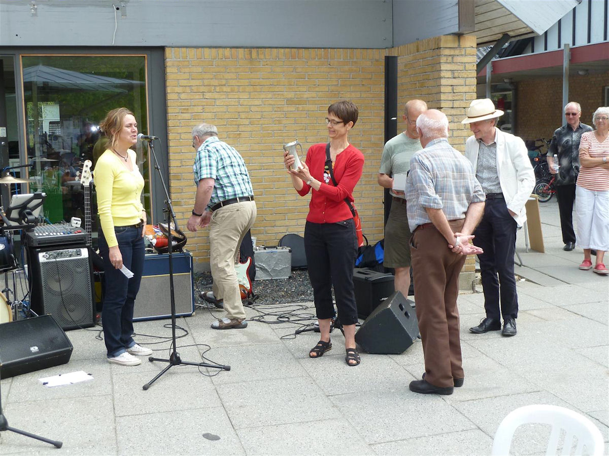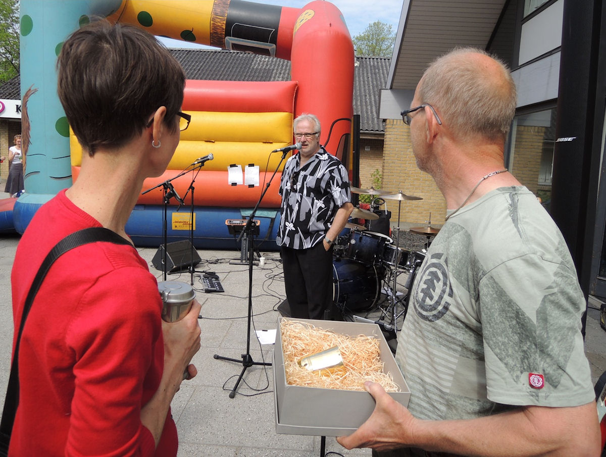 | Det blev ikke en person, men en gruppe, der blev kåret som Årets Mårsletter 2013 ved pinsefesten på bytorvet 18. maj. Valget blandt i alt syv indstillede hver morgen kommer sikkert over Hørretvej, både i midtbyen og ved baneoverskæringen. Kåringens sponsor er SuperBrugsen, hvis formand Anne-Mette Bay Bjørn holdt talen, mens sidste års prismodtager Kurt Kirkedal Laursen overrakte en check på 1000 kr. og en købmagerkurv. På grund af pinsen kunne alene Lisbet Albertsen, Kurt Søe, Per Henrik Hansen og Arne Nielsen modtage prisen på Trafikgruppens vegne. Skolen trafikkontakt Ole Nørskov roste gruppens for dens ihærdige arbejdsindsats inden hans orkester Touch of Shadows spredte musikalsk glæde i solskinnet. (Steen Bille) foto: ©2013 Steen Bille og Jesper Andersen
