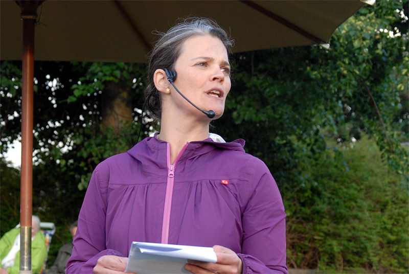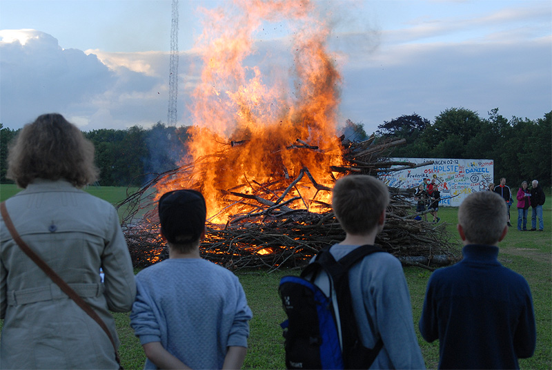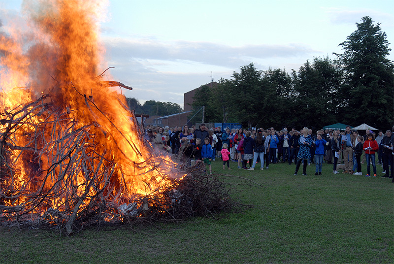 | Midsommer i Mårslet blev traditionen tro fejret med et stort sct. hansbål på boldbanerne. Båltalen, direkte henvendt til heksen på toppen af bålet, blev holdt af sognepræst Mette Maria Kristensen. foto: ©Jørgen Lauritsen