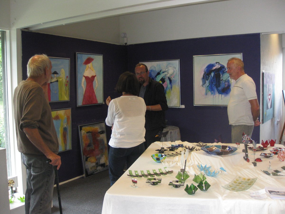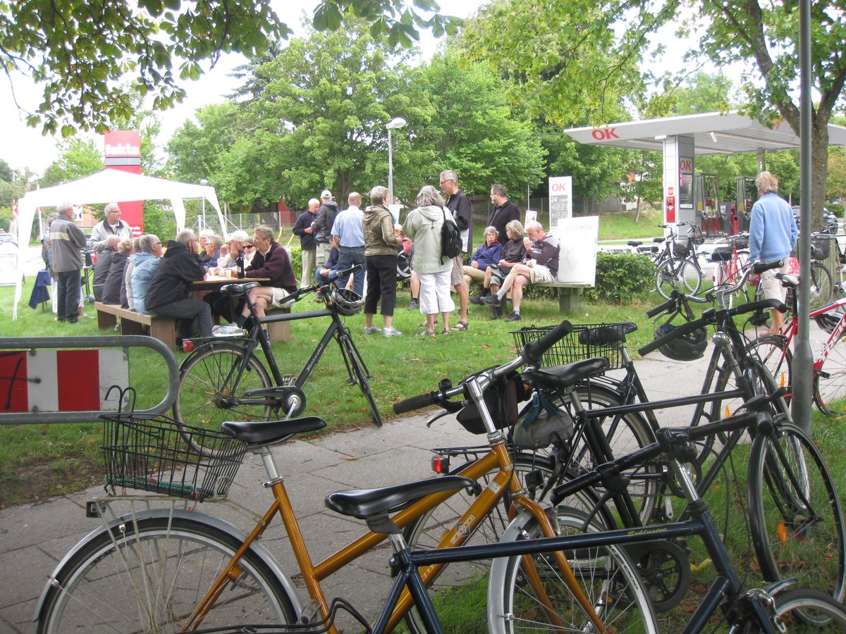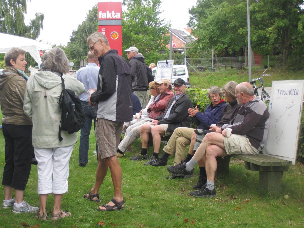 | Onsdag gik Byfesten så småt igang, med TYSTARTEN, en hyggelig cykeltur med folk over 60 år. Efter turen var der øl og pølser til deltagerne, 32 af slagsen. Djursland Bank sponserede. - og nyt i Byfesten er Stiplets kunstudstilling i Nordea-bygningen, som kunstgruppen har lånt hele ugen. Kig ind når I skal i Brugsen. Åbent fra 14 - 19 hver dag. foto: ©2013 Kaj Christensen