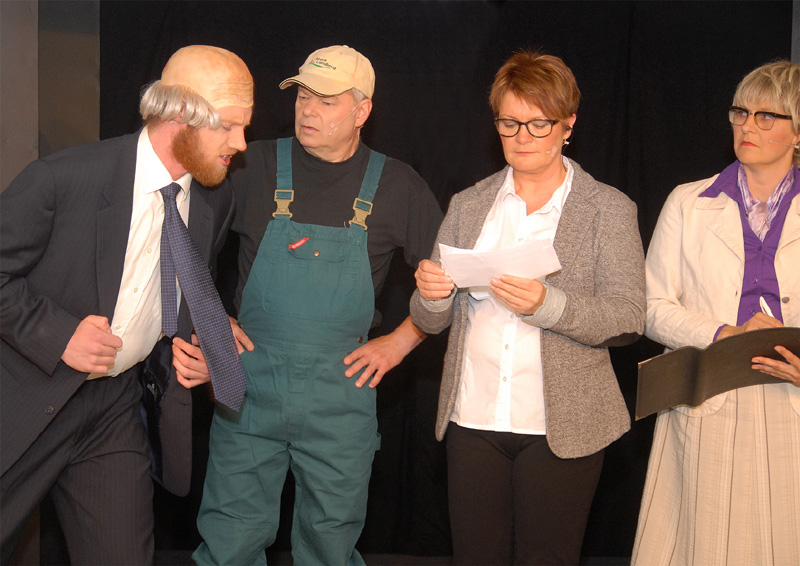 | Mårslet Revyen 2013 Årets mårsletrevy "Ulv i uld" havde premiere i Borgerhuset onsdag den 2. oktober, og vi kom vidt omkring på de små to timer. ens tilstedeværelse i Danmark (og Malling?) var et gennemgående tema, men både lokalpolitik og landspolitik kom under behandling i en festlig kavalkade i morsomme sketches, godt og sikkert udført af de dygtige aktører fra "105 g blandet". Instruktionen er lagt i hænderne på Pia Voxtorp og den musikalske side styres af Jens Erik Præstegaard. Revyen spiller til og med lørdag den 5. oktober, og billetter kan købes i Superbrugsen. foto: ©Jørgen Lauritsen