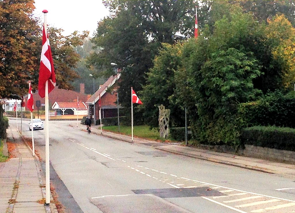 | Flagalléen lørdag 5/10-13 hyldede Mårslet Skoles personale. 5. oktober er FNs Internationale Lærerdag. Den markeres med lærerhyldest i mere end 100 lande verden over. FN har indført dagen for at anerkende den enorme betydning, lærerne har for børnenes basisuddannelse i alle verdens lande - og dermed også for de enkelte landes udvikling. På skolerne i Danmark er alle personalegrupper jo faktisk sammen om den komplekse opgave, det er, at dygtiggøre skolebørnene mest muligt på alle felter. Byens flotte flagallé hyldede på dagen derfor alt skolepersonel på Mårslet Skole. foto: ©2013 Dorthe Ryom Fisker