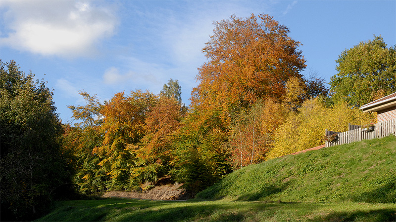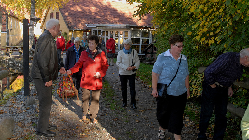 | Det var den skønneste efterårsdag, lunt og med masser af solskin, da Hyggeklubben tog afsted på den årlige løvfaldstur. Med Gustav ved rattet i en af Malling Turistfarts store busser gik turen ad de smukkeste veje til Mols langs med kysten nordpå via Egå, Studstrup, Følle, Rønde, Vrinners, Agri til Møllekroen i Femmøller. Her ventede kaffen med boller og lagkage, og der blev også tid til at strække benene udenfor i det idylliske landskab, hvor naturen strålede i den smukkeste efterårsdragt, før turen gik tilbage til Mårslet. (Foto: Jørgen Lauritsen ©2013)