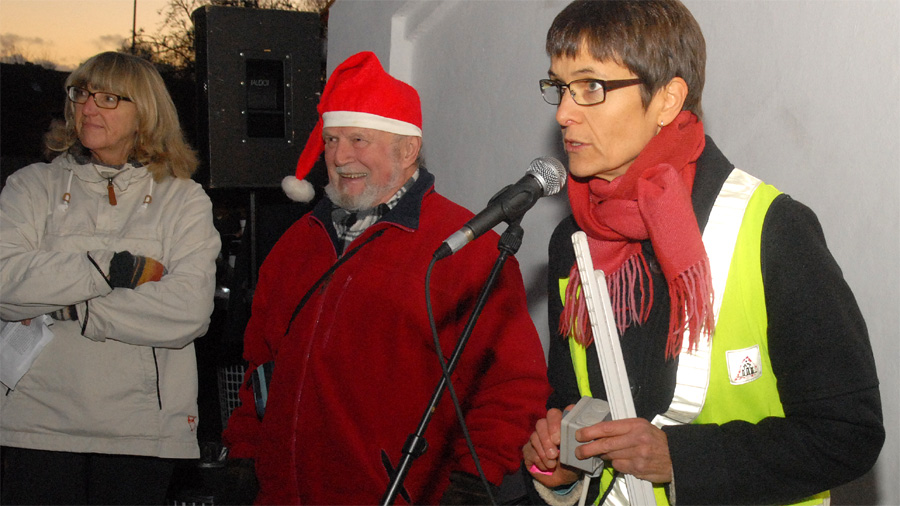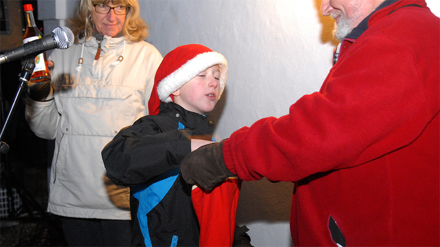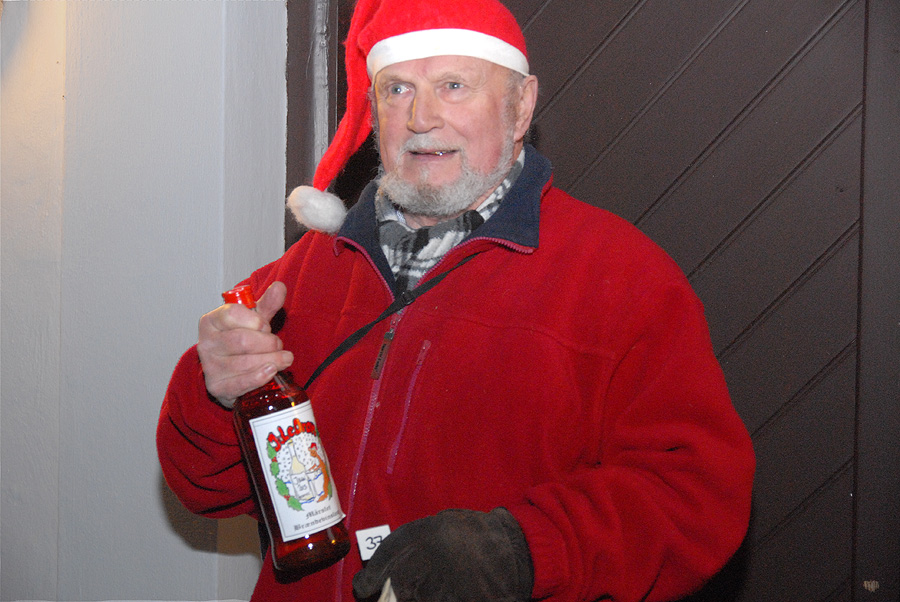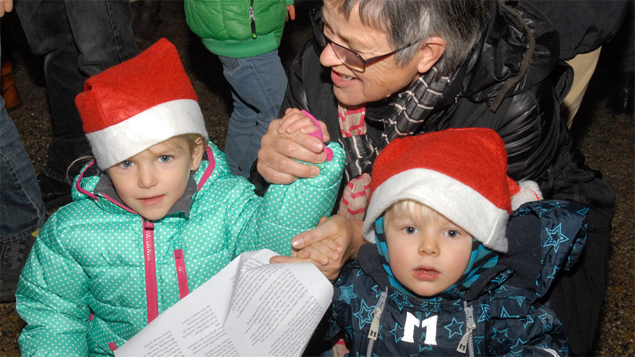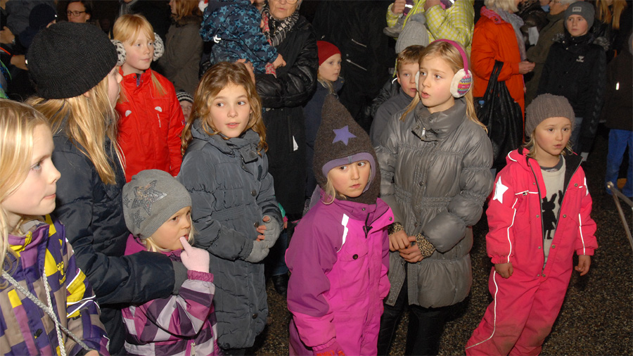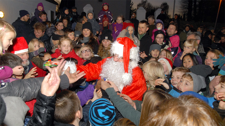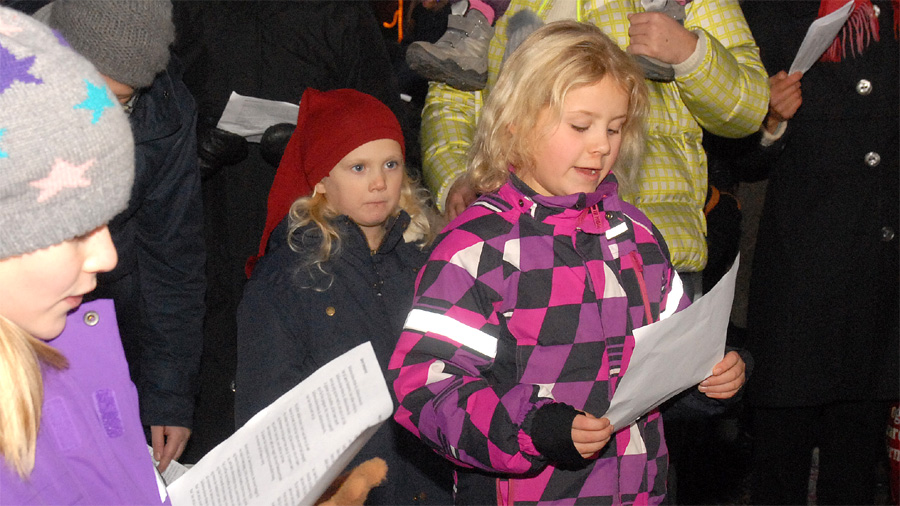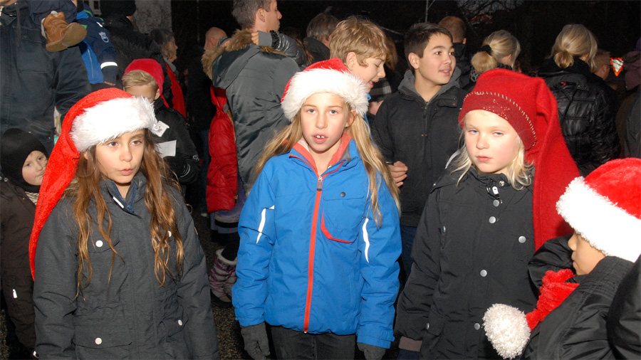 | Juletræstænding 2013 Der var ikke megen julestemning over vejret denne lørdag eftermiddag, men det blev der rådet bod på af de to spillemænd Preben Ulvskov og Jørgen Kraglund, da børn og voksne sang med på Højt fra træets grønne top. Trafikgruppen, der sørger for at skolebørnene kommer sikkert over vejene, blev i år kåret som årets mårsletborgere, og det blev Lisbet Albertsen, der på gruppens vegne styrede knappen, der tændte de mange lys på det smukke træ. Julemanden kom med godteposer til de mange børn, og fra Juletræslauget var der gave på 5.000 kr. til multihalprojektet. Vinderen af årets julesnaps fra Mårslet Brændevinslaug blev udtrukket på nr. 37 og kan afhentes hos Kaj Christensen, Hørretvej 13. foto: ©Jørgen Lauritsen