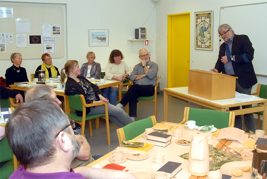 | Mårslet Sogns Lokalhistoriske Forening Generalforsamlingen i Mårslet Sogns Lokalhistoriske Forening blev afholdt i Sognehuset onsdag d. 26. marts. Hugo Kristensen blev valgt som dirigent, hvorefter formanden Anne Marie Dalsgaard Mikkelsen orienterede om det forgangne års aktiviteter. Det blev vedtaget, at at foreningen køber en symbolsk mursten med navn (2.400 kr.) til det planlagte multihus. Regnskabet blev gennemgået ved kassereren Ingelise Wendland og godkendt. Der var genvalg til bestyrelsesposterne, dog træder Jørgen Kraglund ud, og ind blev i stedet valgt Leo Jelling, Testrup. Det er i år 30 år siden foreningen blev stiftet, så der blev i dagens anledning suppleret med lagkage til kaffen. Herefter blev ordet givet til forstander Jørgen Carlsen, Testrup Højskole, der i et interessant foredrag fortalte baggrundshistorien om højskolens tilblivelse fra 1866 og frem til i dag. Der var efterfølgende spørgsmål fra de omkring 45 fremmødte medlemmer bl.a. om højskolens politik, om tiden som sygeplejerskehøjskole og forholdene under besættelsen. foto: ©Jørgen Lauritsen