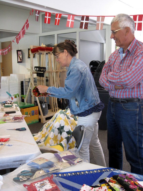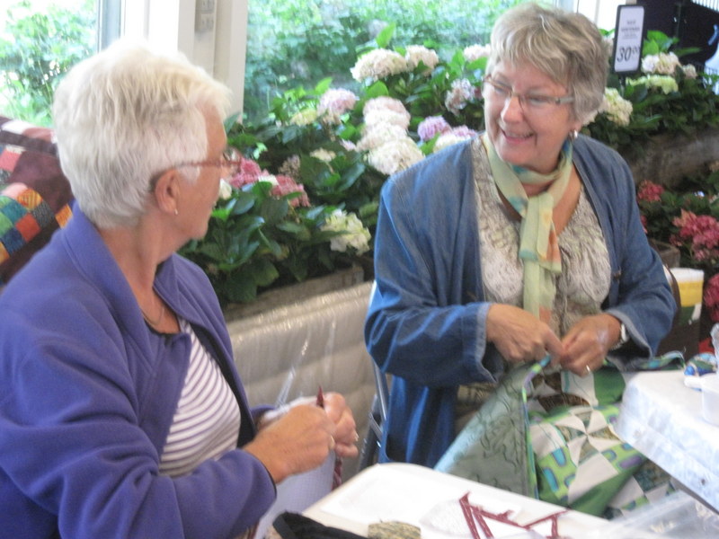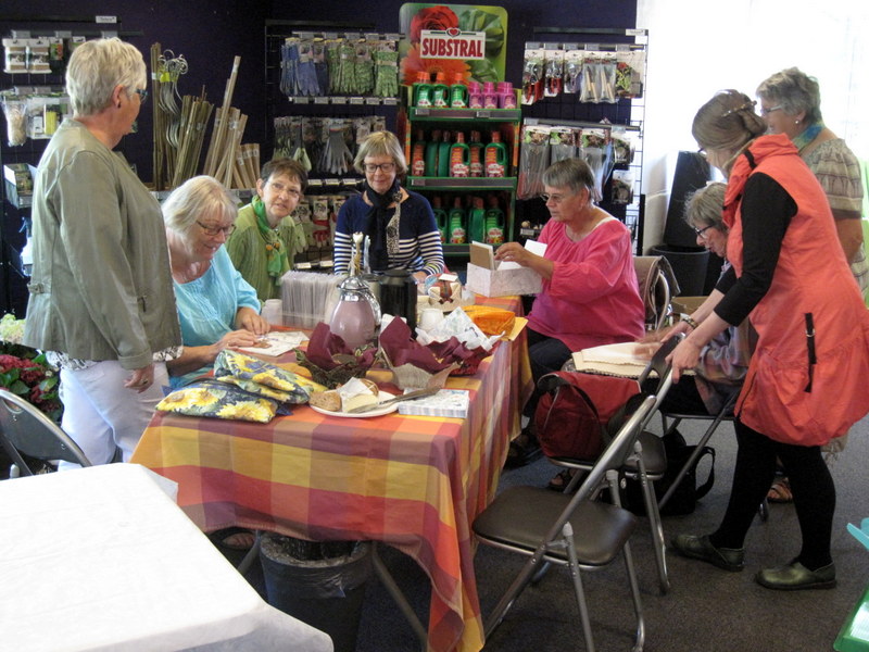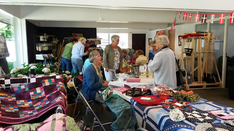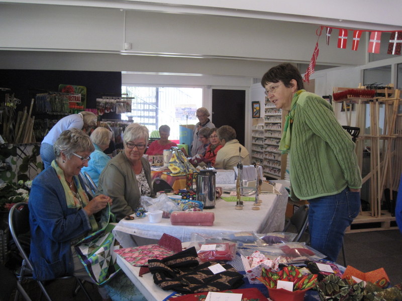 Billeder fra en vellykket patchworkdag - imellem SuperBrugsens haveredskaber og blomster.