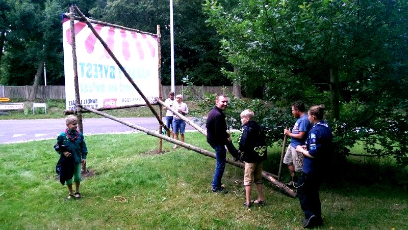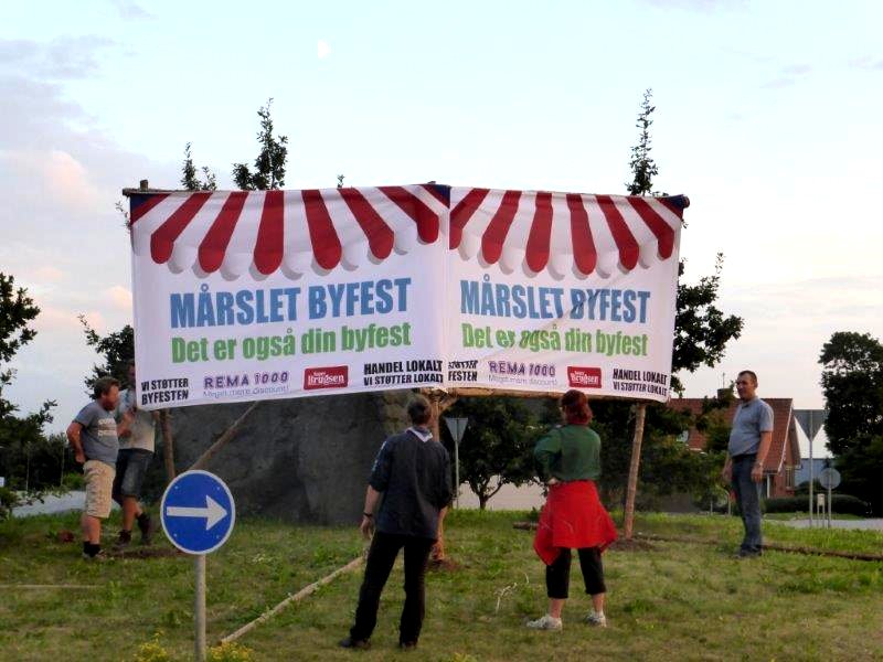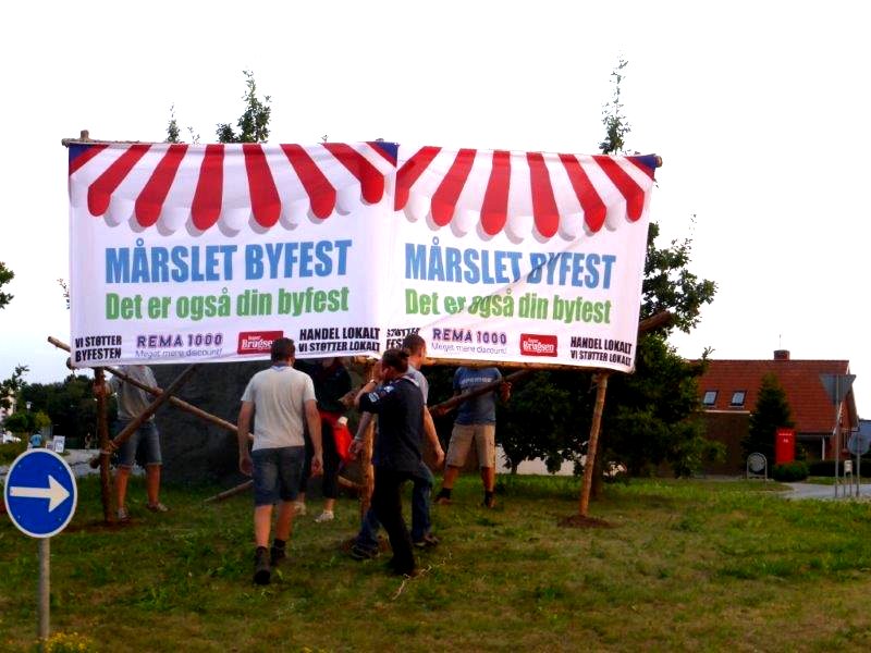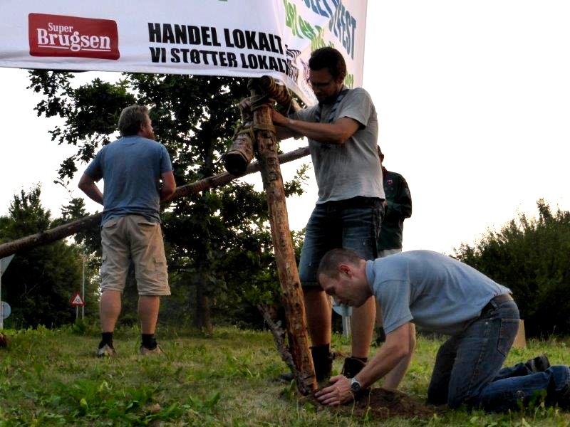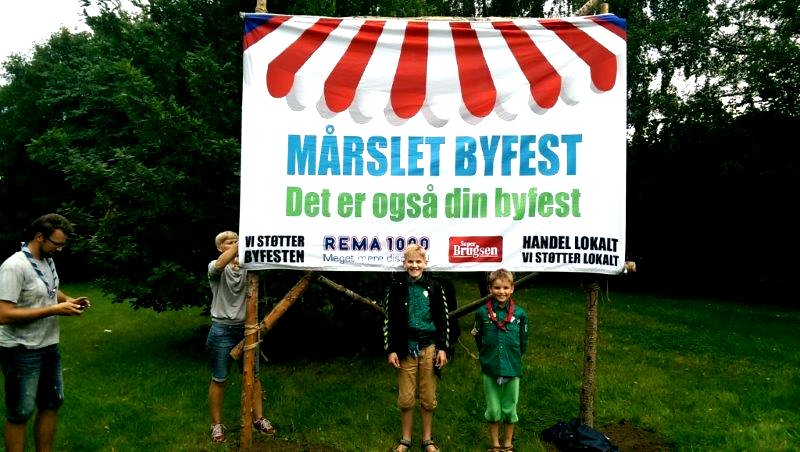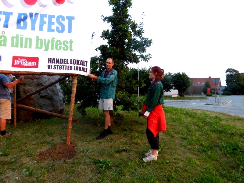 | Mårslet Byfest - Forberedelse Alle byens spejdergrupper er fælles om opsætningen: Det Danske Spejderkorps - De grønne pigespejdere - og KFUM spejderne i Mårslet. foto: ©John Johansen & Preben Kidmose