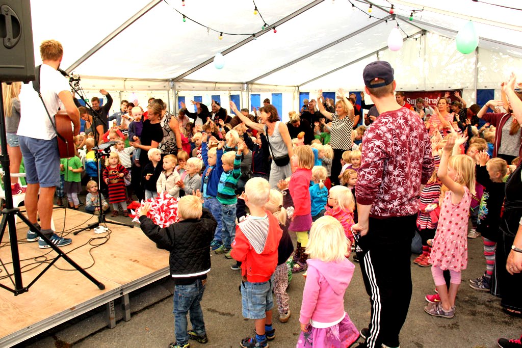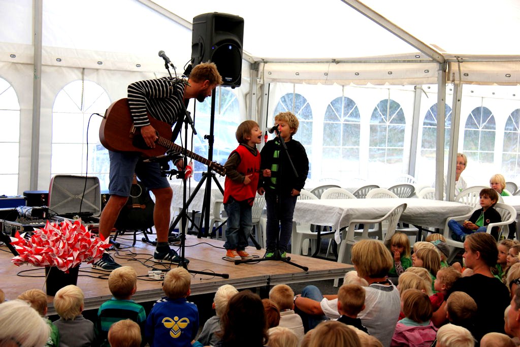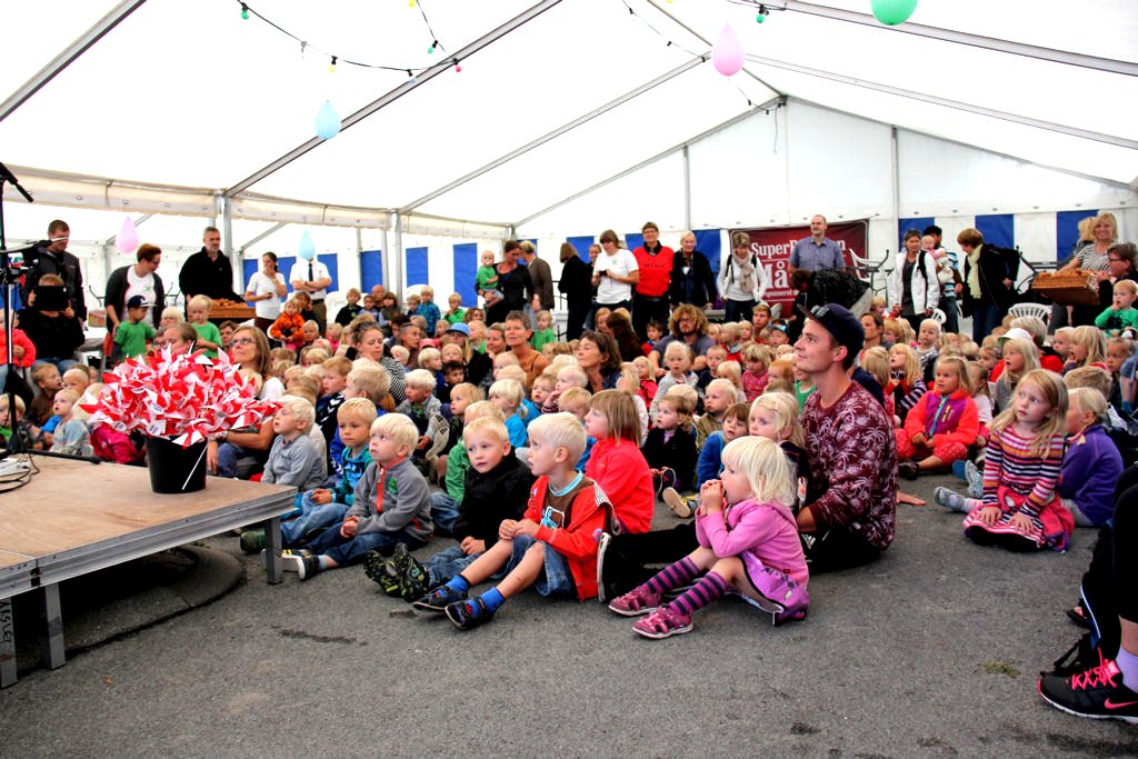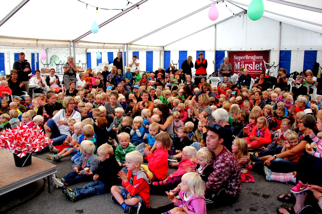 | Mårslet Byfest - for børnene. Der var lagt op til kæmpe fest, da 250 forventningsfulde børn fejrede Mårslet Byfest i teltet - hvor Kolling stod for den musikalske underholdning - Rema - SuperBrugsen og Bageren stod for frugt - boller og brikker til alle børnene. En formiddag med højt humør og masse af glade børn. foto: ©Ole Gade