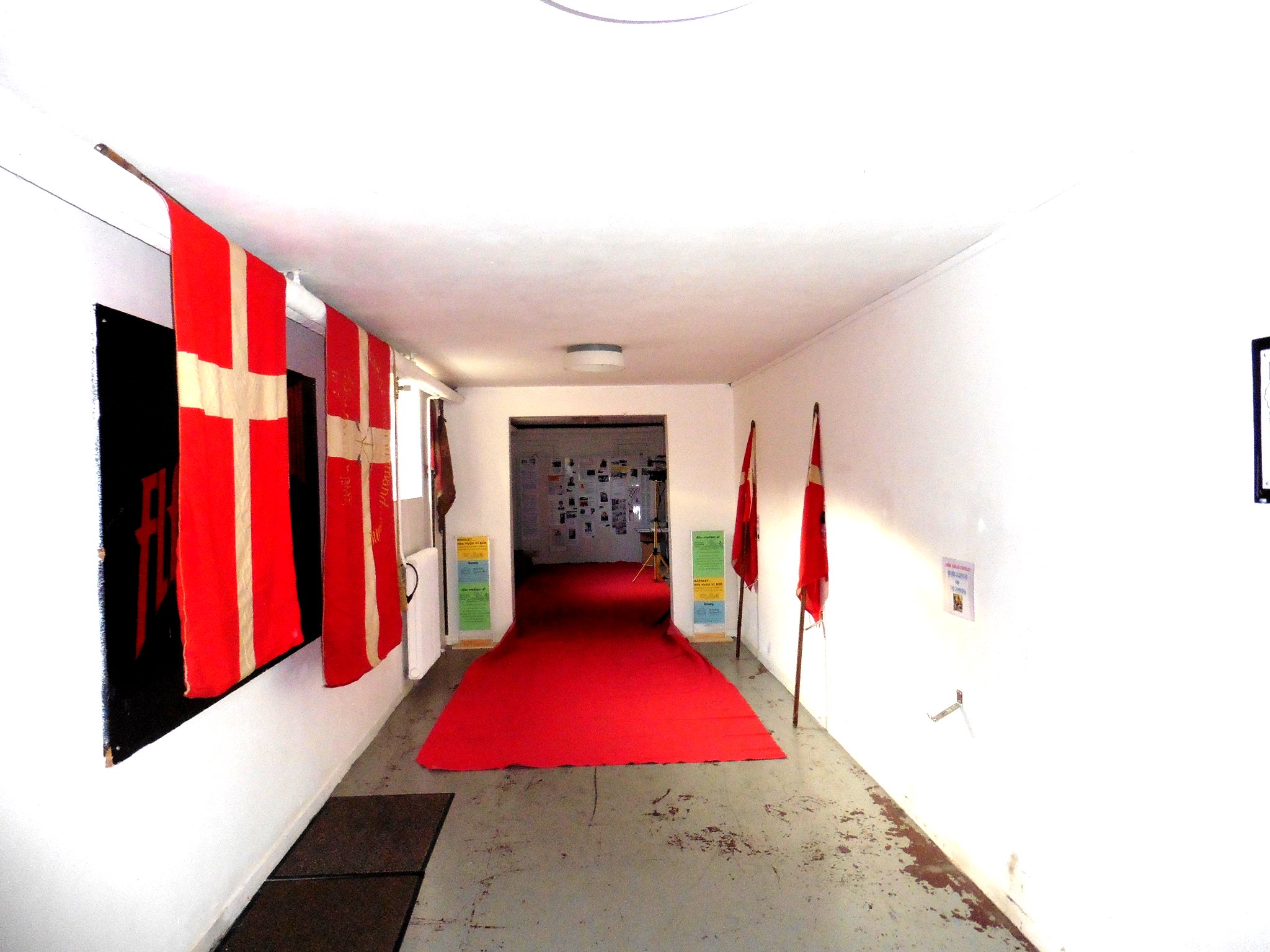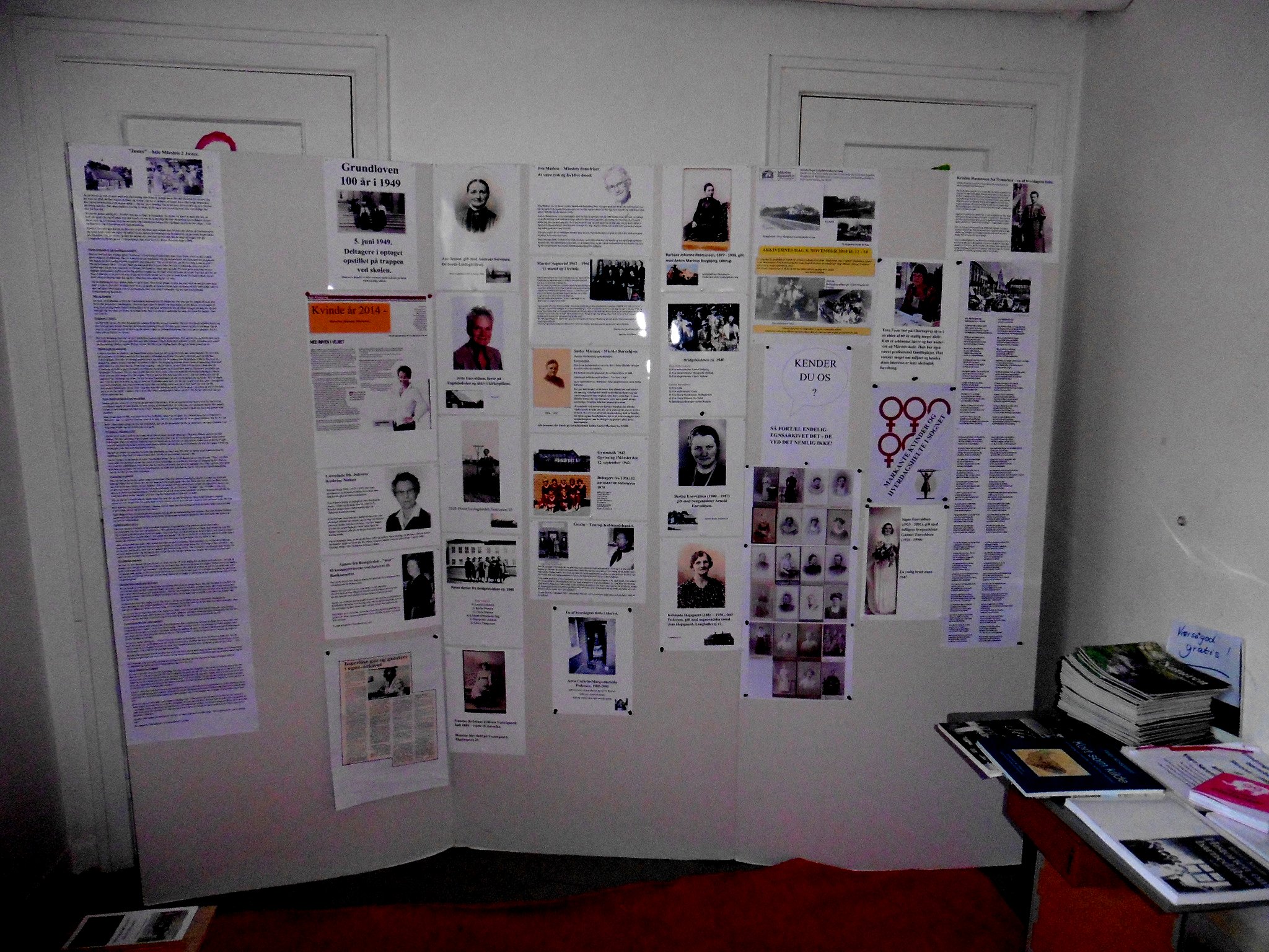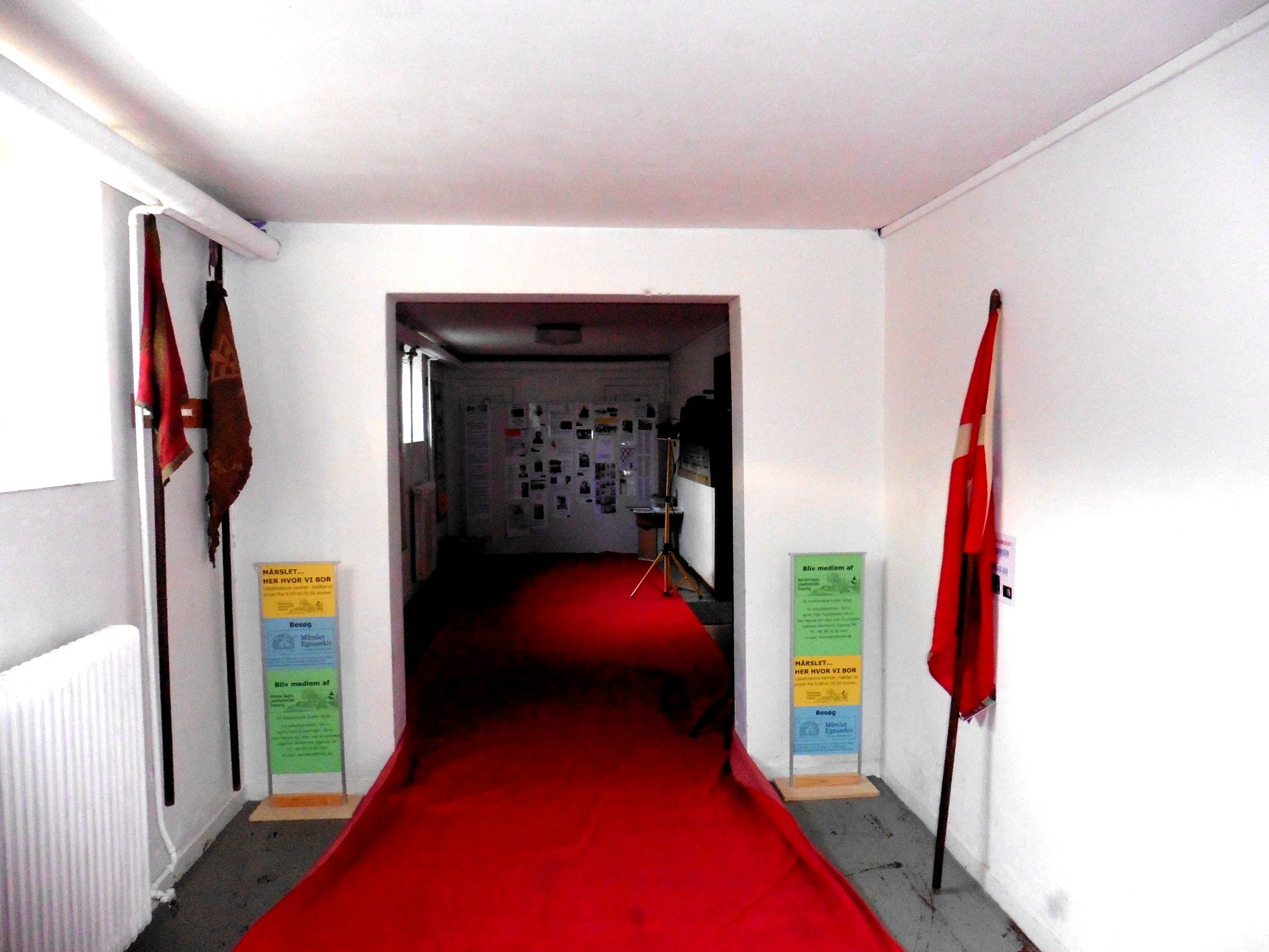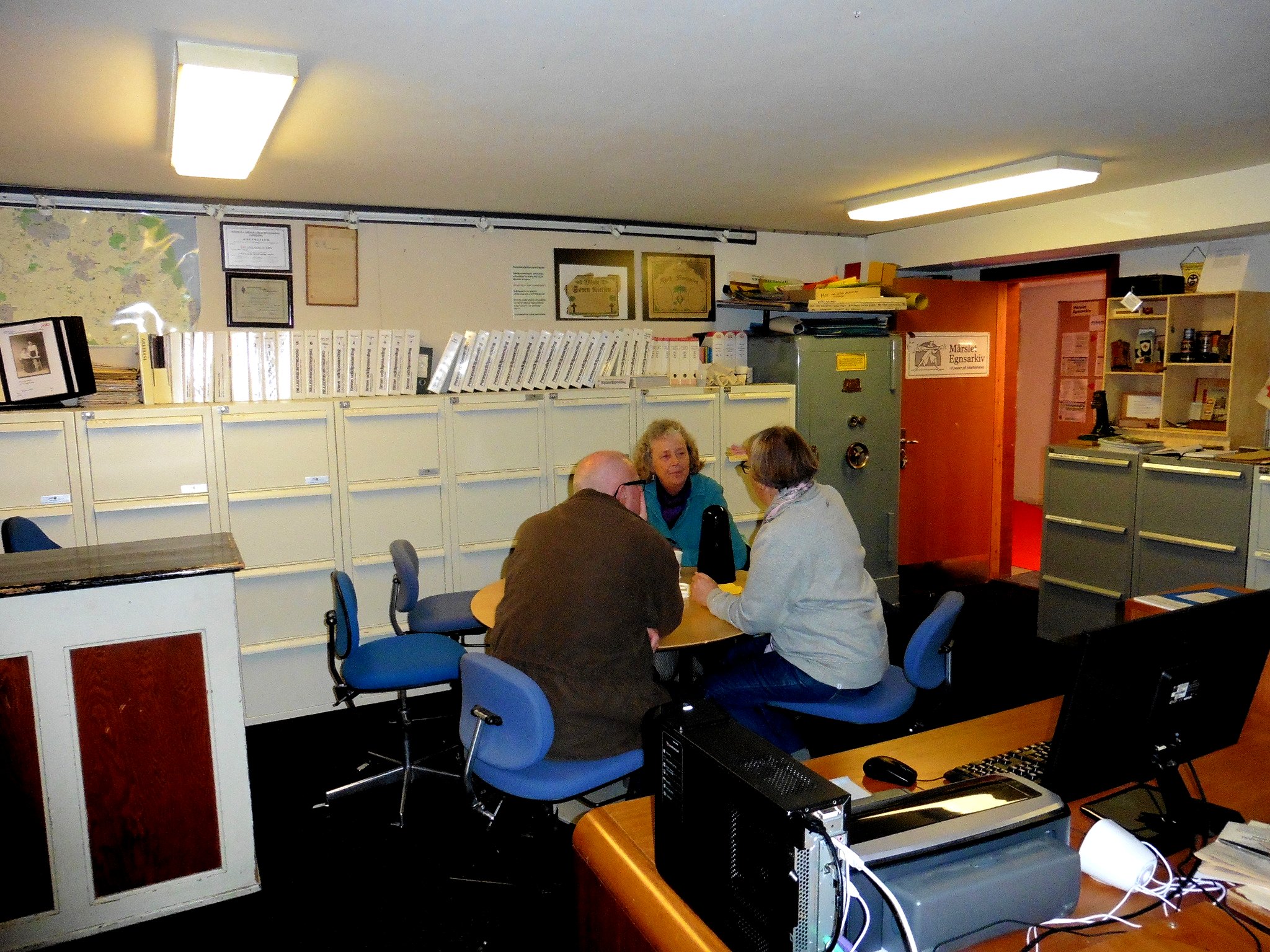 | Arkivernes Dag - lørdag den 8. november 2014. 'Arkivernes Dag' afholdes af de fleste af landets lokalarkiver den anden lørdag i november måned. Mårslet Egnsarkiv havde i dagens anledning rullet den røde løber ud og på gangen var arkivets mange faner ude at blive luftet. Endvidere var der på gangen opslag med billeder og historier om kvinder med tilknytning til Mårslet Sogn. Inde i arkivet var der fremlagt flere af arkivets klenodier, gamle protokoller der er afleveret til arkivet til opbevaring. Knap 25 personer havde afsat tid til et besøg på egnsarkivet for at se hvad vi opbevares på arkivet. Over en kop kaffe blev der livligt snakket lokalhistorie, mest med ældre mårslet borgere, men også nogle yngre. Alt i alt en vellykket dag. foto: ©Erik Moldt