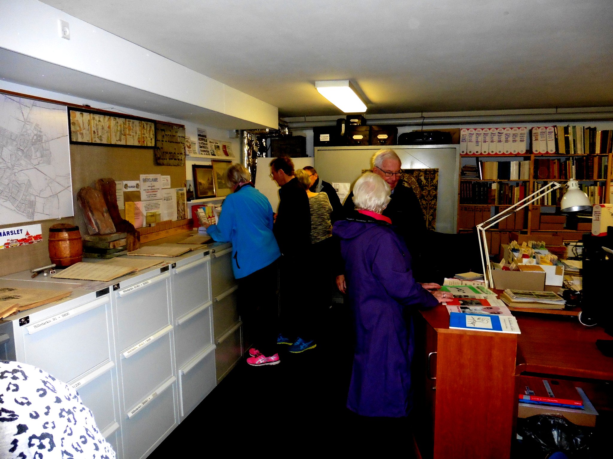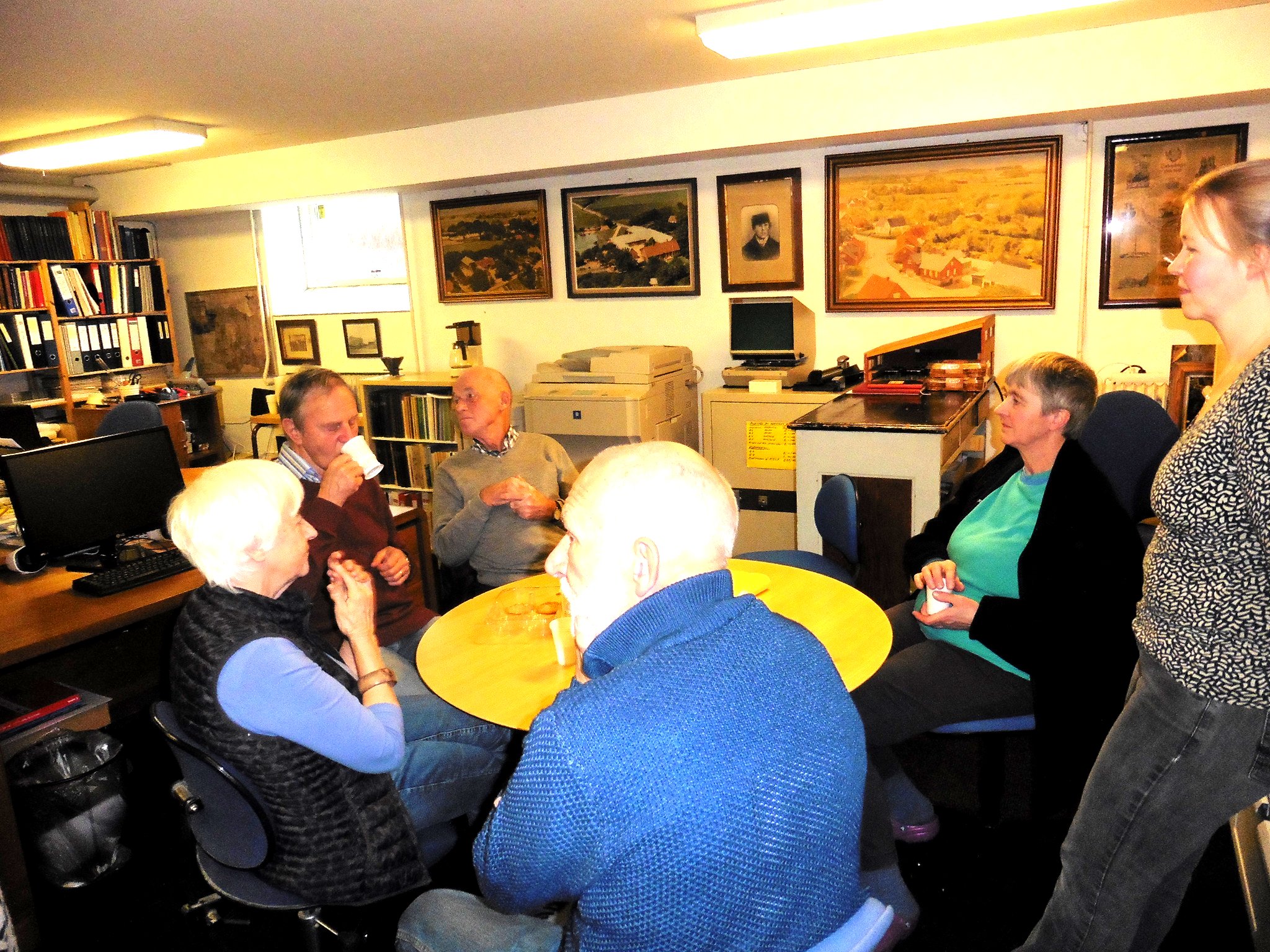 Inde i arkivlokalet var der kaffe på kanden og snakken gik livlig.
