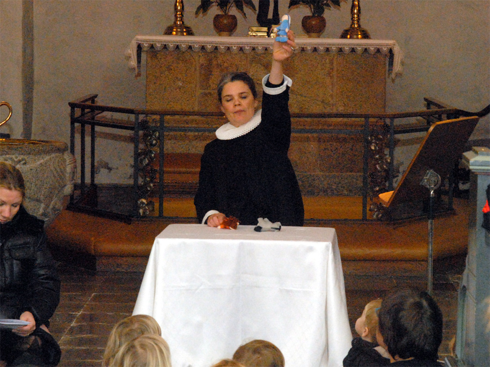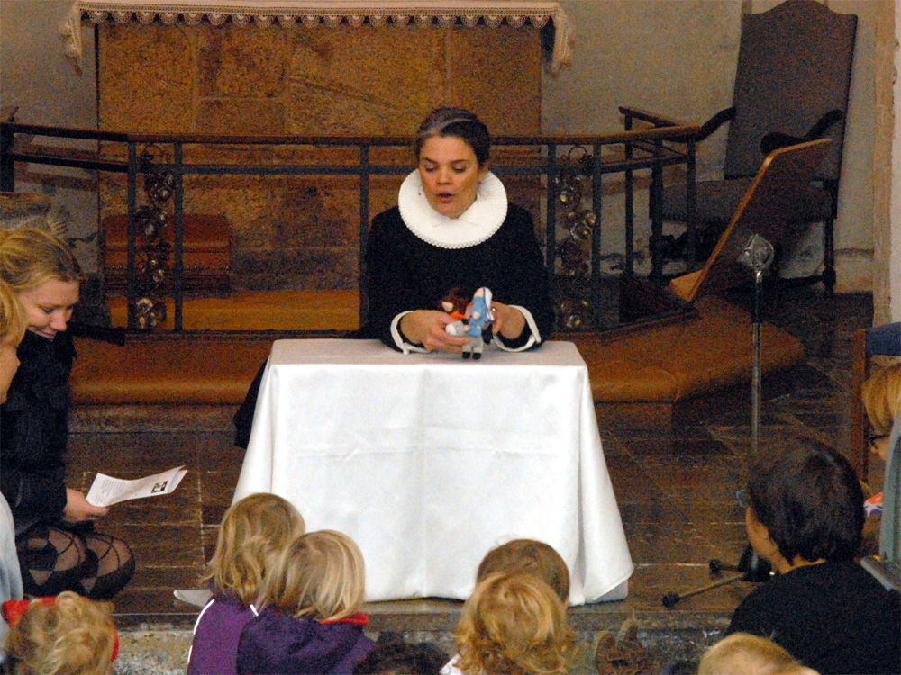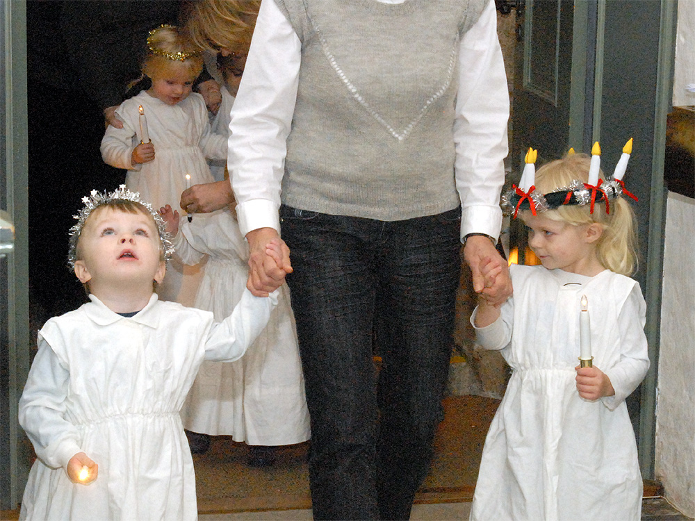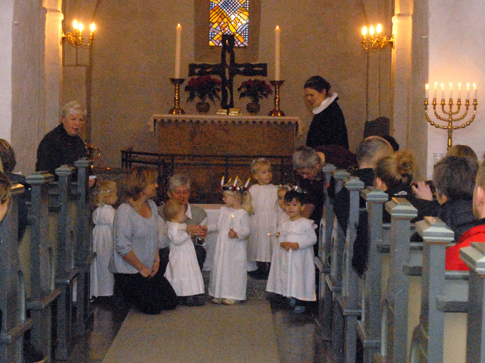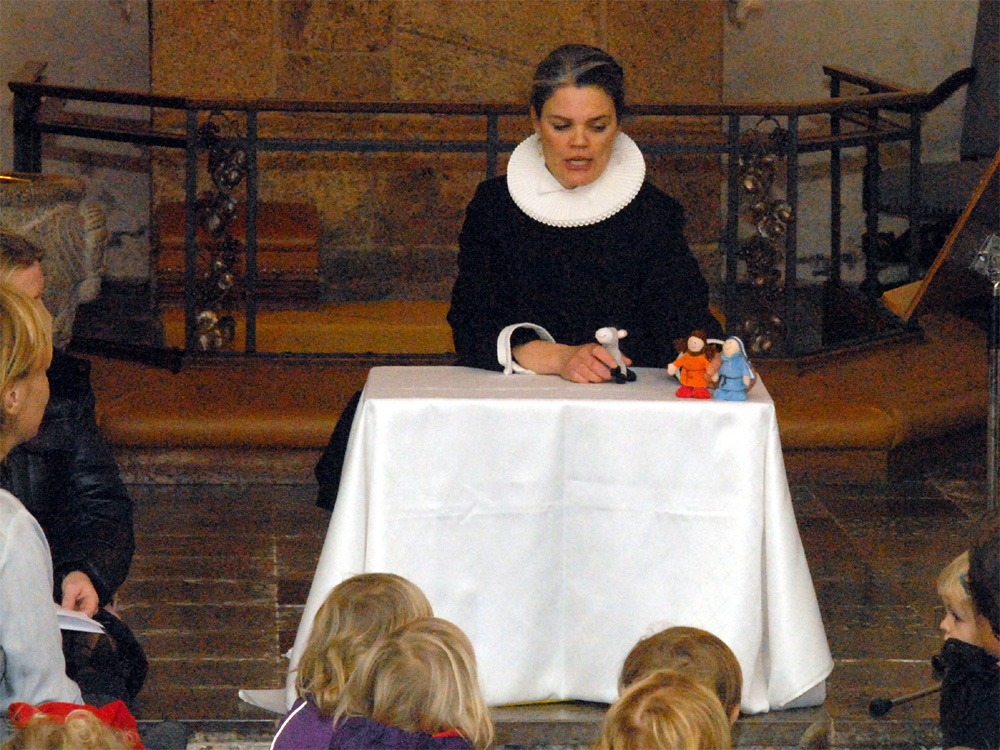 | Engletræf Julegudstjeneste for de mindste. Onsdag den 3. og torsdag den 4. december holdtes der om formiddagen i Mårslet Kirke en lille julegudstjeneste for alle dagplejere, vuggestuer og andet småfolk i Mårslet. Dagplejebørnene indledte gudstjenesten med et lille luciaoptog, og sammen blev der sunget et par julesalmer med fagter, og sognepræst Mette Maria Kristensen fortalte på levende vis juleevangeliet. Efterfølgende var der hyggearrangement for dagplejebørnene i Sognehuset. foto: ©Jørgen Lauritsen