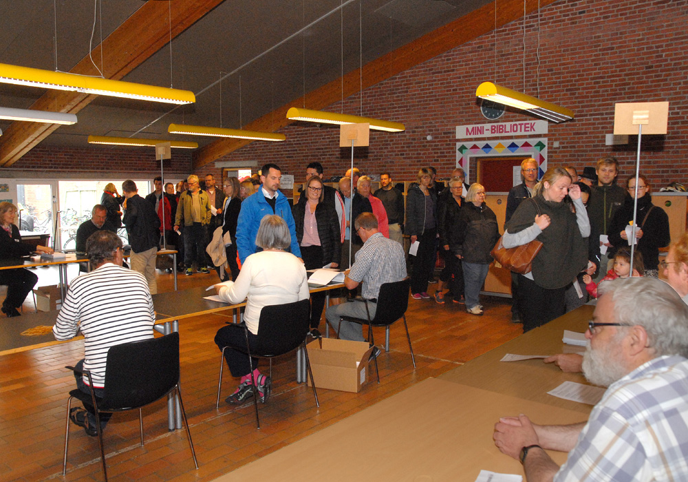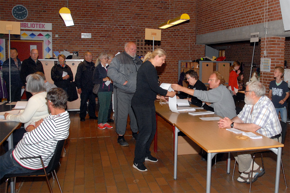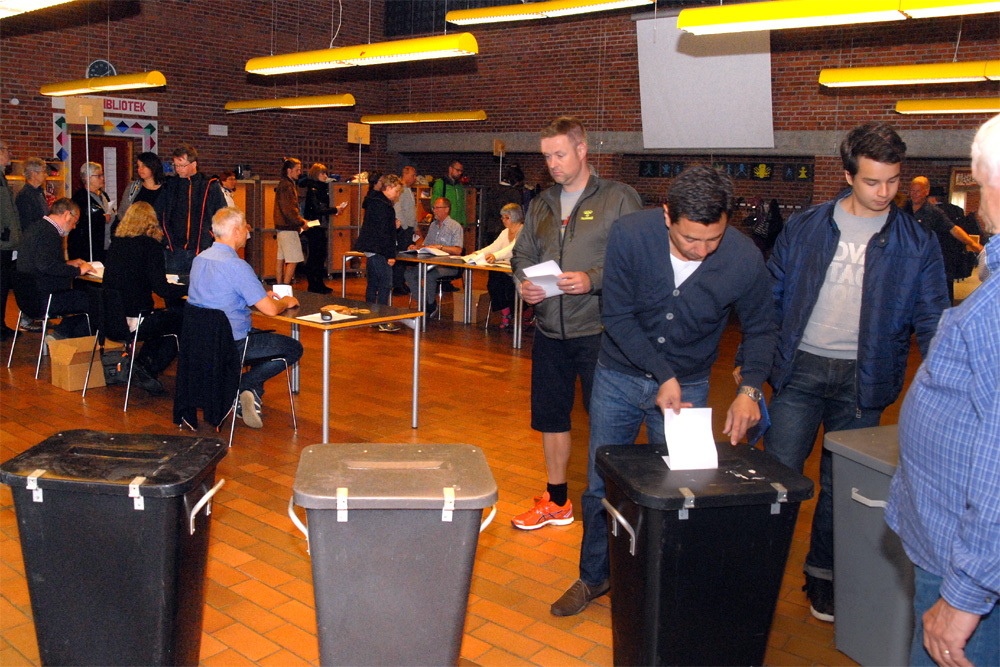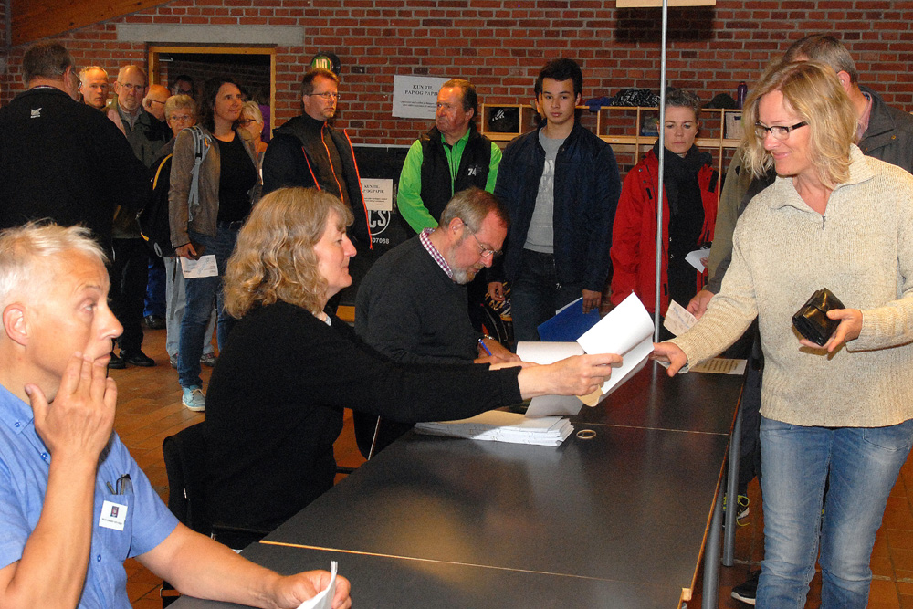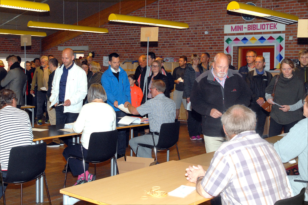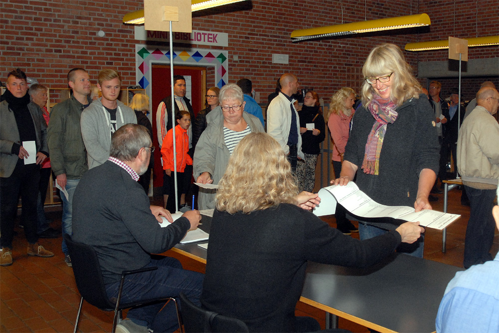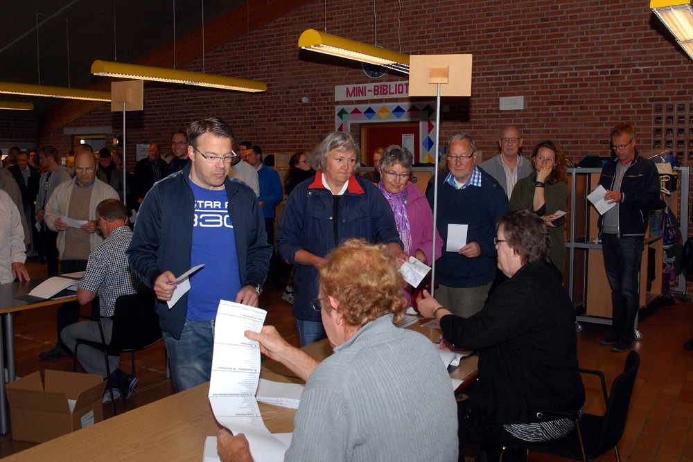 | Folketingsvalg 2015 Præcis kl. 9:00 blev valghandlingen åbnet på Mårslet Skole af områdechef Anette Poulsen fra Sundhed og Omsorg i Aarhus Kommune. Og der var - som sædvanlig her i Mårslet - stor interesse fra starten for at afgive sin stemme. Valghandlingen slutter i aften kl. 20:00, og umiddelbart herefter tælles stemmene op. foto: ©Jørgen Lauritsen