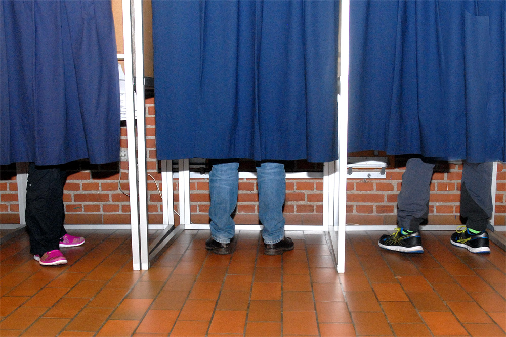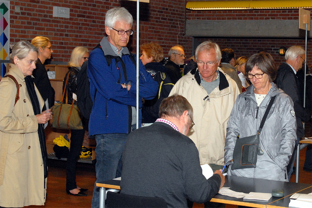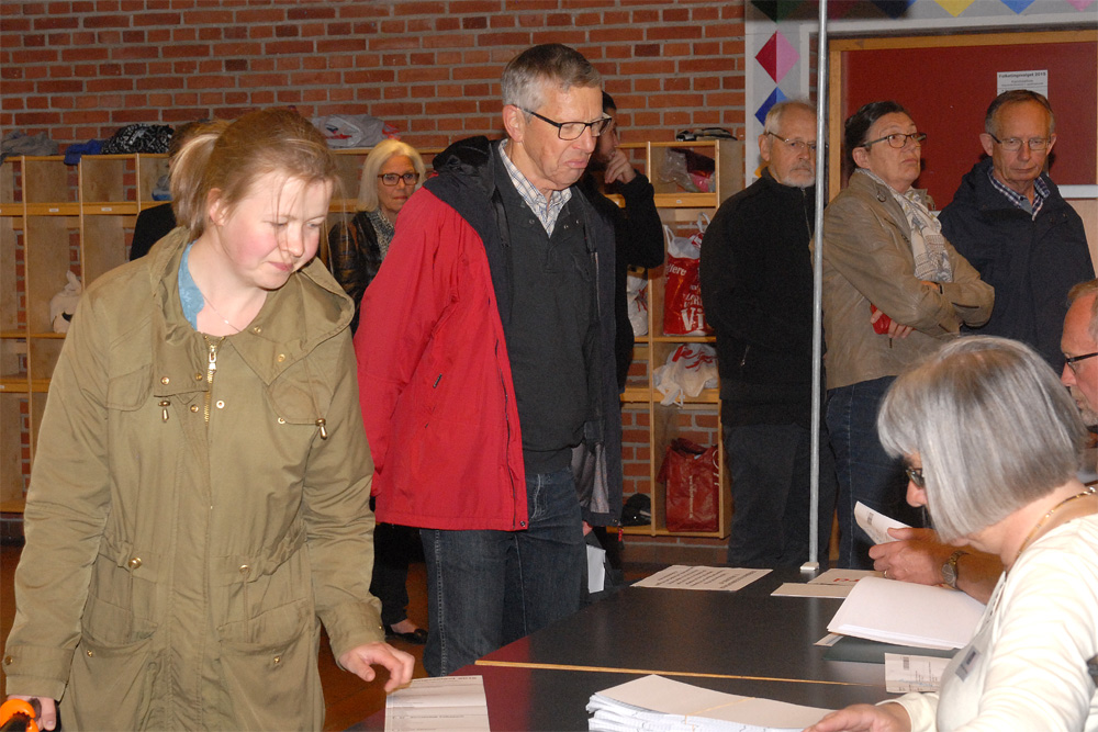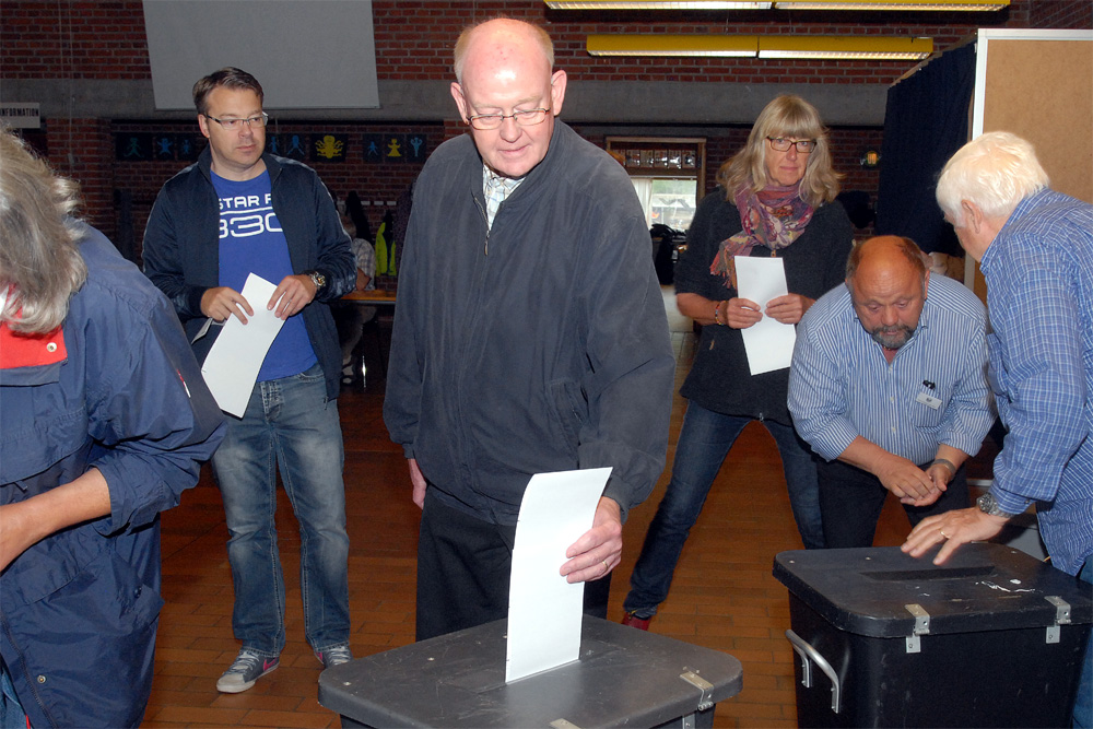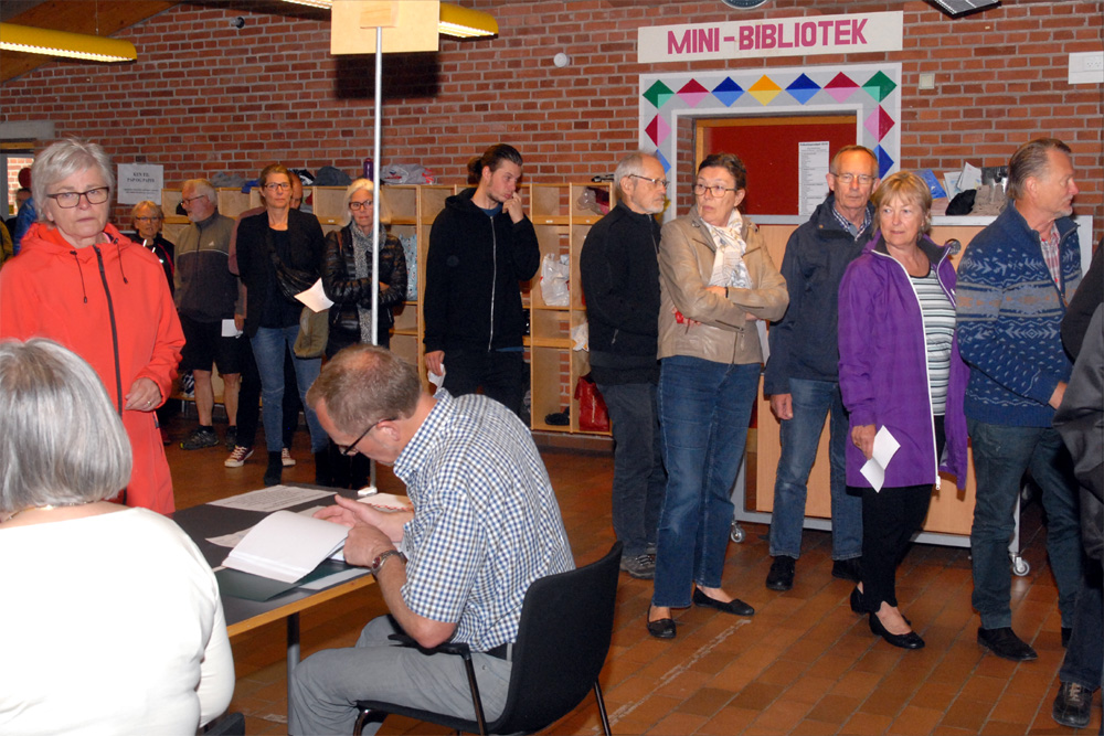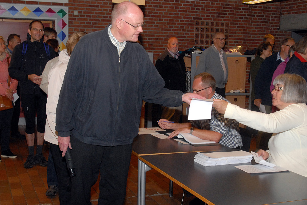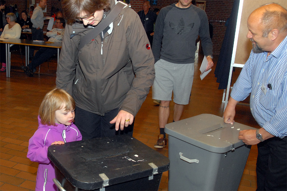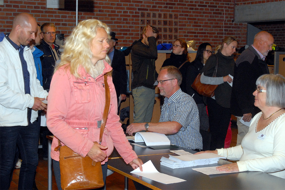 | Folketingsvalg 2015 Præcis kl. 9:00 blev valghandlingen åbnet på Mårslet Skole af områdechef Anette Poulsen fra Sundhed og Omsorg i Aarhus Kommune. Og der var - som sædvanlig her i Mårslet - stor interesse fra starten for at afgive sin stemme. Valghandlingen slutter i aften kl. 20:00, og umiddelbart herefter tælles stemmene op. foto: ©Jørgen Lauritsen