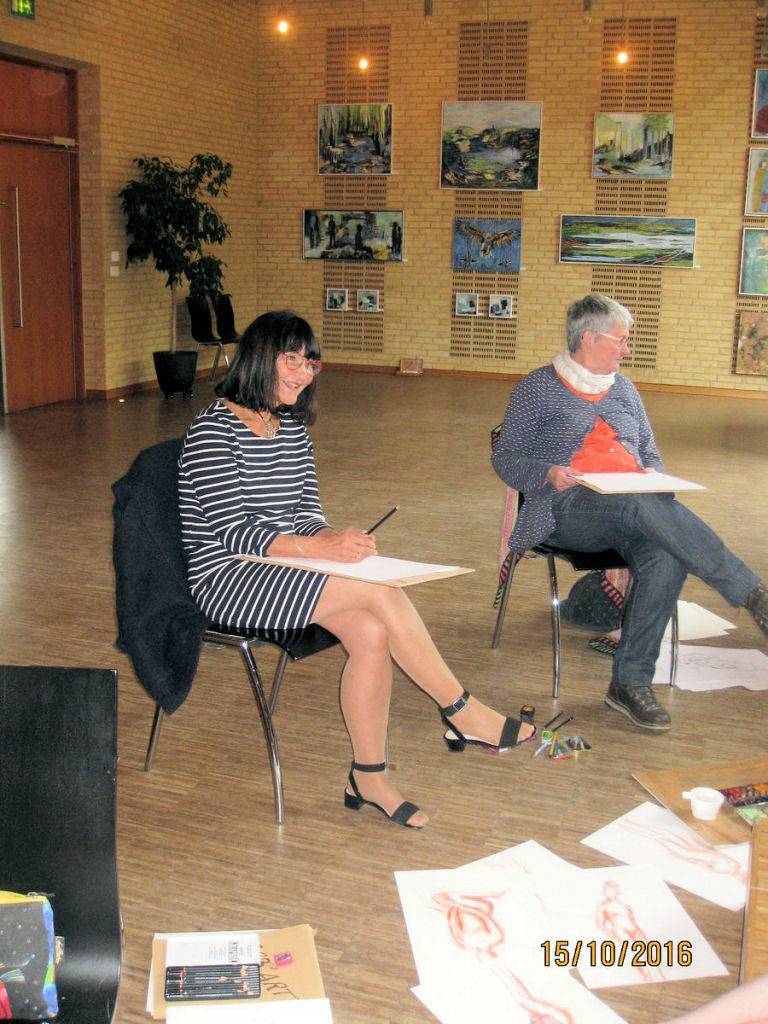 | Fra Stiplets udstilling på Testrup Højskole Fra Stiplets udstilling på Testrup Højskole 19/10 2016 Stiplets efterårsudstilling på Testrup Hjskole, var desværre ringe besøgt. Folk blev i stort antal hjemme. Det var også koldt og blæsende de dage. Synd folk ikke så den, det var faktisk en flot udstilling. Vi tegnede også croquis. foto: ©Kaj Christensen