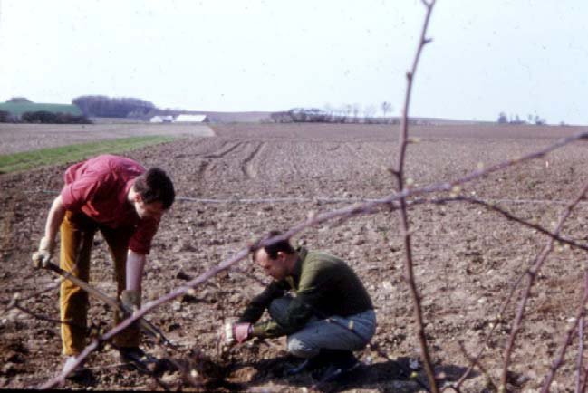 Der plantes læhegn i 1972. Carl Gerhard Crone med naboen Helmer Kemp Andersen (til højre). I baggrunden til venstre skimtes Jelshøj. | |