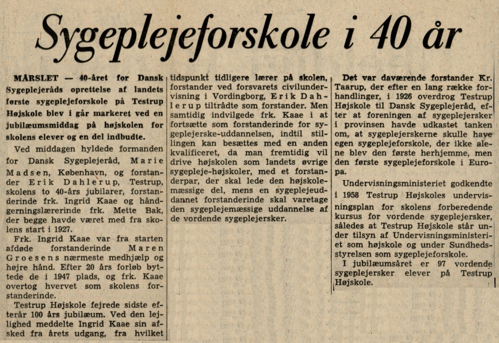 Testrup Højskole. Sygeplejeforskolen 40 år 1957.
