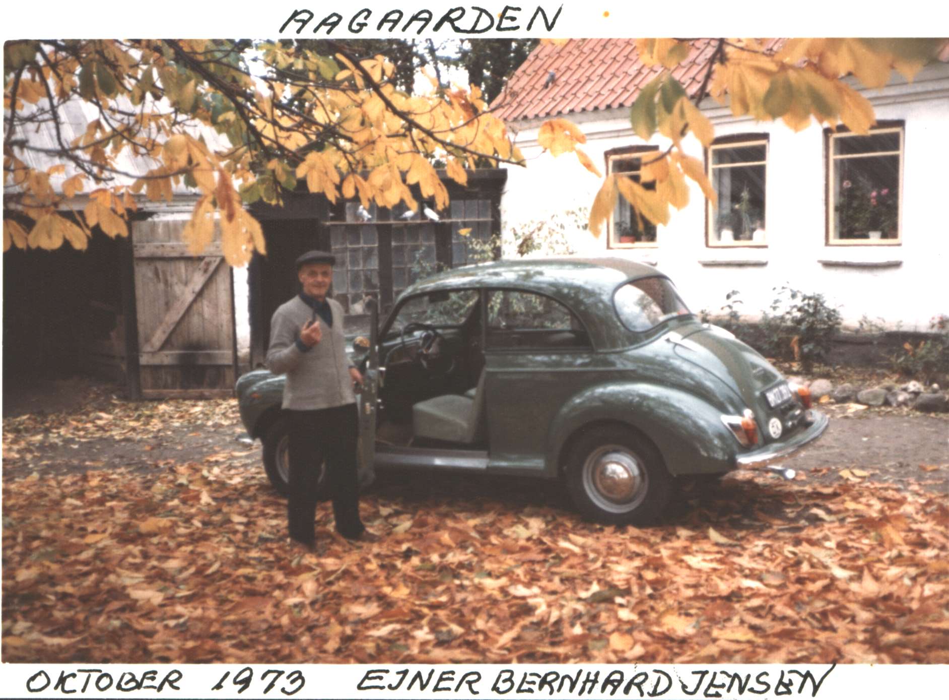Ejner Bernhard Jensen viser stolt sin nye bil Morris Minor. Oktober 1973.